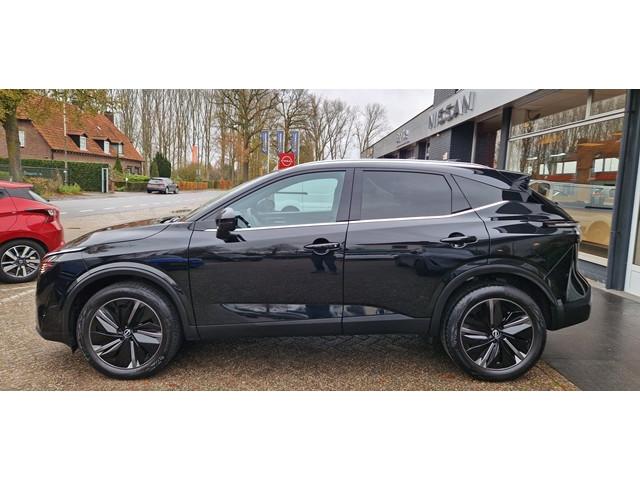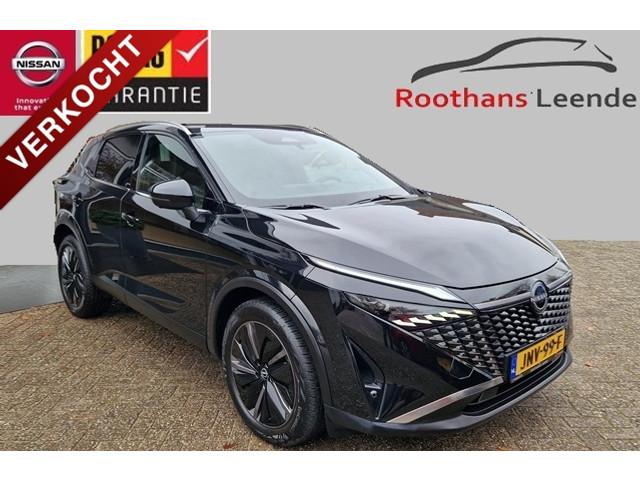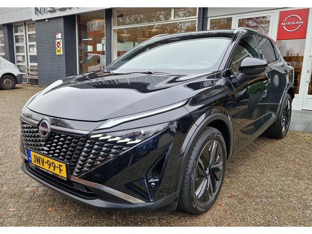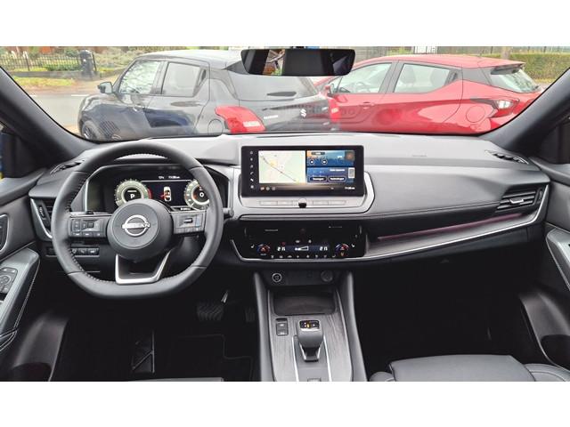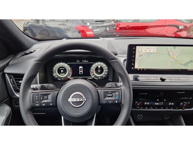 2x USB laadpoorten achter (1x type A, 1x type C), 2x USB laadpoorten voor, 3-punts veiligheidsgordels voor en achter, 9" NissanConnect Navigatie- en infotainmentsysteem, 12,3'' TFT digitaal instrumentenpaneel, 12V aansluitingen voor en in de bagageruimte, 19" diamant-geslepen lichtmetalen velgen, A-IVC Navigatie services, A-IVI NissanConnect Navigatiesysteem (9'' TFT touchscreen), ABS (Anti-blokkeersysteem), Achterbankleuning in delen neerklapbaar (60/40), Achteruitrijcamera met dynamische afstandsmarkering, Adaptive Front Lighting System (AFS), Alarmsysteem, Apple Carplay® & Android Auto® met kabel, Around View Monitor (AVM), Audiosysteem met Apple Carplay® & Android Auto®, USB-aansluiting, stuurwielbediening, 6 luidsprekers, Auto Speed Control Device (ASCD), Auto Speed Limit (ASL), Automatisch dimmende binnenspiegel, Automatische achterklep met voetsensor, Automatisch in- / uitschakelende koplampen, Back-up Collission intervention (BCI), Bandenreparatieset, Bandenspanningscontrolesysteem (TPMS), Bekerhouder achter (2x), Bekerhouder voor (2x), Blind Junction View (BJV), Blind Spot Warning & Intervention (BSW + BSI), Bluetooth® (telefoon en audio), Breakdown call, Buitenspiegelbehuizing en deurgrepen in carrosseriekleur, Buitenspiegels elektrisch inklapbaar, Buitenspiegels elektrisch verstelbaar en verwarmbaar, Centrale deurvergrendeling met afstandsbediening, Chromen raamomlijsting, Chromen sierstrip achterbumper, Chromen strip achterklep, Cross Traffic Alert (CTA), DRIVE ASSIST, Dakrails, Dakspoiler achter, Digitale radio-ontvangst (DAB+), Draadloos Apple Carplay®, Draadloze smartphone oplader (15w), Drive modus functie (3 modi), Driver Attention Alert (DAA), EBD (Elektronische Remkrachtverdeler), ESP (Electronic Stability Program), Elektrische lendensteunverstelling bestuurdersstoel (2-way), Elektrische lendensteunverstelling passagiersstoel (2-way), Elektrisch verstelbare bestuurdersstoel, Elektronische handrem, Elektronische stuurbekrachtiging, Emergency Stop Signal (Autohazard), Extra getint glas (achterste zijruiten en achterruit), Flexibele bagageruimte indeling (2 scheidingsplanken), Frontal Collision Warning (FCW), Gescheiden automatische airconditioning (2 zones), Gordelspanners en melding voor veiligheidsgordels, Haaienvin-antenne, Haken in de bagageruimte (4 op de bodem, 2 aan de zijkanten), Head-up display (10.8'' projectie), High Beam Assist (HBA), Hill Start Assist (HSA), Hill Start Assist + AutoHold functie, Hoedenplank, ISOFIX-bevestigingspunten achter (2x), In hoogte en diepte verstelbaar stuurwiel, In hoogte verstelbare passagiersstoel, Intelligent Cruise Control (ICC), Interieur ambianceverlichting uitgebreid (middenconsole en deuren), Interieurlijsten metaallook, LED achterlichten, LED achteruitrijlicht en knipperlicht achter, LED matrix koplampen met LED dagrijverlichting en geintegreerd knipperlicht, Lane Departure Warning & Prevention (LDW + LDP), Lane Side Support (LSS), Lichtsensor, Limited Slip Differential (LSD), Matzilver decoratiepaneel achterbumper, Metallic lak, Middenarmsteun achter met 2 bekerhouders, Middenarmsteun vóór met opbergvak, Middenconsole en armsteunen in PVC, Moving Object Detection (MOD), NBAS (Nissan Brake Assist System), Parkeersensoren voor- en achterzijde, Portiergrepen met ontgrendelknop (Easy Access), Predictive Forward Collision Warning (PFCW), Predictive Front Emergency Braking met voetgangers- en fietsersherkenning (P-FEB), ProPILOT, Regensensor, START/STOP-systeem, Stuurwielbediening, Stuurwiel en versnellingspookknop met leder bekleed, Tankdeksel zonder dop, Traffic Sign Recognition (TSR), Vehicle Dynamic Control (VDC), Verlichting aan beide kanten in de bagageruimte, Verwarmbaar stuurwiel, Verwarmbare voorruit, Verwarmbare voorstoelen, Voor-, zij- en gordijnairbags (uitschakelbare passagiersairbag), Zachte kniesteun (PVC), Zonnebrillenhouder in hemelbekleding, Zonnekleppen met make-up spiegel, Zonnekleppen met make-up spiegel, verlicht, Zwarte Hemelbekleding, eCall, i-Key (openen en sluiten zonder sleutel)
