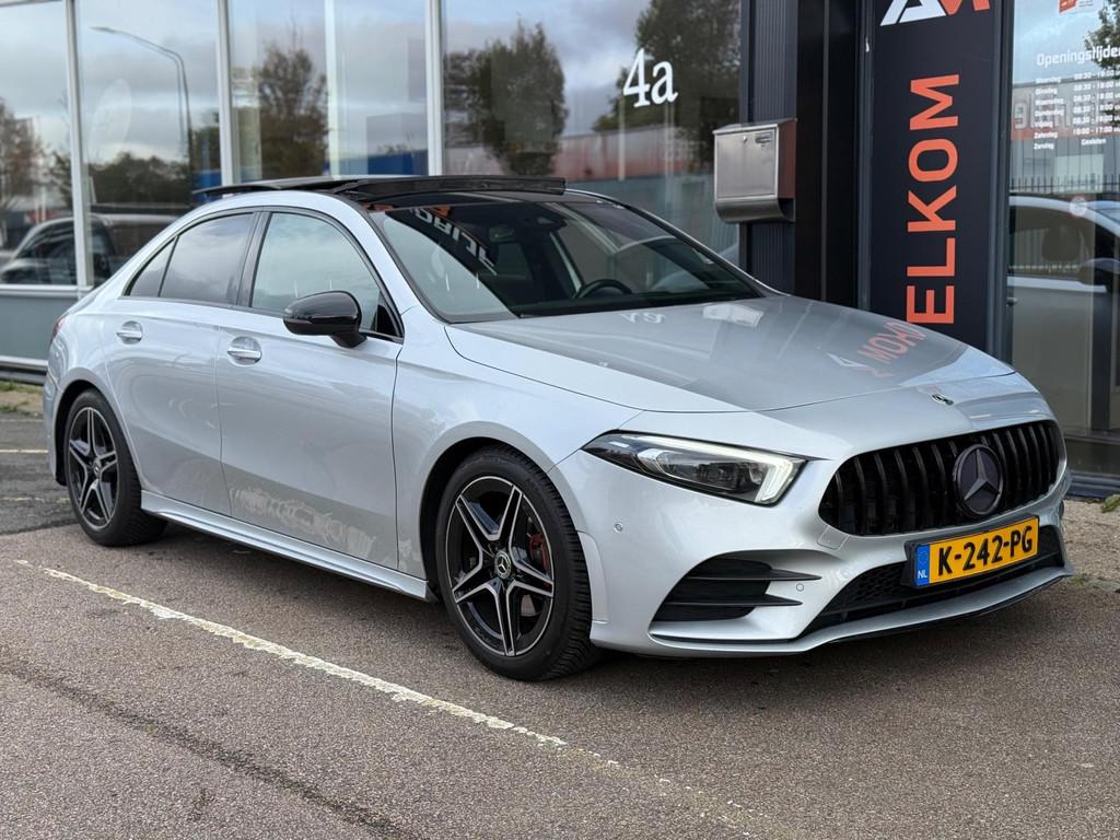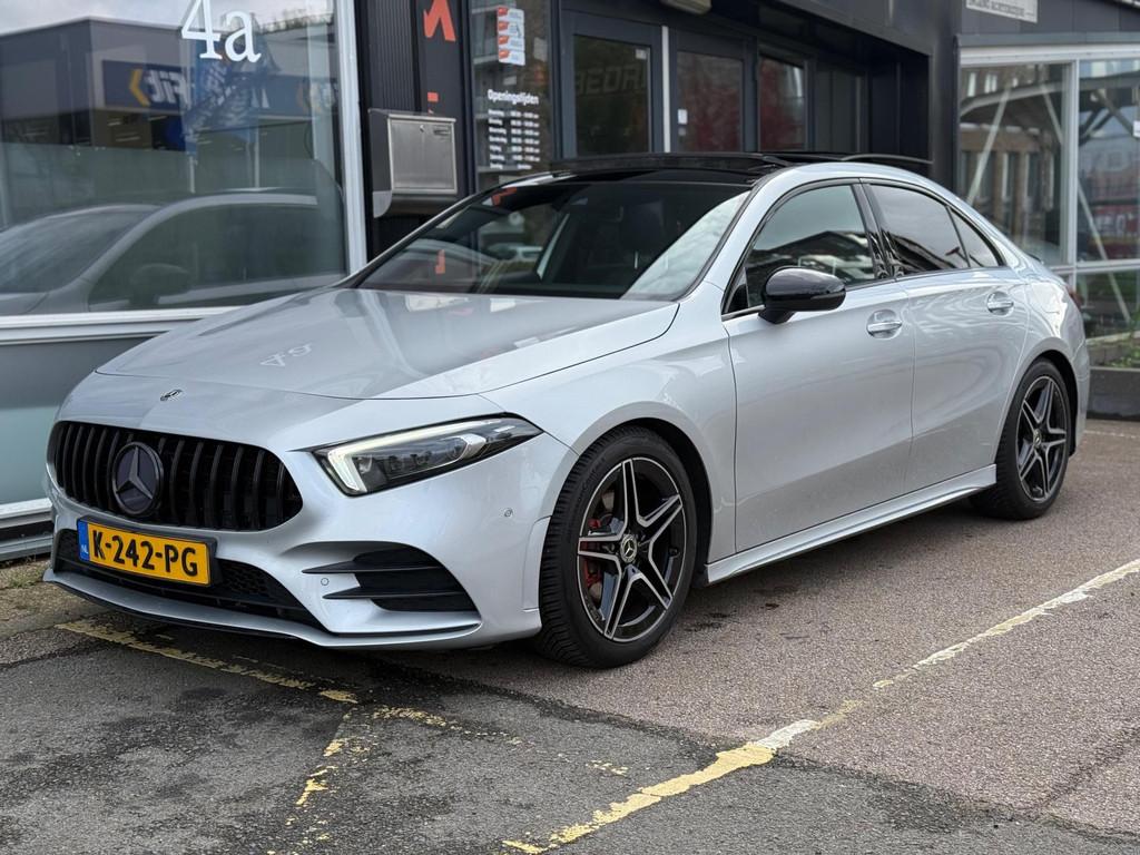 "Lichtmetalen velgen 17""", "Lichtmetalen velgen 18""", AMG-styling, AMG Line, Accident Avoidance System, Achterbank in delen neerklapbaar, Achteruitrijcamera, Airbag(s) hoofd achter, Airbag(s) hoofd voor, Airbag(s) knie, Airbag(s) side voor, Airbag bestuurder, Airbag passagier, Airco automatisch, Anti Blokkeer Systeem (ABS), Armsteun achter, Armsteun voor, Audio installatie, Bandenspanningscontrolesysteem, Binnenspiegel automatisch dimmend, Bots waarschuwing systeem, Brake Assist System, Buitenspiegel(s) automatisch dimmend, Buitenspiegels elektrisch inklapbaar, Chroom delen exterieur, Comfortstoel(en), Connected services, Cruise control, Dimlichten automatisch, Electronic Stability Program (ESP), Electronic climate controle, Elektrisch bedienbare achterklep met sensorsturing, Elektrisch glazen panorama-dak, Elektrisch verstelbare stoel(en) met geheugen, Keyless entry, Keyless start, LED dagrijverlichting, LED koplampen, Lederen stuurwiel, Multimedia-voorbereiding, Navigatie-systeem full map + hard disk, Parkeer-assistent, Parkeersensor achter, Parkeersensor voor, Regensensor, Rijstrooksensor met correctie, Side skirts, Sportstoelen, Sportstuur, Spraakbediening, Start/stop systeem, Startblokkering, Stof/kunstlederen bekleding, Stuurwiel multifunctioneel, Telefoonintegratie premium, Variabele stuuroverbrenging, Verkeersbord detectie, Verwarmde voorstoelen, Volledig digitaal instrumentenpaneel, WiFi voorbereiding