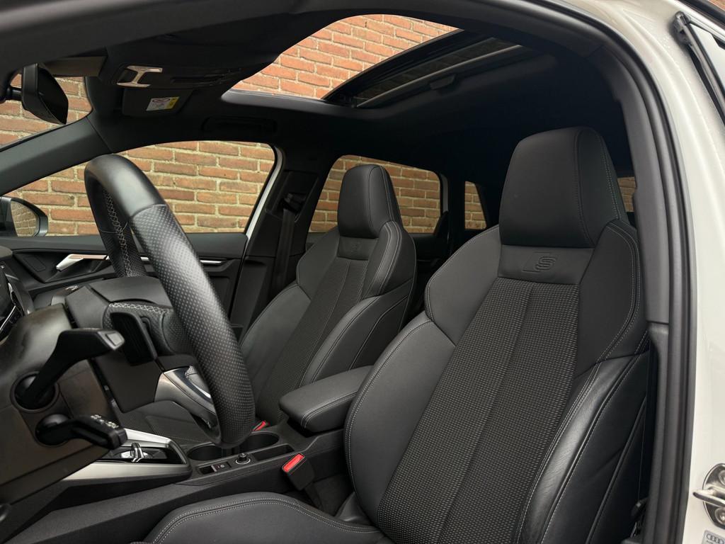 "Lichtmetalen velgen 5-spaaks 17""", "Lichtmetalen velgen 5-spaaks 18""", Accident Avoidance System, Achterbank in delen neerklapbaar, Achteruitrijcamera, Airbag(s) hoofd achter, Airbag(s) hoofd voor, Airbag(s) side achter, Airbag(s) side voor, Airbag bestuurder, Airbag passagier, Aluminium delen exterieur, Aluminium interieur afwerking, Android Auto, Anti Blokkeer Systeem (ABS), Apple Carplay, Armsteun voor, Audio installatie, Audio installatie premium, Bandenspanningscontrolesysteem, Bestuurdersstoel in hoogte verstelbaar, Binnenspiegel automatisch dimmend, Brake Assist System, Buitenspiegel(s) automatisch dimmend, Buitenspiegels elektrisch inklapbaar, Buitenspiegels elektrisch verstelbaar, Buitenspiegels verwarmbaar, Centrale deurvergrendeling met afstandsbediening, Connected services, Cruise control, DAB-ontvanger, Dakrails, Dakspoiler, Dimlichten automatisch, Dodehoek detector, Electronic Brake Distribution (EBD), Electronic Stability Program (ESP), Electronic climate controle, Elektrisch bedienbare achterklep met sensorsturing, Elektrisch glazen panorama-dak, Extra getint glas, Grootlicht-assistent, Hill hold-functie, Keyless entry, Keyless start, Kleur wit, Koplampen adaptief, Koplampreiniging, LED-lichtpakket, LED achterlichten, LED dagrijverlichting, Lederen stuurwiel, Matrix LED koplampen, Multimedia-voorbereiding, Navigatie full map, Oplaadmogelijkheid, Parkeer-assistent, Parkeer pakket, Parkeersensor achter, Parkeersensor voor, Passagiersstoel in hoogte verstelbaar, Radio, Regensensor, Rijstrooksensor, Ruitensproeiers verwarmbaar, S Line exterieur, Sonos audio, Sportstoelen, Sportstuur, Start/stop systeem, Startblokkering, Stof/kunstlederen bekleding, Stuurbekrachtiging, Stuurwiel multifunctioneel, Telefoonintegratie premium, Tractie Controle Systeem (TCS), Uitwijk assistent, Verkeersbord detectie, Verwarmde voorstoelen, Volledig digitaal instrumentenpaneel, Warmtewerende voorruit, WiFi voorbereiding, Wis-/was installatie voor koplampen, sfeerverlichting