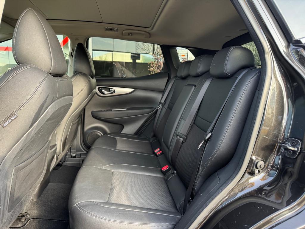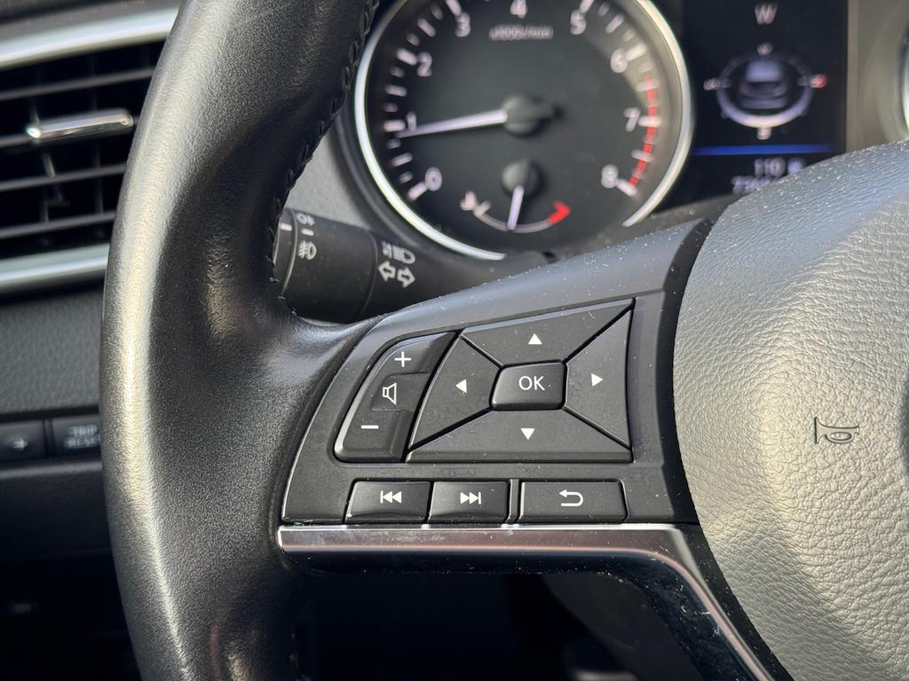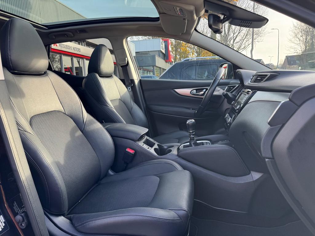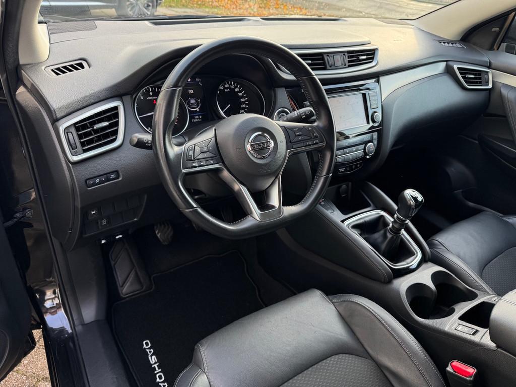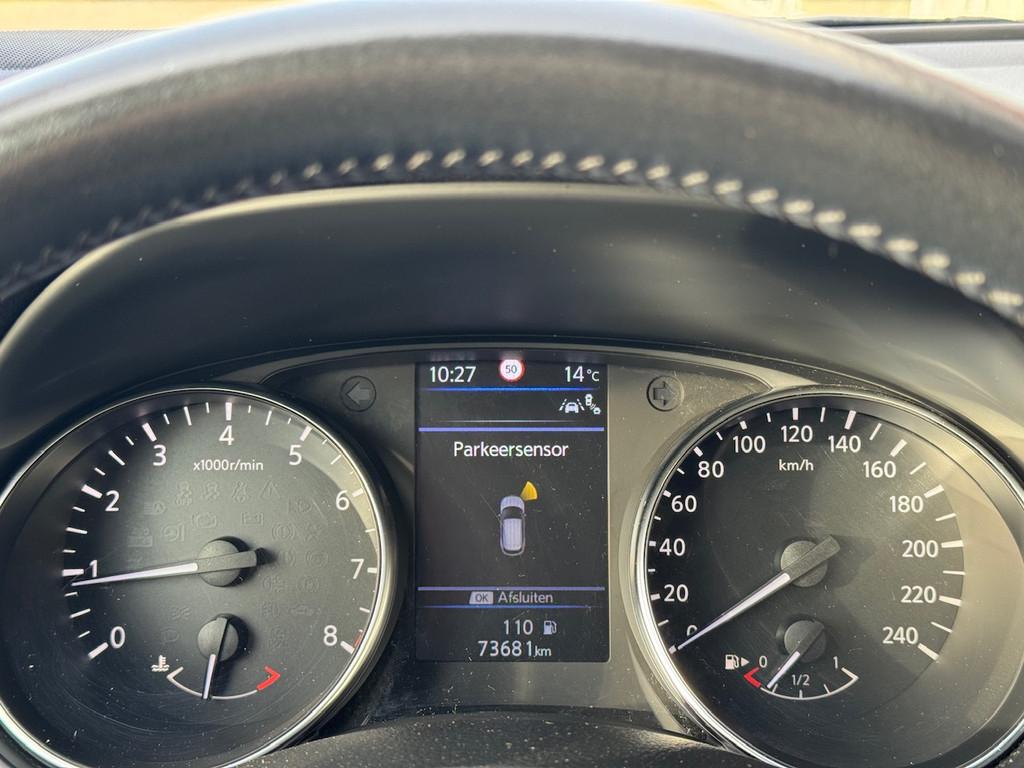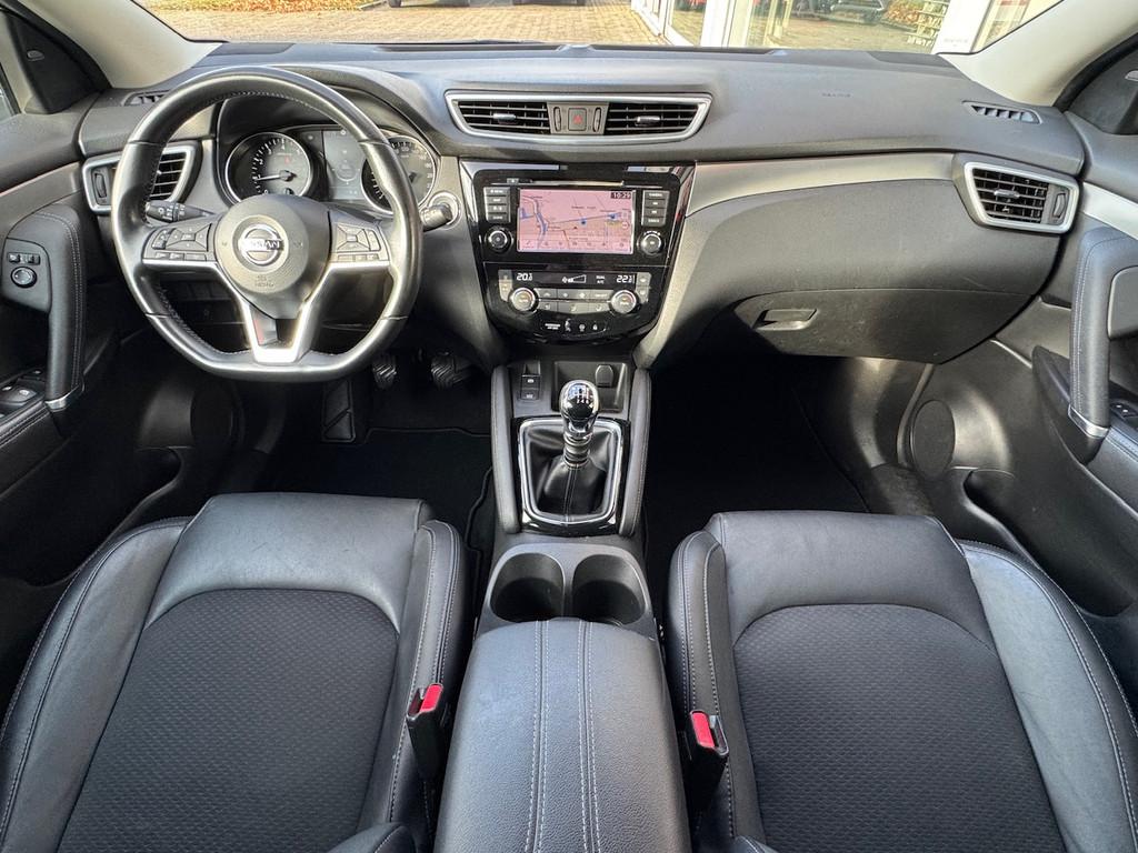 2 bekerhouders achter, 2 bekerhouders voor, 3-punts veiligheidsgordels achter, 3-punts veiligheidsgordels voor, 5'' Kleuren TFT instrumentenpaneel, 12V aansluiting, 19'' lichtmetalen velgen, ABS (Anti-blokkeersysteem), Achterbankleuning in delen neerklapbaar (60/40), Actieve hoofdsteunen voor, Android Auto, Apple Car Play, Audiosysteem met CD-speler, USB-aansluiting, stuurwielbediening en 6 luidsprekers, Autohold functie, Automatisch dimmende binnenspiegel, Automatisch in-/uitschakelende koplampen, Automatisch inklapbare buitenspiegels, Bandenspanningscontrolesysteem, Bi LED koplampen, Bluetooth, Buitenspiegelkappen in carrosseriekleur, Centrale deurvergrendeling met afstandsbediening, Chassis Control Systeem (Active Trace Control, Active Ride Control, Xtronic Active Engine Brake), Chromen raam omlijsting, Cruise control en speedlimiter met stuurwielbediening, Detectie van bewegende objecten, Digital audio broadcasting (DAB+), Dynamische bochtenverlichting, EBD (elektronische remkrachtverdeler), ESP (Electronic Stability Program), Elektrisch bedienbare ramen voor en achter met sneltoetsen, Elektrisch verstelbare bestuurdersstoel, Elektrisch verstelbare en verwarmbare buitenspiegels, Elektronische parkeerrem, Elektronische stuurbekrachtiging, Extra getint glas (achterste zijramen en achterruit), Flexibele bagageruimte indeling, Gescheiden automatische airconditioning (2 zones), Gordijn airbags, Haaienvin-antenne, Half lederen bekleding, Hoofdsteunen achter, ISOFIX-bevestigingspunten achter (2), In hoogte en diepte verstelbaar stuurwiel, In hoogte verstelbare bestuurdersstoel, In hoogte verstelbare passagiersstoel, Intelligent Key met startknop, Intelligente parkeerassistent, Interieur ambiance verlichting, LED dagrijverlichting met geïntegreerde knipperlichten, LED verlichting achter, Lederen stuurwiel en versnellingspookknop, Lendensteunverstelling voorstoelen, Metallic lak, Middenarmsteun achter, Middenarmsteun voor, Mistlampen voor, NBAS (Nissan Brake Assist), Nissan Around View Monitor, NissanConnect navigatie, Nissan Safety Shield Plus, Nissan safety shield, Panoramisch glazen dak, Parkeersensoren (voor/achter), Portiergrepen in carrosseriekleur, Regensensor, Reparatiekit voor de banden, Startonderbreking, Uitschakelbare passagiersairbag, Verwarmbare voorstoelen, Verwarmde voorruit, Voor- en zijairbags, Voorstoelen met sportdesign en geïntegreerde hoofdsteunen, Zilverkleurige dakrails, Zilverkleurige stylingplaten achterbumper, Zonnekleppen met verlichte make-up spiegel