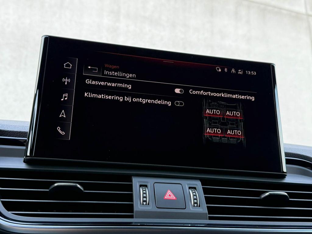 3D knipperlichten, 4-Seizoenen banden, 4-motion, 4-wielaandrijving, 8 inch Navigatiesysteem, 12v aansluitingen, 19inch S-Line velgen, 19inch lichtmetalen velgen, 22inch Performance velgen, 22inch S-line velgen, Accident Avoidance System, Accukoeling, Accuverwarming, Achterbank in delen neerklapbaar, Achterbank verstelbaar, Achterbank verwarmd, Achterbank verwarming, Achterbankverwarming, Achteruitrij assistent, Achteruitrijcamera, Achteruitrijcamera (Rear View), Active Info Display, Adaptief Demping Systeem (ADS), Adaptieve verlichting, Agility Select, Airbag(s) hoofd achter, Airbag(s) hoofd voor, Airbag(s) side achter, Airbag(s) side voor, Airbag bestuurder, Airbag passagier, Airco automatisch, Airconditioning, Airco separaat achter, Alcantara stuurdelen, Aluminium interieur afwerking, Ambiance verlichting, Android Auto, Anti Blokkeer Systeem (ABS), App connect, Apple CarPlay, Armsteun achter, Armsteun voor, Attention Assist, Audi Drive Select, Audi Entertainment Mobile, Audi Exclusive interieur, Audi Exclusive lak, Audi Soundsystem Premium, Audio installatie, Audio installatie premium, Audi pre sense, Automaat, Automatisch dimmende binnenspiegel, Automatische airconditioning, Automatische luchtvering, Autotelefoonvoorbereiding met Bluetooth, Bandenspanningscontrolesysteem, Bestuurdersstoel elektrisch inclusief geheugen, Binnenspiegel automatisch dimmend, Bluetooth, Boordcomputer, Bots waarschuwing systeem, Brake Assist System, Buitenspiegel(s) automatisch dimmend, Buitenspiegels elektrisch inklapbaar, Buitenspiegels elektrisch verstelbaar, Buitenspiegels verwarmbaar, Camera achterzijde, Camera voorzijde, Carbonafwerking interieur, Carbon interieur details, Centrale deurvergrendeling met afstandsbediening, City Safe Drive, Climate Control, Climate Control 3-zones, Coming- / Leaving Home functie, Cruise control, DAB+, DAB-ontvanger, Dakrails, Dealeronderhouden, Digitaal instrumentenpaneel, Dimlichten automatisch, Driving Mode Selection, Driving Profiles, Driving Select, Dynamic Light Assist, Dynamic Select, Dynamische knipperlichten, Electronic Brake Distribution (EBD), Electronic Stability Program (ESP), Elektrisch bedienbare achterklep, Elektrisch bedienbare achterklep met sensorsturing, Elektrische achterklep, Elektrische ramen, Elektrische ramen achter, Elektrische ramen voor, Elektrische ramen voor- & achterzijde, Elektrisch glazen panorama-dak, Elektrisch panoramisch schuif-/kanteldak, Elektrisch schuif-/kanteldak, Elektrisch verstelbare bestuurdersstoel, Elektrisch verstelbare voorstoel(en), Elektrisch verstelbare voorstoelen, Elektrisch verstelbare voorstoelen incl. geheugen, Elektrisch zonnescherm, Extra getint glas, F1 schakelpaddles, File-assistent, Geluidwerend glas, Grootlicht Assistent, Hill hold-functie, Instelbaar sportonderstel, Interieur voorverwarmingsinstallatie, Keyless-pakket, Keyless Entry & Keyless GO, Keyless Go, Keyless entry, Koplampreiniging, Kuipstoelen, LED Matrix koplampen, LED achterlichten, LED dagrijverlichting, LED koplampverlichting, LED mistlampen, LED verlichting interieur & exterieur, Lederen bekleding, Lederen interieur, Lederen interieurdelen, Lederen sportstuur, Lederen stuur, Lederen stuurwiel, Lederen versnellingspook, Licht- & Regensensor, Lichtmetalen 19inch velgen, Lichtmetalen velgen, Luchtvering, Luxe lederen bekleding, Luxe lederen interieur, Matrix LED koplampen, Metallic lak, Middenarmsteun, Multimedia-voorbereiding, Navigatie full map, Navigatiesysteem, Night pakket, Oplaadmogelijkheid, Panoramadak, Parkeer-assistent, Parkeersensor achter, Parkeersensoren achterzijde, Parkeersensor voor, Pianolak interieur afwerking, Privacy glas, Quattro, RVS Sportpedalen, RVS instaplijsten incl. LED verlichting, Regensensor, Remassistent, Rijprofiel instellingen, Ruitensproeiers verwarmbaar, S-Line interieur & S-Line exterieur, S Line exterieur, SQ5 Supersport kuipstoelen, Schakelmogelijkheid aan stuurwiel, Sfeerverlichting interieur, S kuipstoelen incl. Diamond Cross stitching, Soundsystem, Spiegelpakket - Elektrisch inklapbaar, Sport Dynamic Steering, Sportstoelen, Standkachel, Standkachel fabrieksaf, Start/stop systeem, Startblokkering, Stoelverwarming, Stuurbekrachtiging, Stuur verstelbaar, Stuurwielbediening, Stuurwiel multifunctioneel, Subwoofer, Supersport kuipstoelen, Telefoonintegratie, Telefoonintegratie premium, Tractie Controle Systeem (TCS), Trekhaak, Valcona lederen S-line S Sportstoelen, Valcona leder incl. Cross stitching, Verkeersbord detectie, Verkeersborden herkenning, Verkeersbordenherkenning, Vervolgbotsing preventie, Verwarmde voorstoelen, Virtual Cockpit, Volledig digitaal instrumentenpaneel, Voorruitverwarming, Voorstoelen, Warmtewerend glas, WiFi voorbereiding, Widescreen Cockpit, Xenon verlichting, Zonneschermen, Zonnescherm zijruiten, Zonweringen, Zwarte hemelbekleding, parkeer sensoren v+a