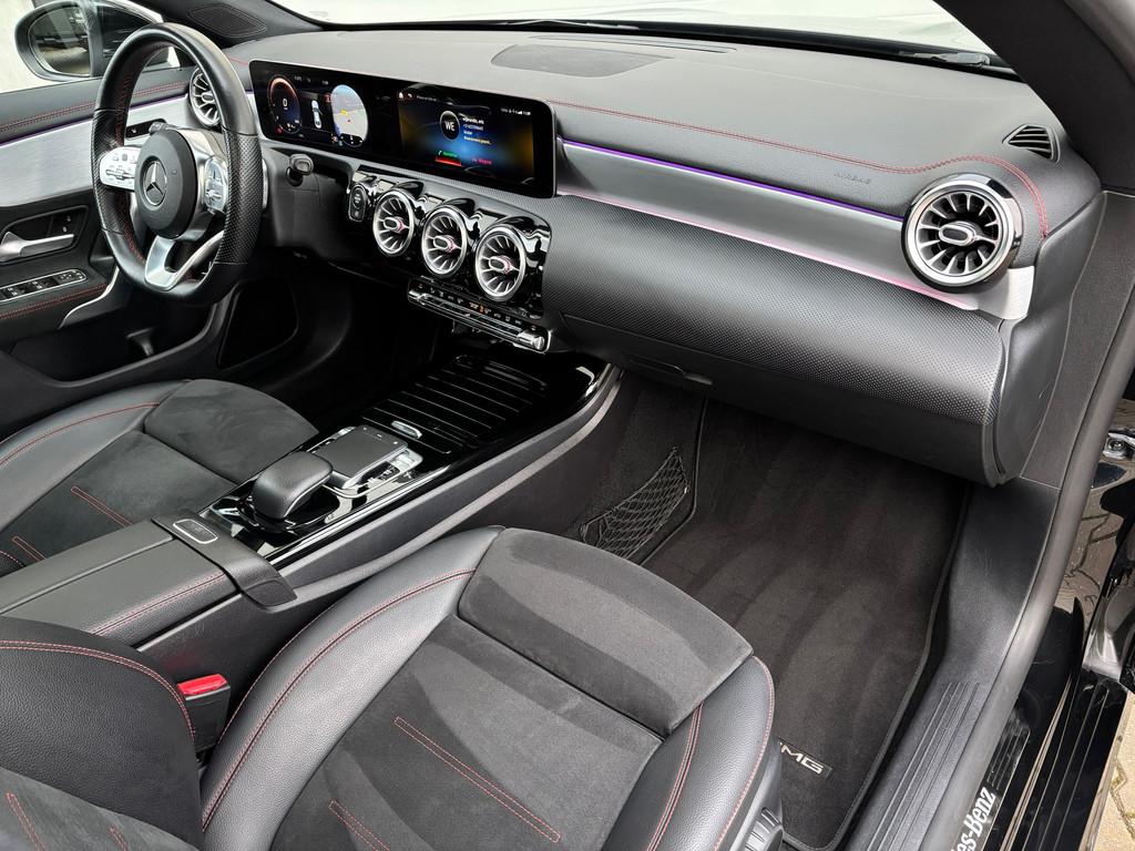 "Lichtmetalen velgen 18""", AMG-styling, Accident Avoidance System, Achteruitrijcamera, Airbag(s) hoofd achter, Airbag(s) hoofd voor, Airbag(s) knie, Airbag(s) side voor, Airbag bestuurder, Airbag passagier, Aluminium interieur afwerking, Anti Blokkeer Systeem (ABS), Armsteun achter, Armsteun voor, Audio installatie, Bandenspanningscontrolesysteem, Bekerhouders, Bestuurdersstoel in hoogte verstelbaar, Binnenspiegel automatisch dimmend, Boekjes aanwezig, Boordcomputer, Bots waarschuwing systeem, Buitenspiegel(s) automatisch dimmend, Buitenspiegels elektrisch inklapbaar, Buitenspiegels in carrosseriekleur, Buitenspiegels met verlichting, Buitentemperatuur meter, Chroom delen exterieur, Connected services, Cruise control, Dimlichten automatisch, Electronic Stability Program (ESP), Electronic climate controle, Elektrisch bedienbare achterklep met sensorsturing, Extra getint glas, F1 stuurschakelen, Instaplijst verlicht, Isofix, Keyless entry, Keyless go, Keyless start, LED achterlichten, LED dagrijverlichting, LED koplampen, Lederen stuurwiel, Lendesteunen (verstelbaar), Metallic lak, Multimedia-voorbereiding, Navigatie-systeem full map + hard disk, Nederlandse auto, Niet rokers auto, Open dak, Panorama, Parkeer-assistent, Parkeersensor achter, Parkeersensor voor, Passagiersstoel in hoogte verstelbaar, Pianolak dashboard delen, Plus-pakket, Privacy beglazing achter, Radio, Regensensor, Rijstrooksensor met correctie, Schakelmogelijkheid aan stuurwiel, Sfeerverlichting Ambient, Sportonderstel, Sportstoelen, Sportstuur, Spraakbediening, Start/stop systeem, Startblokkering, Stoelverwarming, Stof/kunstlederen bekleding, Stuurwiel multifunctioneel, Subwoofer, Toerenteller, Touchpad, Tractie Controle Systeem (TCS), Variabele stuuroverbrenging, Verlaagde carrosserie, Verwarmde voorstoelen, Volledig digitaal instrumentenpaneel, Voorstoelen verwarmd, Xenon verlichting, Zwarte hemel