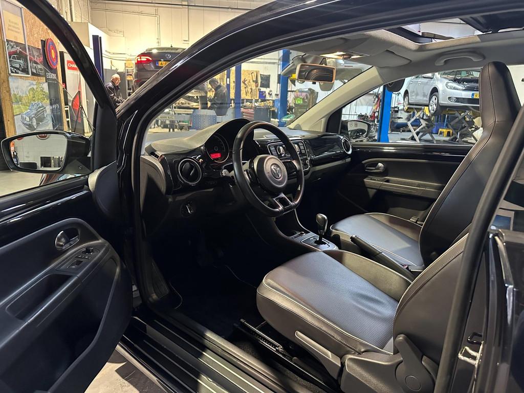 "Lichtmetalen velgen 15""", "Lichtmetalen velgen 16""", 16 inch velgen, Achterbank in delen neerklapbaar, Airbag(s) hoofd voor, Airbag(s) side voor, Airbag bestuurder, Airbag passagier, Airco, Anti Blokkeer Systeem, Anti Blokkeer Systeem (ABS), Anti Slip Control, Bestuurdersstoel in hoogte verstelbaar, Buitenspiegels in carrosseriekleur, Centrale deurvergrendeling met afstandsbediening, Chroom delen exterieur, Cruise control, Electronic Stability Program, Electronic Stability Program (ESP), Elektrische ramen voor, Extra getint glas, Hill hold-functie, Houten versnellingspook, Metallic lak, Navigatie-systeem uitneembaar, Navigatiesysteem, Panoramadak, Parkeersensor achter, Radio-CD/MP3 speler, Radio CD-speler, Startblokkering, Stuurbekrachtiging snelheidsafhankelijk, Tractie Controle Systeem (TCS), Up! black, Verwarmde voorstoelen, leder bekleding, pdc achter