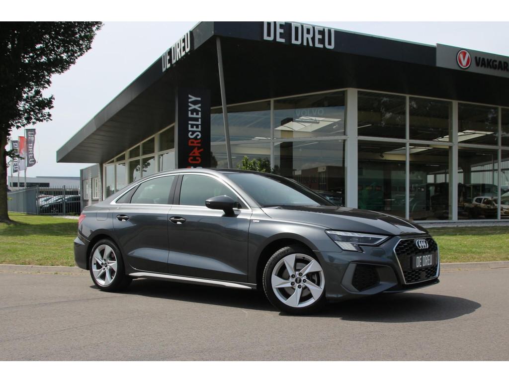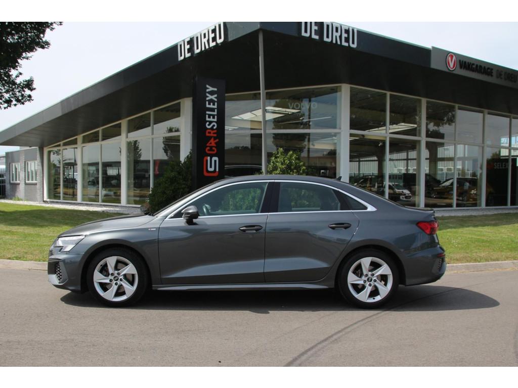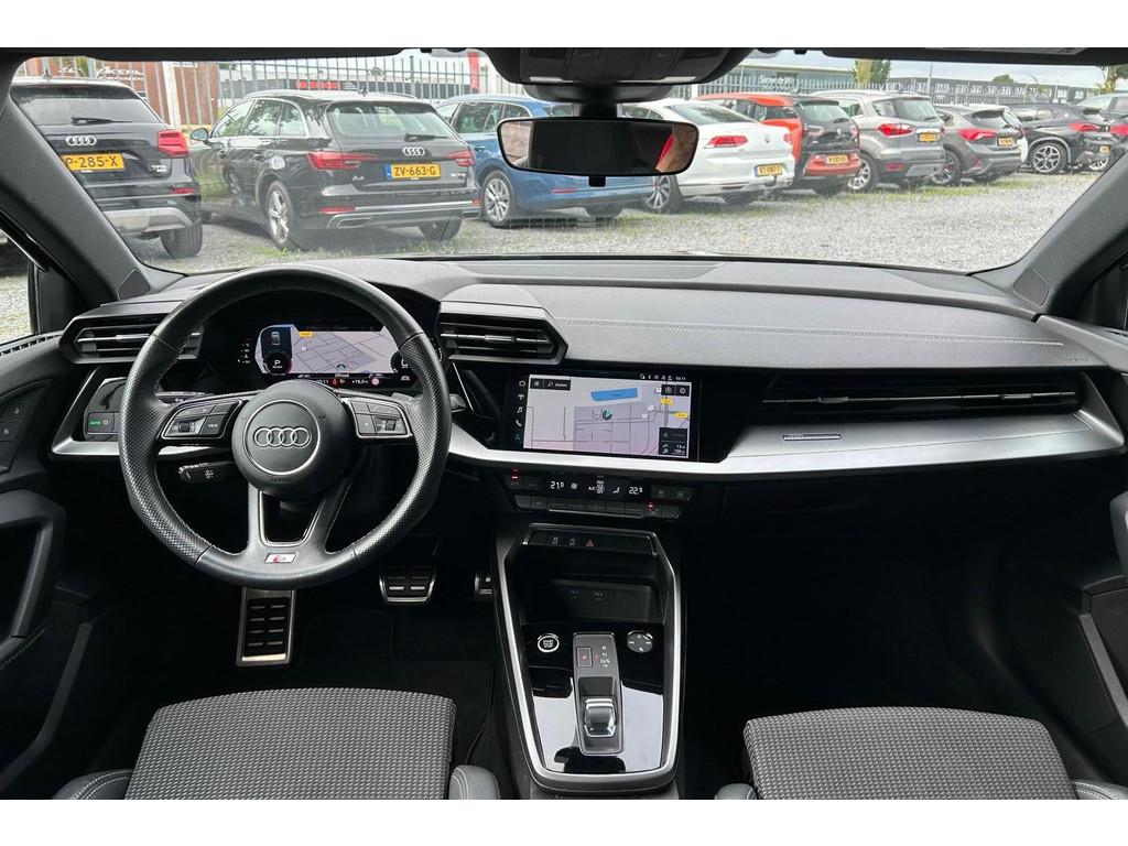 "Lichtmetalen velgen 5-spaaks 17""", Accident Avoidance System, Achterbank in delen neerklapbaar, Airbag(s) hoofd achter, Airbag(s) hoofd voor, Airbag(s) side voor, Airbag bestuurder, Airbag passagier, Aluminium delen exterieur, Aluminium interieur afwerking, Anti Blokkeer Systeem (ABS), Armsteun voor, Bandenspanningscontrolesysteem, Bestuurdersstoel in hoogte verstelbaar, Brake Assist System, Buitenspiegels elektrisch verstelbaar, Buitenspiegels in carrosseriekleur, Buitenspiegels verwarmbaar, Centrale deurvergrendeling met afstandsbediening, Connected services, Cruise control, DAB+, DAB-ontvanger, Dimlichten automatisch, Draadloze telefoonlader, Electronic Brake Distribution (EBD), Electronic Stability Program (ESP), Electronic climate controle, Keyless start, Kleur parelmoer, Koplampen adaptief, Koplampreiniging, LED-lichtpakket, LED achterlichten, LED dagrijverlichting, Lederen stuurwiel, Matrix LED koplampen, Metallic lak, Multimedia-voorbereiding, Navigatie full map, Origineel NL Auto, Parkeer-assistent, Parkeer pakket, Parkeersensor achter, Parkeersensor voor, Passagiersstoel in hoogte verstelbaar, Radio, Regensensor, Rijstrooksensor, Ruitensproeiers verwarmbaar, S-line pakket, S Line exterieur, Schakelmogelijkheid aan stuurwiel, Sportonderstel, Sportstoelen, Sportstuur, Start/stop systeem, Startblokkering, Stof/kunstlederen bekleding, Stuurbekrachtiging, Stuurhulp, Stuurwiel multifunctioneel, Telefoonintegratie premium, Tractie Controle Systeem (TCS), Uitwijk assistent, Verkeersbord detectie, Volledig digitaal instrumentenpaneel, Warmtewerende voorruit, WiFi voorbereiding, Wis-/was installatie voor koplampen