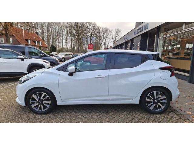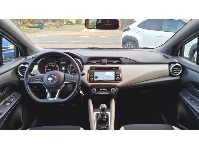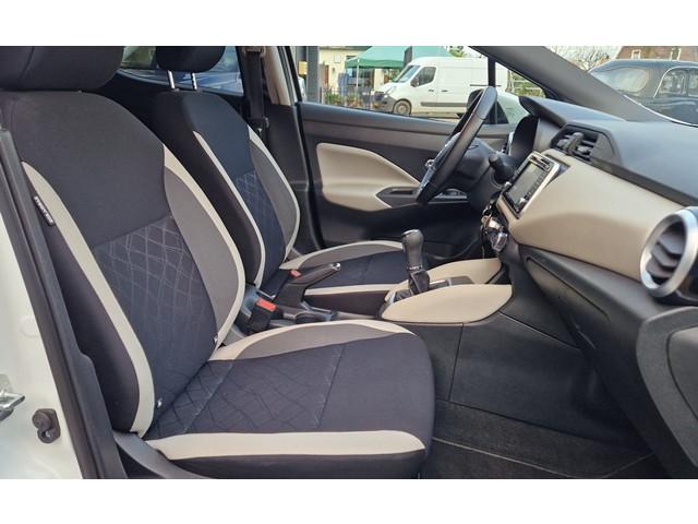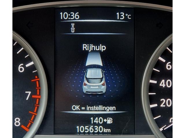 2 hoofdsteunen achter, 3-punts veiligheidsgordels achter (automatische oprolfunctie) (x3), 5'' Kleuren TFT instrumentenpaneel, 12V aansluiting, 16'' Lichtmetalen velgen, 60/40 neerklapbare achterbank, ABS (antiblokkeerremsysteem), Accubeschermingssysteem: automatische uitschakeling van koplampen en binnenverlichting bij vergeten, Achterspoiler, Achteruitrijcamera en parkeersensoren, Armsteun voorportieren met grijze inzetstukken, Automatische airconditioning, Automatische inschakeling van de ruitenwisser achteraan bij het inschakelen van de achteruitversnelling, Automatisch in-/uitschakelende koplampen, Bandenreparatieset, Bekerhouders (2 voor en 1 achter), Bekleding stof 'modern' zwart met grijze inzetstukken en stiksels, Binnendeurengrepen in chroom, Bovenste deel van het dashboard in soft-touch materialen, Buitenspiegels in carrosseriekleur, Buitenspiegels met geïntegreerde LED-richtingaanwijzers, Centrale deurvergrendeling met afstandsbediening, Cruise Control en snelheidsbegrenzer, Deurgrepen achteraan geïntegreerd in de achterstijl, Deurgrepen vooraan carrosseriekleur, EBD (elektronische remkrachtverdeler), ESP (Electronic Stability Program), Elektrische ruiten voor en handbediende achter, Elektrisch verstelbare buitenspiegels, elektrisch inklapbaar, Frontale airbags (uitschakelbare passagiersairbag), Getint glas, Gordelwaarschuwing, Gordijn airbags, Halogeen koplampen met lichtsignatuur, Hill start assist, ISOFIX kinderstoel bevestigingspunten passagierszijde en achter, In hoogte en diepte verstelbaar stuurwiel, In hoogte verstelbare bestuurdersstoel, Intelligente noodremhulp (AEB), Interieurverlichting en verlichting bedieningsknoppen elektrische ruiten, Kindersloten op de achterportieren, LED-verlichting dashboardkastje, LED dagrijverlichting, Lederen stuurwiel met stiksels, Metaalkleur, Mistlampen voor, NBAS (Nissan Brake Assist), NissanConnect navigatie, Opbergbakken in de binnenportieren voor en achter met flessenhouders, Opbergvak op de rugleuning van de passagiersstoel, Regensensor met automatische ruitenwissers, Schakelindicator, Snelheidsafhankelijke stuurbekrachtiging, Start & Stop systeem, Startonderbreking, Stuurwielbedieningen: boordcomputer, audio, telefoon, snelheidsbegrenzer / cruise control, TPMS (bandenspanning controlesysteem), Traction Control System (TCS), Trekhaak, Uitneembare bagage-afdekking, Veiligheidsgordels voor en achter met gordelspanners en spankrachtbegrenzers, Versnellingspookknop met satijnzilveren afwerking, Verstelbare hoofdsteunen voor, Verwarmde buitenspiegels, Zachte kniesteunen met stiksels, Zijdelingse airbags vooraan, Zonneklep voor bestuurder en passagier met make-up spiegeltje, kofferbakverlichting