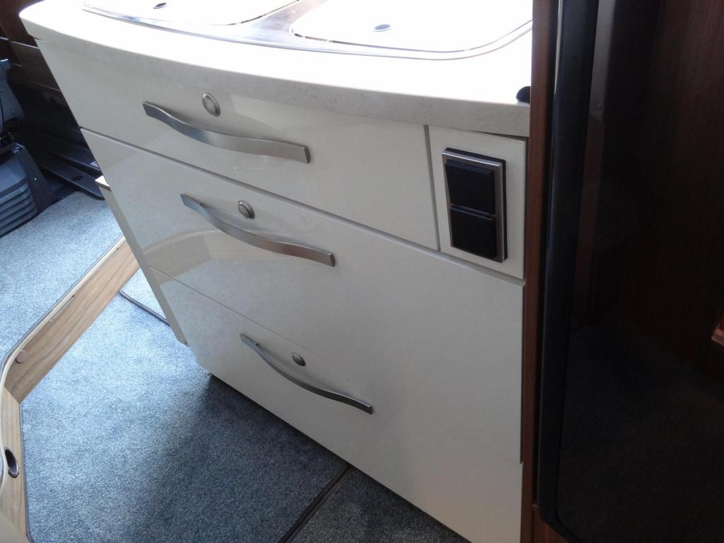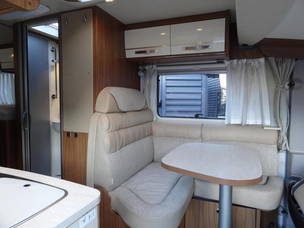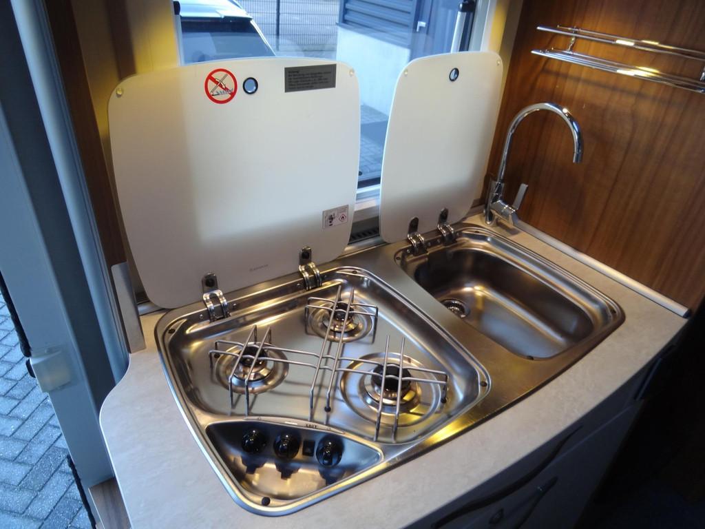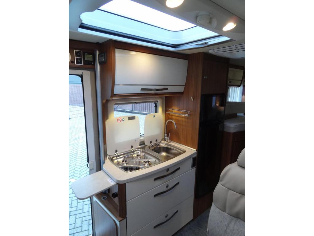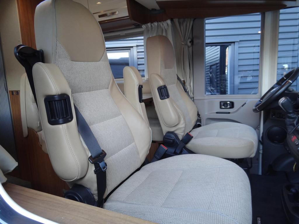 2 enkele bedden, 2 persoons hefbed voorin, 3 pits gasstel, ASR, anti slip regeling, Abus Sloten op de deuren voor extra beveiliging, Accessoires accu groot, Achteruitrijcamera, Airbag, Airbag bestuurder, Alle kunstofdelen in kleur gespoten, Anti Blokkeer Systeem (ABS), Apple Car Play, Autotelefoonvoorbereiding, Bearlock op de versnellingsbak, Binnenverlichting laadruimte, Boordcomputer, Buitenaansluiting om gasflessen te vullen, Buitenspiegels elektrisch verstelbaar, Buitenspiegels met stoeprandfunctie, Centrale deurvergrendeling, Cruise control, Cruisecontrole, DAB-ontvangermodule, Dagrijverlichting, Douche, Douche en Toilet ruimte met kast wastafel en Spiegel, Draaibare voorstoelen met armleuningen, beide in hoogte verstelbaar, Dubbele bodem met veel opbergruimte, Edelhout uitvoering Fineline-pure, Eettafel met verschuif en inschuifbaar blad, Electrisch uitschuifbare opstap, Elektrisch bedienbare ramen., Elektrische ramen, Elektronische climate control, Extra verlichting, Grote Koelkast met vriesvak 140 liter, Hagelbestendig dak, Hoofdsteunen voor, Hordeur bij instap woongedeelte, Keukenblok, Lichtmetalen velgen, Luifel, Middenkeuken, Multifunctioneel stuur, Navigatiesysteem, Opbergruimte-pakket, Openslaande ramen met hor en verduistering, Oyster schotelantenne, Reservewiel, Rondom raamverduistering/ plisse, Rondzit met eettafel, Schoonwatertank 100 liter, Skyroof, Startblokkering, Stoelen met armleuning en draaibaar, Stuurbekrachtiging, TV-ontvanger, Thule cassette luifel, Toilet, Tractie Controle Systeem (TCS), Truma Kachel met ringverwarming, Verstelbare stuurkolom, Zenec Navigatie/ full map multimedia/radio etc.., Zonnedak, Zonnenpaneel, truma Kachel "Trumatic" met boiler, vuilwatertank