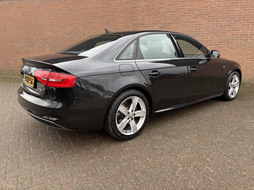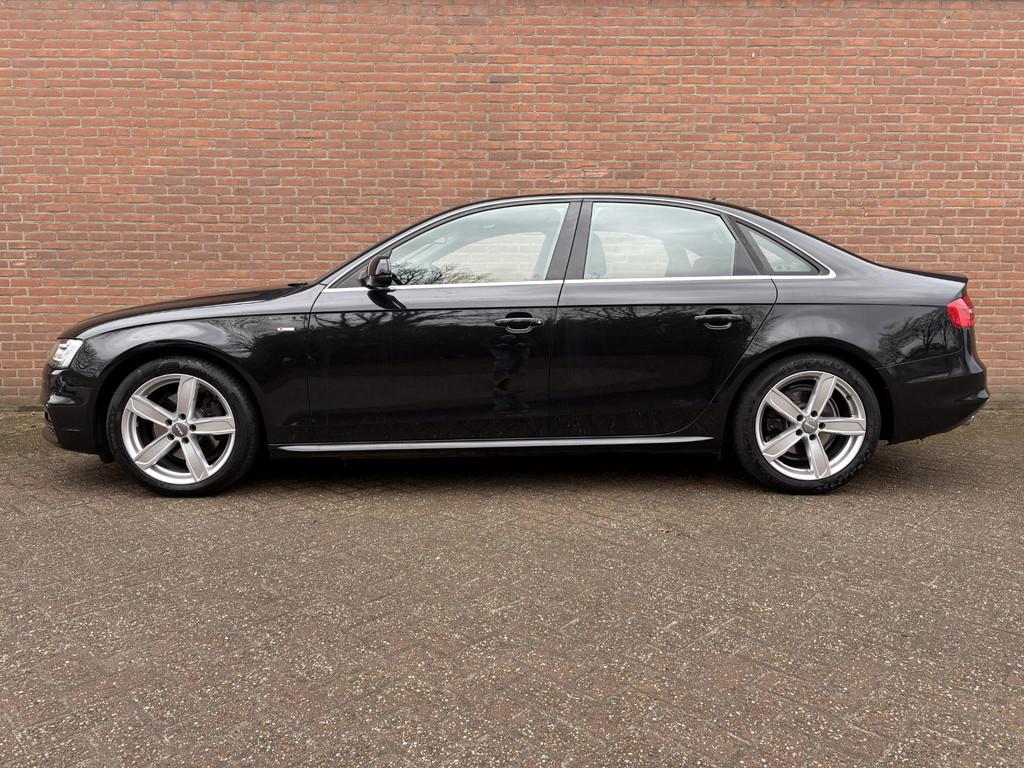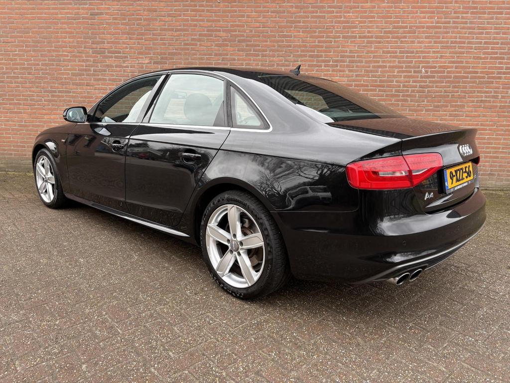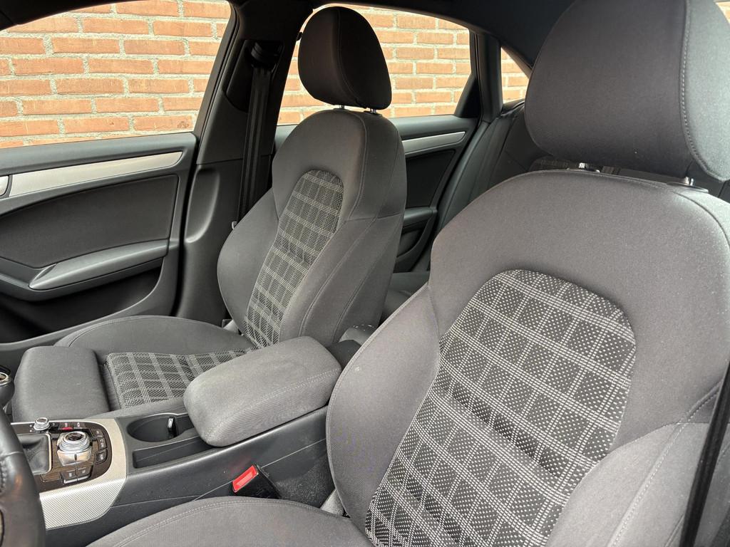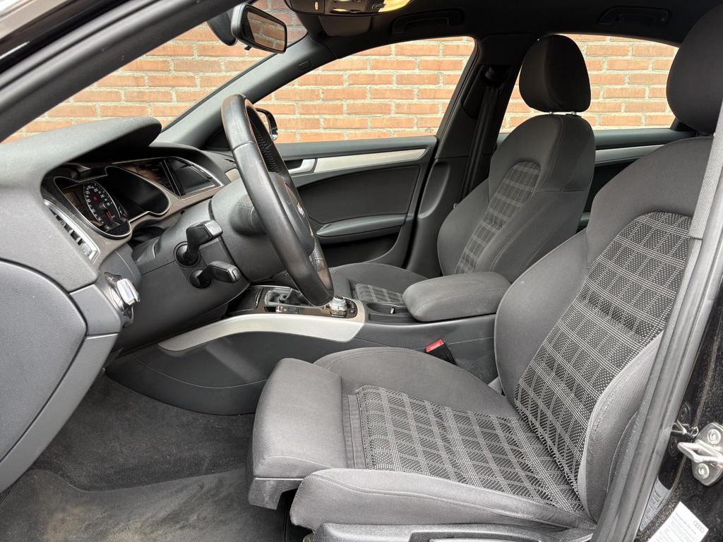 Airconditioning, volautomatisch comfort 3-zone (9AQ), Anti Blokkeer Systeem, Anti doorSlip Regeling, Audi Connect (WN3), Elektronisch Stabiliteits Programma, Lendensteunen vóór, elektrisch verstelbaar (7P1), Middenarmsteun voor A4 (6E3), Parkeerhulp achter (7X1), S Line exterieur, Sportonderstel (1BE), Sportstoelen voor A4 (PS1), Telefoonvoorbereiding basis (9ZX), Xenon plus verlichting (PX1), airco (automatisch), alarm klasse 1(startblokkering), aluminium interieur afwerking, armsteun achter, bestuurdersairbag, boordcomputer, buitenspiegels elektrisch verstel- en verwarmbaar, centrale deurvergrendeling met afstandsbediening, cruise control, dimlichten automatisch, elektrische ramen voor en achter, elektronische remkrachtverdeling, koplampreiniging, lederen stuurwiel, lichtmetalen velgen 18", metaalkleur, mistlampen voor, navigatiesysteem full map + hard disk, passagiersairbag, radio CD speler, regensensor, ruitensproeiers verwarmbaar, start/stop systeem, stuurwiel multifunctioneel, vermoeidheids herkenning, zij airbag(s) voor