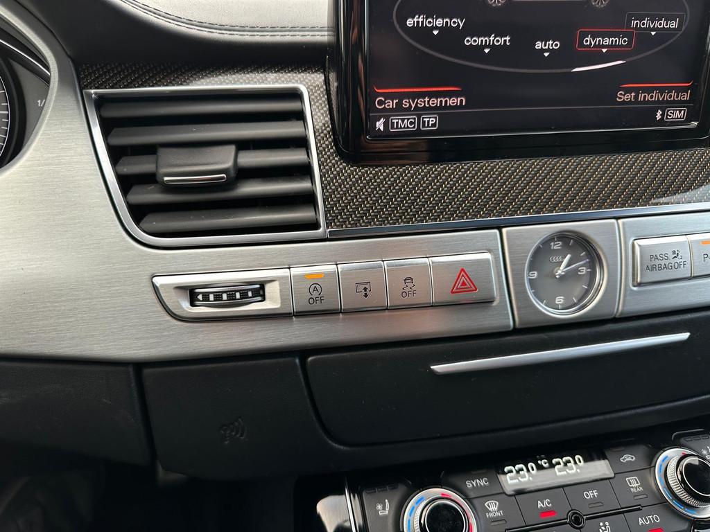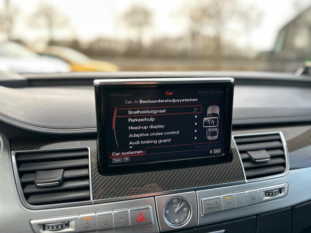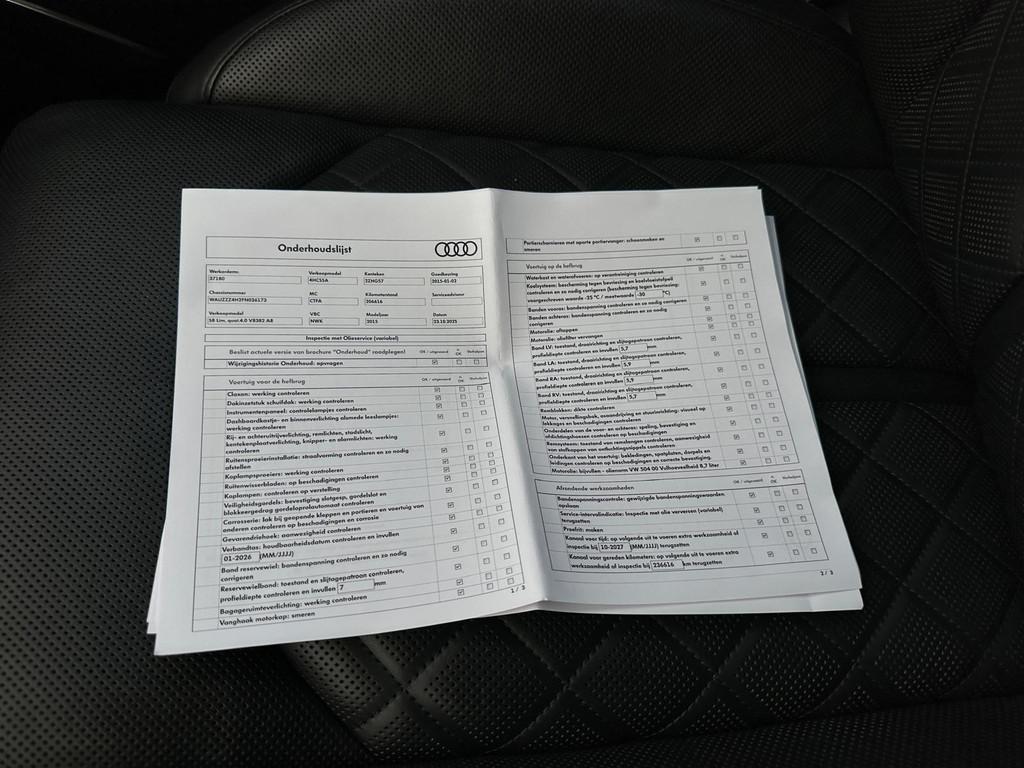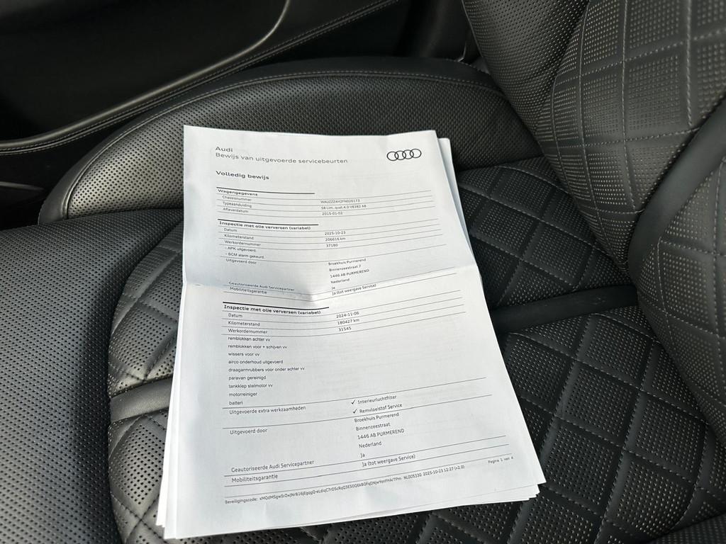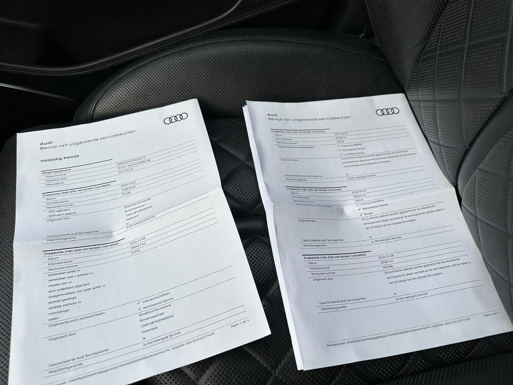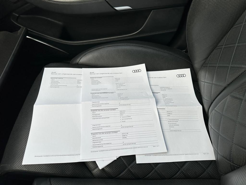 "Lichtmetalen velgen 20""", Achteruitrijcamera, Airbag(s) side voor, Airbag bestuurder, Airbag passagier, Alarm klasse 3, Aluminium interieur afwerking, Anti Blokkeer Systeem, Anti Blokkeer Systeem (ABS), Anti Slip Control, Armsteun achter, Armsteun voor, Audio-navigatie full map, Audio installatie high-end, Audio installatie premium, Automatisch Sper Differentieel, Automatische niveauregeling, Autotelefoonvoorbereiding met Bluetooth, Bandenspanningscontrolesysteem, Binnenspiegel automatisch dimmend, Buitenspiegel(s) automatisch dimmend, Buitenspiegels elektronisch verstelbaar, Buitenspiegels inklapbaar, Buitenspiegels verwarmbaar, Cruise control adaptief met Stop&Go, DAB-ontvanger, Dodehoek detector, Electronic Stability Program, Electronic Stability Program (ESP), Electronic climate controle, Elektrisch bedienbare achterklep, Elektrisch glazen schuif-/kanteldak, Elektrisch schuif-/kanteldak met zonnepanelen, Elektrisch verstelbare stuurkolom, Elektrisch verstelbare voorstoel(en), Elektronisch sperdifferentieel, Entertainment system, Geluidsisolerend glas, Grootlicht-assistent, Hard disk, Head-up display, Interieur voorverwarmingsinstallatie, Keyless entry, Koplampen adaptief, LED koplampen, Lederen bekleding, Lederen versnellingspook, Luchtvering, Luxe lederen bekleding, Multifunctioneel lederen stuurwiel, Parkeersensor voor en achter, Rondomzicht camera, S Line exterieur, Schakelmogelijkheid aan stuurwiel, Start/stop systeem, Stuurbekrachtiging snelheidsafhankelijk, Tractie Controle Systeem (TCS), Verkeersbord detectie, Voorstoelen met massagefunctie en ventilagefunctie, Voorstoelen verwarmd, luchtvering