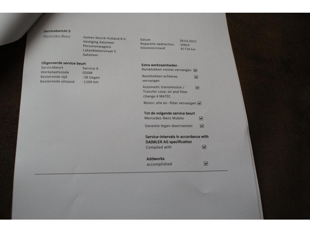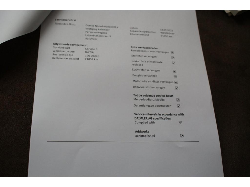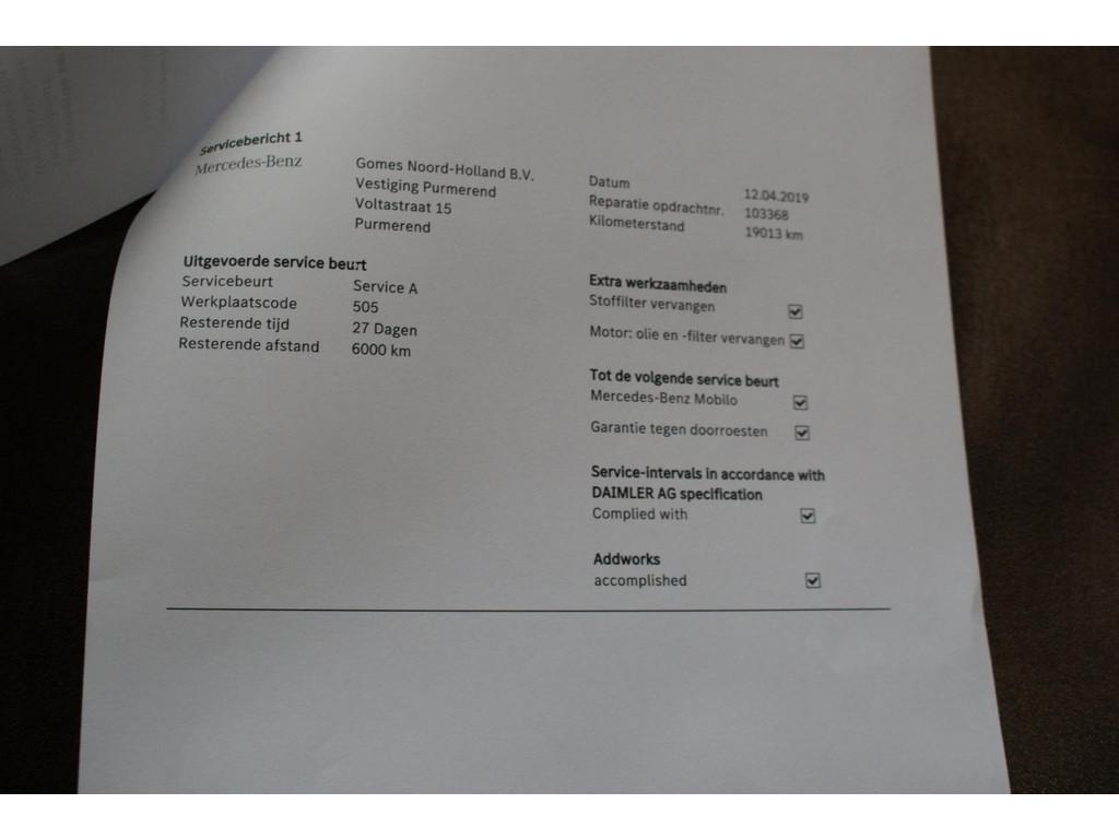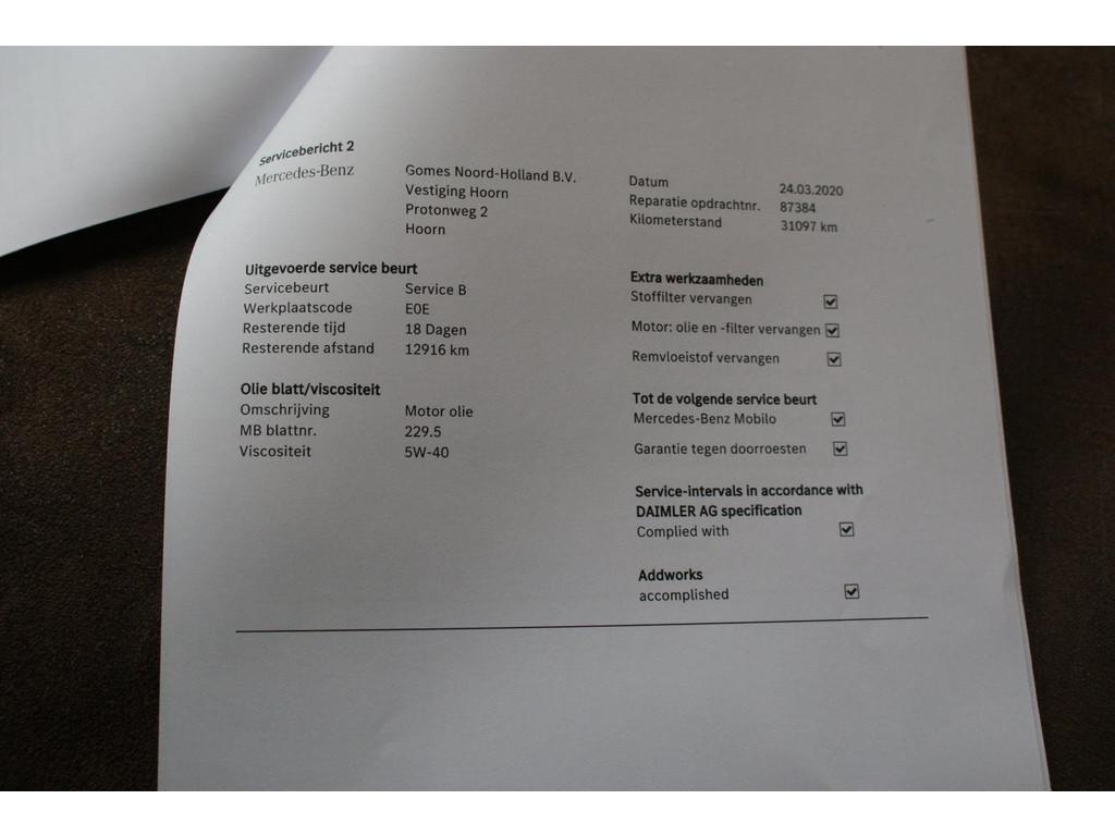 "Lichtmetalen velgen 18""", AMG-styling, Accident Avoidance System, Achterbank in delen neerklapbaar, Achteropkomend verkeer waarschuwing, Achteruitrijcamera, Airbag(s) hoofd achter, Airbag(s) hoofd voor, Airbag(s) knie, Airbag(s) side voor, Airbag bestuurder, Airbag passagier, Airco automatisch, Anti Blokkeer Systeem (ABS), Armsteun voor, Audioinstallatie met CD-speler, Autotelefoonvoorbereiding met Bluetooth, Bandenspanningscontrolesysteem, Binnenspiegel automatisch dimmend, Buitenspiegel(s) automatisch dimmend, Buitenspiegels elektrisch inklapbaar, Buitenspiegels elektrisch verstelbaar, Buitenspiegels verwarmbaar, Centrale deurvergrendeling met afstandsbediening, Connected services, Cruise control, Dimlichten automatisch, Dodehoek detector, Electronic Brake Distribution (EBD), Electronic Stability Program (ESP), Electronic climate controle, Elektrisch bedienbare achterklep, Elektrische ramen achter, Elektrische ramen voor, Elektrisch glazen panorama-dak, Elektrisch verstelbare voorstoel(en), Extra getint glas, Hill hold-functie, Koplampen adaptief, LED achterlichten, LED dagrijverlichting, LED koplampen, Lederen bekleding, Lederen stuurwiel, Metallic lak, Multimedia-voorbereiding, Navigatie full map, Parkeer-assistent, Parkeersensor achter, Parkeersensor voor, Regensensor, Spraakbediening, Start/stop systeem, Startblokkering, Stuurbekrachtiging snelheidsafhankelijk, Stuurwiel multifunctioneel, Tractie Controle Systeem (TCS), Vermoeidheids herkenning, Verwarmde voorstoelen, Warmtewerend glas