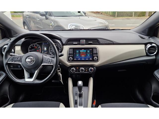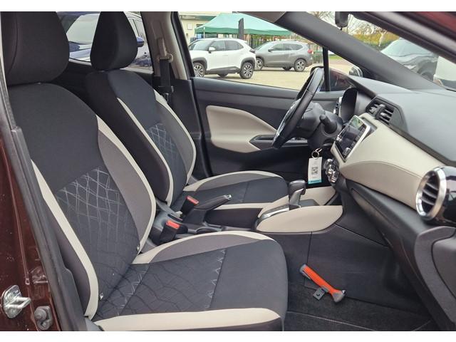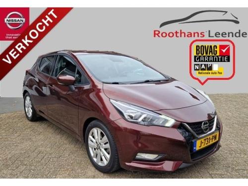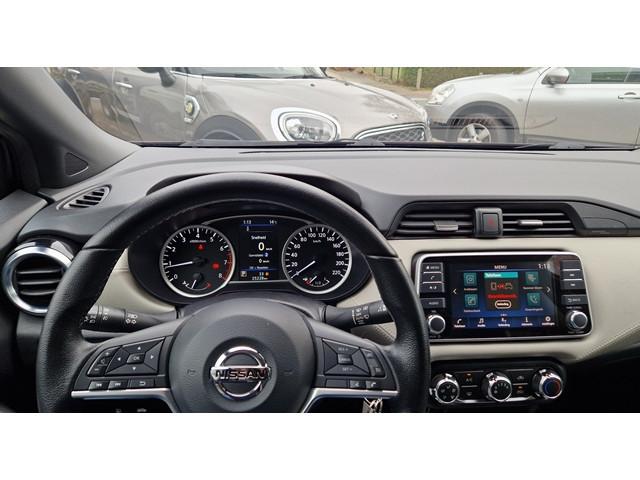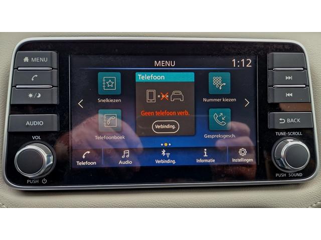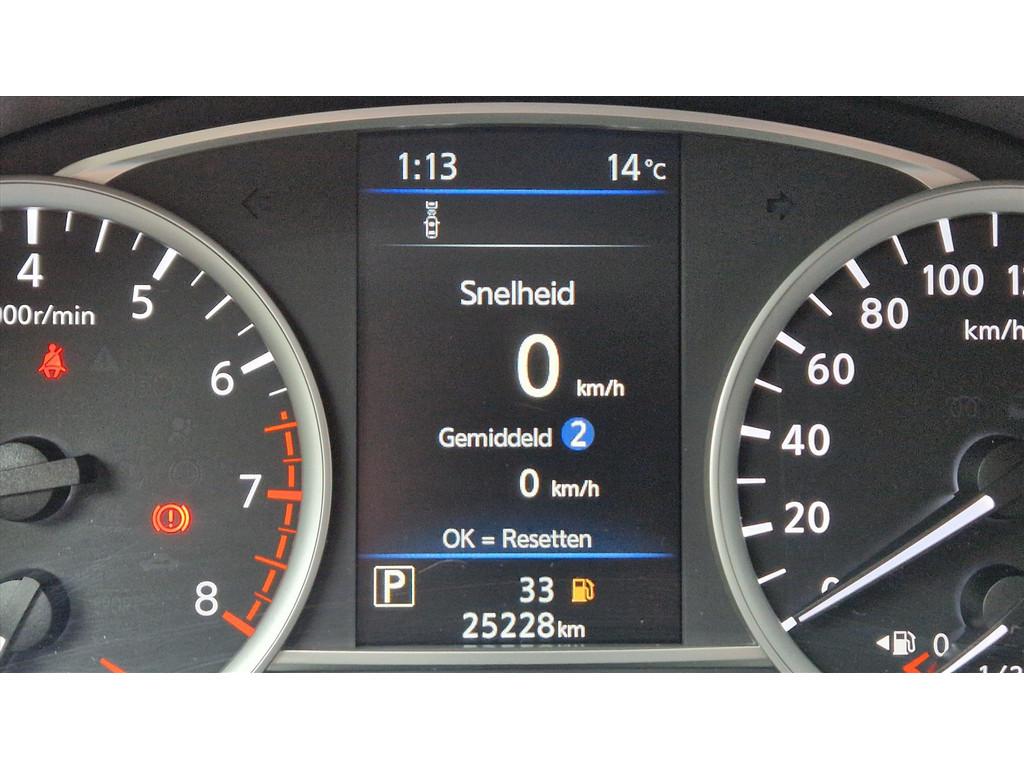 2 hoofdsteunen achter, 3-punts veiligheidsgordels achter (automatische oprolfunctie) (x3), 5'' Kleuren TFT instrumentenpaneel, 12V aansluiting, 16'' Lichtmetalen velgen, 60/40 neerklapbare achterbank, ABS (antiblokkeerremsysteem), Achterspoiler, Android Auto, Anti-vermoeidheidsstoelen voor, Apple CarPlay, Armsteun voorportieren met grijze inzetstukken, Automatische inschakeling van de ruitenwisser achteraan bij het inschakelen van de achteruitversnelling, Automatisch in-/uitschakelende koplampen, Bandenreparatieset, Bekerhouders (2 voor en 1 achter), Bekleding stof 'modern' zwart met grijze inzetstukken en stiksels, Binnendeurengrepen in chroom, Bovenste deel van het dashboard in soft-touch materialen, Buitenspiegels in carrosseriekleur, Buitenspiegels met geïntegreerde LED-richtingaanwijzers, Centrale deurvergrendeling met afstandsbediening, Chassis Control Systeem (Active Trace Control, Active Ride Control), Cruise Control en snelheidsbegrenzer, Deurgrepen achteraan geïntegreerd in de achterstijl, Deurgrepen vooraan carrosseriekleur, EBD (elektronische remkrachtverdeler), ESP (Electronic Stability Program), Elektrische ruiten vooraan en achteraan, Elektrisch verstelbare buitenspiegels, elektrisch inklapbaar, Frontale airbags (uitschakelbare passagiersairbag), Getint glas, Gordelwaarschuwing, Gordijn airbags, Halogeen koplampen met lichtsignatuur, Handgreep passagierszijde (x1), Hill start assist, ISOFIX kinderstoel bevestigingspunten passagierszijde en achter, In hoogte en diepte verstelbaar stuurwiel, In hoogte verstelbare bestuurdersstoel, Intelligente noodremhulp (AEB), Interieurverlichting en verlichting bedieningsknoppen elektrische ruiten, Kindersloten op de achterportieren, LED-verlichting dashboardkastje, LED dagrijverlichting, Lederen stuurwiel met stiksels, Manuele airconditioning, Metaalkleur, NBAS (Nissan Brake Assist), Nissan Connect, Opbergbakken in de binnenportieren voor en achter met flessenhouders, Opbergvak op de rugleuning van de passagiersstoel, Parkeersensoren achter, Schakelindicator, Snelheidsafhankelijke stuurbekrachtiging, Start & Stop systeem, Startonderbreking, Stuurwielbedieningen: boordcomputer, audio, telefoon, snelheidsbegrenzer / cruise control, TPMS (bandenspanning controlesysteem), Traction Control System (TCS), Uitneembare bagage-afdekking, Veiligheidsgordels voor en achter met gordelspanners en spankrachtbegrenzers, Versnellingspookknop met satijnzilveren afwerking, Verstelbare hoofdsteunen voor, Verwarmde buitenspiegels, Zachte kniesteunen met stiksels, Zijdelingse airbags vooraan, Zonneklep voor bestuurder en passagier met make-up spiegeltje, kofferbakverlichting