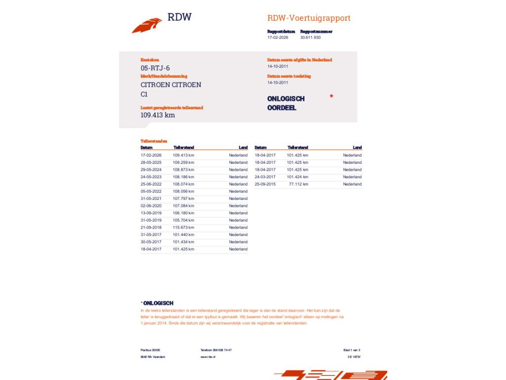 Mileage 109.413 NAP checked