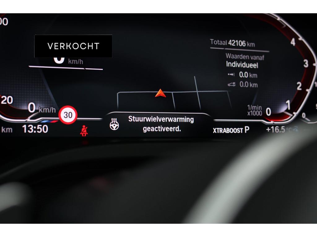 "Lichtmetalen velgen 21""", 360 Camera, Accident Avoidance System, Achteropkomend verkeer waarschuwing, Achteruitrij assistent, Achteruitrijcamera, Adaptief Demping Systeem (ADS), Adaptief onderstel, Adaptive cruise control, Afdaal assistent, Airbag(s) hoofd achter, Airbag(s) hoofd voor, Airbag(s) side voor, Airbag bestuurder, Airbag passagier, Airco, Airco automatisch, Airco separaat achter, Alarm klasse 3, Aluminium interieur afwerking, Ambiente lichtpakket, Android Auto, Anti Blokkeer Systeem (ABS), Apple Carplay, Armsteun, Armsteun achter, Armsteun voor, Audio installatie, Autotelefoonvoorbereiding met Bluetooth, Bagage-scheidingsnet, Bandenspanningscontrolesysteem, Binnenspiegel automatisch dimmend, Boordcomputer, Bots herkenning en activatie, Bots waarschuwing systeem, Brake Assist System, Buitenspiegel(s) automatisch dimmend, Buitenspiegels elektrisch inklapbaar, Buitenspiegels elektrisch verstelbaar, Buitenspiegels in carrosseriekleur, Buitenspiegels verwarmbaar, Centrale deurvergrendeling met afstandsbediening, Comfort Access pakket, Connected services, Cruise control, Cruise control adaptief met Stop&Go, DAB, DAB-ontvanger, Dakrails, Dimlichten automatisch, Dodehoek detector, Dodehoek herkenning, Dual view-functie, Electronic Stability Program (ESP), Elektrisch bedienbare achterklep, Elektrisch bedienbare achterklep met sensorsturing, Elektrische achterklep met voetsensor, Elektrische ramen achter, Elektrische ramen voor, Elektrisch glazen panorama-dak, Elektrisch verstelbare stoel(en) met geheugen, Extra getint glas, Geluidwerend glas, Getinte ramen, Head-Up Display, Head-up display, Hill hold-functie, Hoofdsteunen actief, Interieur voorverwarmingsinstallatie, Keyless entry, Keyless entry/go, Keyless start, Kunstlederen bekleding, LED achterlichten, LED dagrijverlichting, LED koplampen, Lederen bekleding, Lederen sportstuur, Lederen stuurwiel, Lichtmetalen velgen 21'', M Aerodynamica, M Sport, M Sport Plus Pack, Metallic lak, Middenarmsteun, Multimedia-voorbereiding, Navigatie, Navigatie full map, Oplaadmogelijkheid, Panoramadak, Parkeer-assistent, Parkeersensor achter, Parkeersensoren achter, Parkeersensor voor, Radio, Regensensor, Rijstrooksensor, Rondomzicht camera, Ruitensproeiers verwarmbaar, Safety-pack, Schakelmogelijkheid aan stuurwiel, Sensatec Dashboard, Sperdifferentieel, Sportstuur, Spraakbediening, Start/stop systeem, Stoelen-pakket, Stoel ventilatie voor, Stoelventilatie voor, Stuurbekrachtiging snelheidsafhankelijk, Stuur verstelbaar, Stuurwiel multifunctioneel, Stuurwiel verwarmd, Telefoonintegratie premium, Telefoonvoorbereiding, Tractie Controle Systeem (TCS), Uitparkeer assistent, Variabele stuuroverbrenging, Verkeersbord detectie, Vermoeidheids herkenning, Verwarmde voorstoelen, Volledig digitaal display, Volledig digitaal instrumentenpaneel, Voorstoelen in hoogte verstelbaar, Zwarte hemelbekleding, verwarmbare achterruit