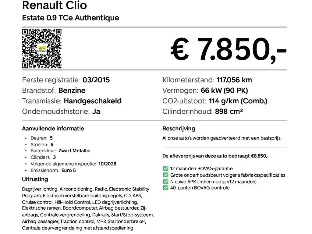 Airbag(s) side voor, Airbag bestuurder, Airbag passagier, Airco, Anti Blokkeer Systeem, Anti Blokkeer Systeem (ABS), Anti Slip Control, Bagagedek, Boordcomputer, Buitenspiegels elektrisch verstelbaar, Buitenspiegels verwarmbaar, Centrale deurvergrendeling met afstandsbediening, Cruise control, Dakrails, Electronic Brake Distribution, Electronic Stability Program, Electronic Stability Program (ESP), Elektrische ramen voor, Hill hold-functie, LED dagrijverlichting, Metallic lak, Pack Essentiel, Radio-CD/MP3 speler, Start/stop systeem, Startblokkering, Stuur verstelbaar, Tractie Controle Systeem (TCS)