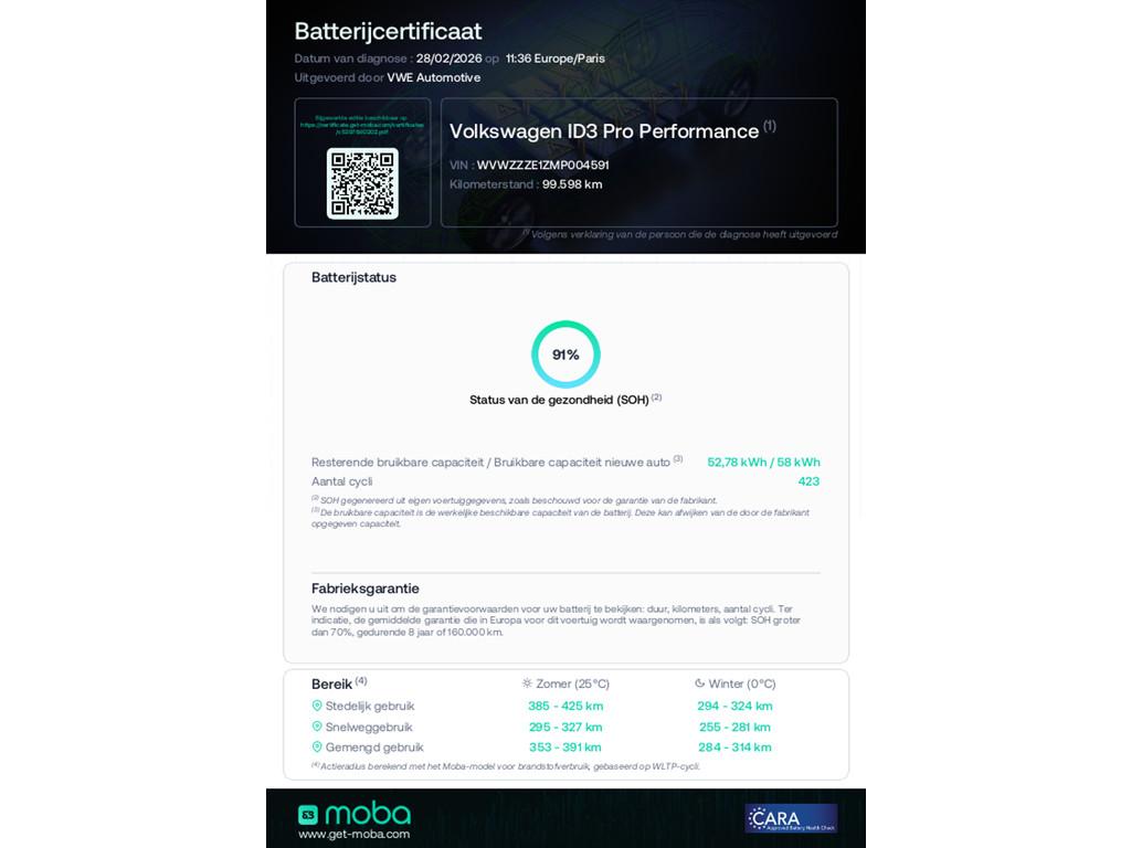 VOLKSWAGEN ID.3 First Plus 58 kWh camera soh 91%
