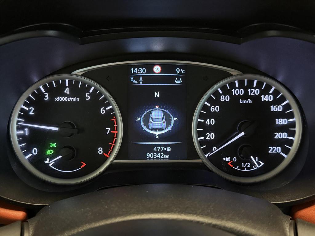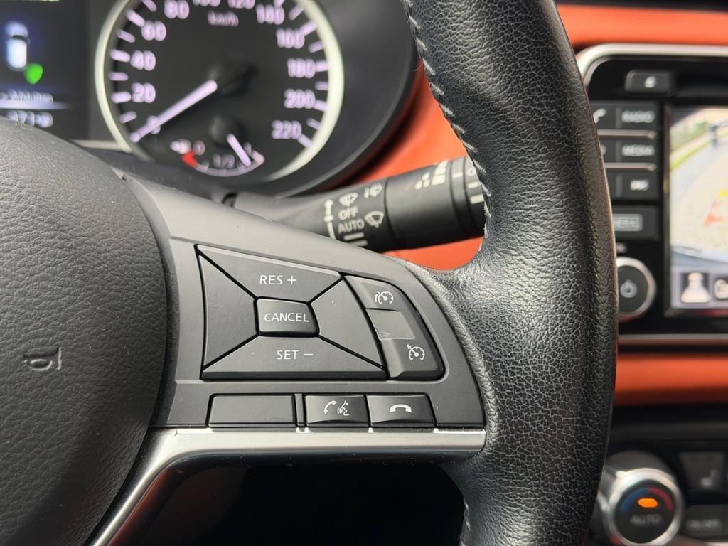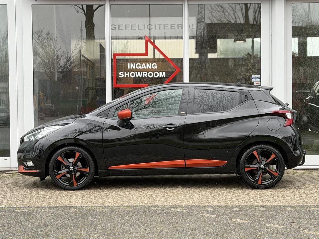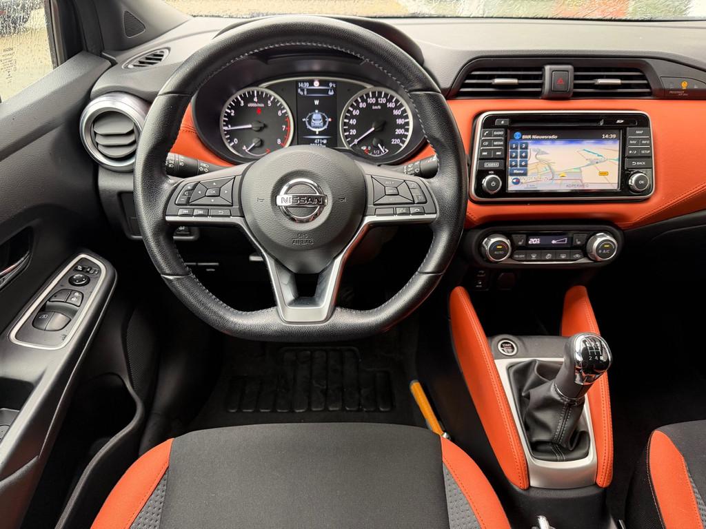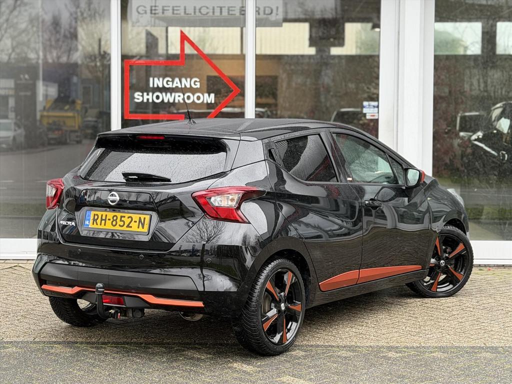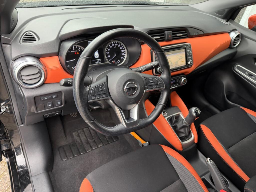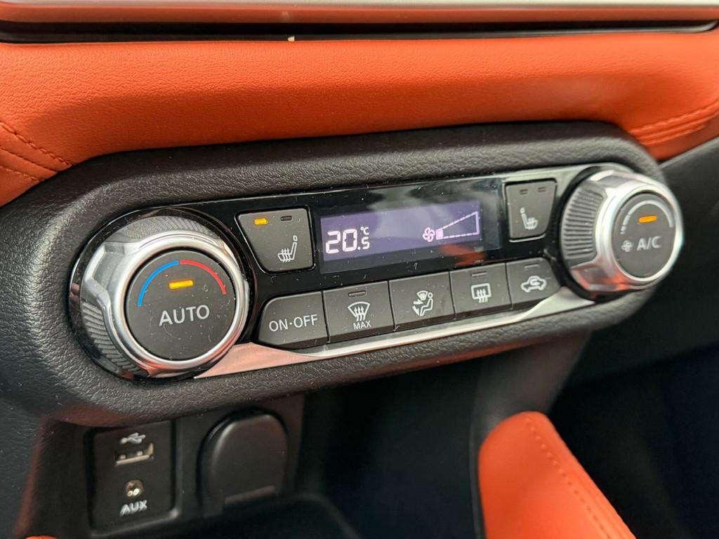 3 hoofdsteunen achter, 3-punts veiligheidsgordels achter (automatische oprolfunctie) (x3), 5'' Kleuren TFT instrumentenpaneel, 12V aansluiting, 17'' Lichtmetalen velgen met bijhorende kleureninserts, 60/40 neerklapbare achterbank, ABS (antiblokkeerremsysteem), Accenten op dashboard, deuren en stoelen in energy orange, Accubeschermingssysteem: automatische uitschakeling van koplampen en binnenverlichting bij vergeten, Achterspoiler, Achteruitrijcamera en parkeersensoren, All season banden, Armsteun voorportieren en dashboard in synthetisch leder, Automatische airconditioning, Automatische inschakeling van de ruitenwisser achteraan bij het inschakelen van de achteruitversnelling, Automatisch in-/uitschakelende koplampen, Bandenreparatieset, Bekerhouders (2 voor en 1 achter), Bekleding stof 'absolute' zwart met grijze inzetstukken en stiksels, Binnendeurengrepen in chroom, Bovenste deel van het dashboard in soft-touch materialen, Buitenspiegels in carrosseriekleur, Buitenspiegels met geïntegreerde LED-richtingaanwijzers, Centrale deurvergrendeling met afstandsbediening, Cruise Control en snelheidsbegrenzer, Deurgrepen achteraan geïntegreerd in de achterstijl, Deurgrepen vooraan carrosseriekleur, EBD (elektronische remkrachtverdeler), ESP (Electronic Stability Program), Elektrische ruiten voor en handbediende achter, Elektrisch verstelbare buitenspiegels, elektrisch inklapbaar, Exclusive Bose styling set, Frontale airbags (uitschakelbare passagiersairbag), Getint glas, Gordelwaarschuwing, Gordijn airbags, Halogeen koplampen met lichtsignatuur, Handremgreep met leder bekleed, Hill start assist, ISOFIX kinderstoel bevestigingspunten passagierszijde en achter, In hoogte en diepte verstelbaar stuurwiel, In hoogte verstelbare bestuurdersstoel, Intelligente grootlichten, Intelligente noodremhulp (AEB) met voetgangerdetectie, Intelligent key met STOP/START knop, Intellingent Around View Monitor, Interieurverlichting en verlichting bedieningsknoppen elektrische ruiten, Kindersloten op de achterportieren, LED-verlichting dashboardkastje, LED dagrijverlichting, LED koplampen, Lederen stuurwiel met stiksels, Lederen versnellingspookknop met satijnzilveren afwerking, Metaalkleur, Mistlampen voor, NBAS (Nissan Brake Assist), NissanConnect navigatie, Opbergbakken in de binnenportieren voor en achter met flessenhouders, Opbergvak op de rugleuning van de passagiersstoel, Regensensor met automatische ruitenwissers, Rijbaan-assistent, Schakelindicator, Snelheidsafhankelijke stuurbekrachtiging, Spiegelkappen in energy orange, Standaard lakkleur, Start & Stop systeem, Startonderbreking, Stuurwielbedieningen: boordcomputer, audio, telefoon, snelheidsbegrenzer / cruise control, Systeem Bose Personal Audio met 6 luidsprekers, TPMS (bandenspanning controlesysteem), Traction Control System (TCS), Trekhaak, Trekhaak afneembaar, Uitlaatafwerking, Uitneembare bagage-afdekking, Veiligheidsgordels voor en achter met gordelspanners en spankrachtbegrenzers, Verkeersbordherkenning, Verstelbare hoofdsteunen voor, Verwarmbare voorstoelen, Verwarmde buitenspiegels, Voor- en achterbumperafwerking in energy orange, Voorbereiding voor radio, Zachte kniesteunen met stiksels, Zijdelingse airbags vooraan, Zijstrips in energy orange, Zonneklep voor bestuurder en passagier met make-up spiegeltje, kofferbakverlichting