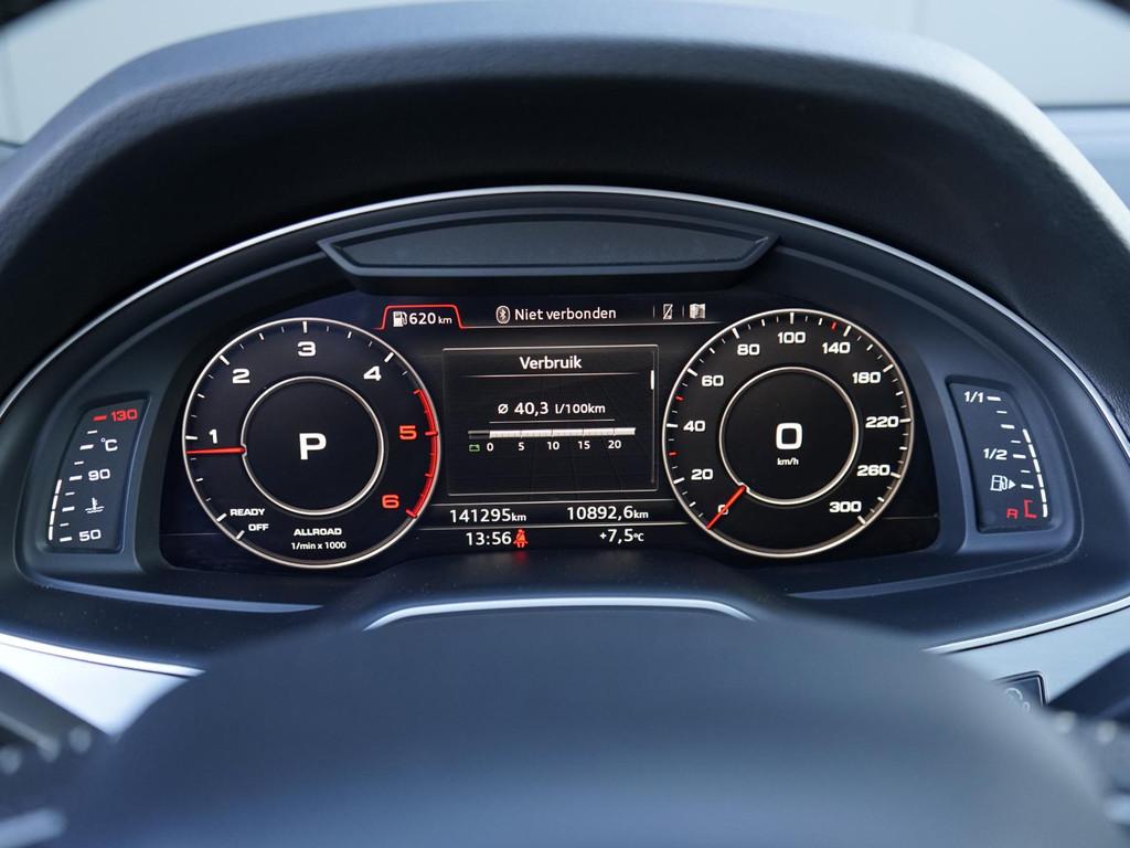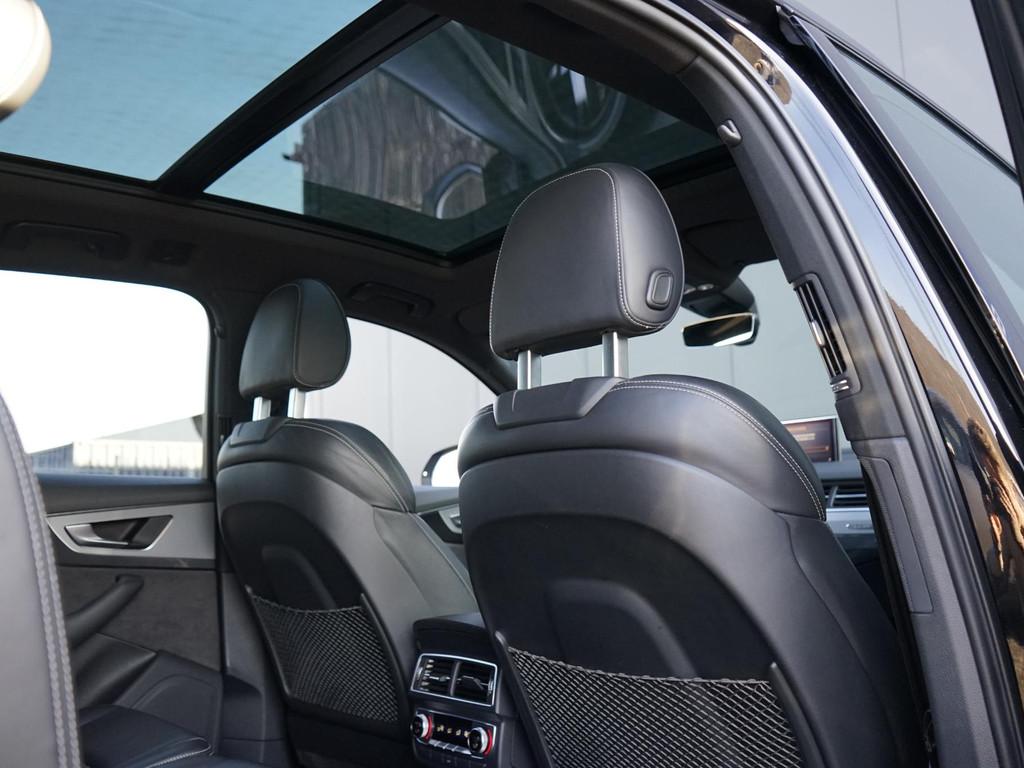 Achteruitrijcamera (KA2), Adaptive air suspension (1BK), Airconditioning, volautomatisch comfort met vier zones (PK2), Anti Blokkeer Systeem, Assistance pakket, Assistentiepakket Tour (PCN), Audi active lane assist (PCB), Audi side assist inclusief Audi pre sense rear (PCH), Autonomous Emergency Braking, Bekleding leder Valcona met geruit stiksel met S logo (N0Q), Bluetooth telefoonvoorbereiding, Bose Sound system met 3D sound (9VS), Buitenspiegels, elektrisch inklapbaar met automatisch dimmende buitenspiegels (6XK), Buitenspiegels, elektrisch inklapbaar met geheugenfunctie (6XF), Comfortsleutel (PGC), DVD speler, Decoratielijsten, boven geborsteld aluminium Sono, onder Eloxallak antraciet (5TE), Digitale radio ontvangst (QV3), Dubbel geluidisolerend glas (PDG), Elektronisch Stabiliteits Programma, Glas, donker getint (4KF), Head-up display (KS1), Interieurvoorverwarming (PK6), LED achterlichten, LED dagrijverlichting, Leder-pakket, Matrix LED koplampen (PXC), Metallic lak (lak1), Optie-pakket, Panoramadak (3FU), Parkeerassistent (7X5), Parkeerhulp vóór en achter (7X2), S line exterieur (PQD), Snelheidslimietherkenning (QR9), Sportstoelen voor (Q1D), Sportstuurwiel, driespaaks multifunctioneel in leder met schakelpaddels (1XW), Stoelen, vóór verwarmbaar (4A3), Stoelen vóór, elektrisch verstelbaar (PV1), Stoelen vóór, elektrisch verstelbaar met geheugenfunctie (PV3), aanhanger assistent, achterbank in delen neerklapbaar, alarm klasse 3, armsteun voor, bandenspanningscontrolesysteem, bestuurdersairbag, binnenspiegel automatisch dimmend, boordcomputer, buitensp.elektr.verstel -verwarmb.+inklapbaar, centrale deurvergrendeling met afstandsbediening, connected services, cruise control adaptief met Stop&Go, dakrails, dakspoiler, dimlichten automatisch, electronic climate controle, elektrisch bedienbare achterklep, elektrische ramen voor en achter, grootlichtassistent (8G1), hill hold functie, hoofd airbag(s) achter, hoofd airbag(s) voor, hoofdsteunen actief, koplampreiniging, lederen interieurdelen, lederen versnellingspook, lendesteunen (verstelbaar), lichtmetalen velgen 20", multifunctioneel lederen stuurwiel, multimedia-voorbereiding, navigatiesysteem full map + hard disk, parkeersensor achter, passagiersairbag, regensensor, ruitensproeiers verwarmbaar, schakelmogelijkheid aan stuurwiel, spraakbediening, start/stop systeem, trekhaak elektrisch uitklapbaar, warmtewerend glas, zij airbag(s) voor