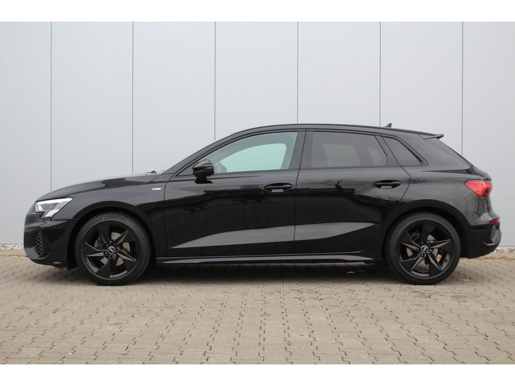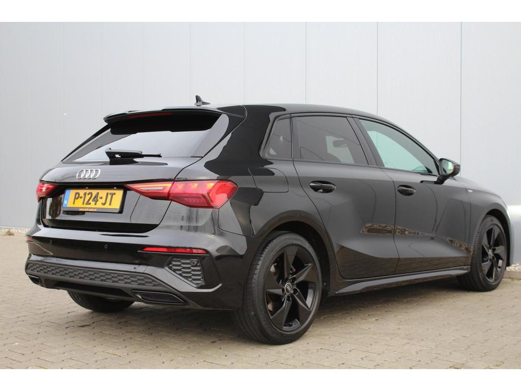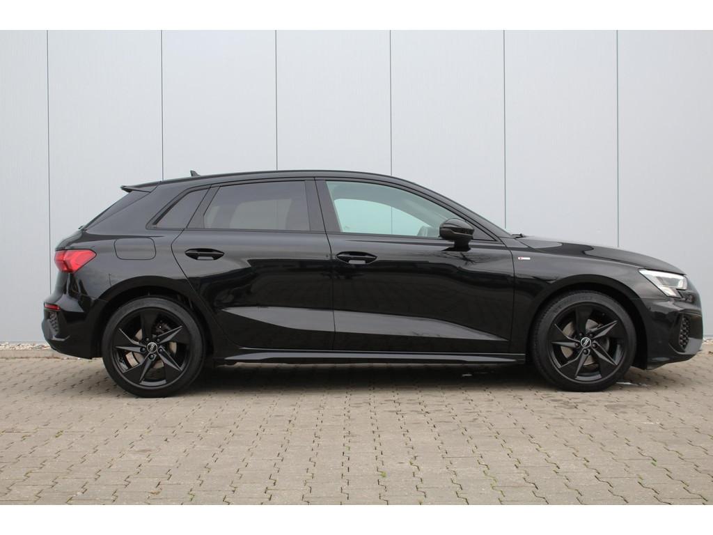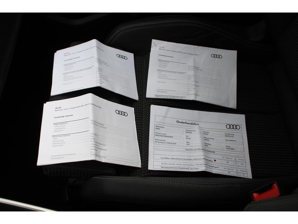 "Lichtmetalen velgen 5-spaaks 17""", Accident Avoidance System, Achterbank in delen neerklapbaar, Airbag(s) hoofd achter, Airbag(s) hoofd voor, Airbag(s) side voor, Airbag bestuurder, Airbag passagier, Aluminium delen exterieur, Aluminium interieur afwerking, Anti Blokkeer Systeem (ABS), Armsteun voor, Bandenspanningscontrolesysteem, Bestuurdersstoel in hoogte verstelbaar, Brake Assist System, Buitenspiegels elektrisch verstelbaar, Buitenspiegels in carrosseriekleur, Buitenspiegels verwarmbaar, Centrale deurvergrendeling met afstandsbediening, Connected services, Cruise control, DAB-ontvanger, Dakspoiler, Dimlichten automatisch, Electronic Brake Distribution (EBD), Electronic Stability Program (ESP), Electronic climate controle, Extra getint glas, Keyless start, Koplampen adaptief, Koplampreiniging, LED-lichtpakket, LED achterlichten, LED dagrijverlichting, Lederen bekleding, Lederen stuurwiel, Matrix LED koplampen, Multimedia-voorbereiding, Navigatie full map, Parkeersensor achter, Passagiersstoel in hoogte verstelbaar, Radio, Regensensor, Rijstrooksensor, Rijstrooksensor met correctie, Ruitensproeiers verwarmbaar, S Line exterieur, Sportonderstel, Sportstoelen, Sportstuur, Start/stop systeem, Startblokkering, Stof/kunstlederen bekleding, Stuurbekrachtiging, Stuurwiel multifunctioneel, Telefoonintegratie premium, Tractie Controle Systeem (TCS), Trekhaak met afneembare kogel, Uitwijk assistent, Verkeersbord detectie, Volledig digitaal instrumentenpaneel, Warmtewerende voorruit, WiFi voorbereiding, Wis-/was installatie voor koplampen