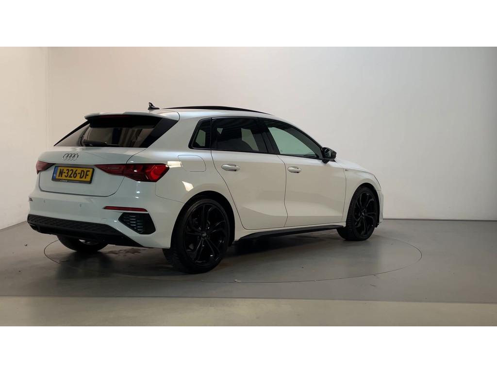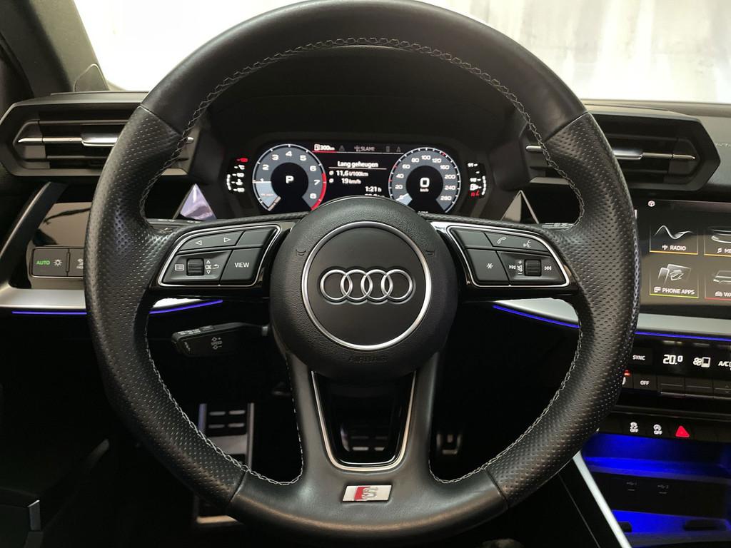 "Lichtmetalen velgen 19""", Accident Avoidance System, Achterbank in delen neerklapbaar, Airbag(s) hoofd achter, Airbag(s) hoofd voor, Airbag(s) side voor, Airbag bestuurder, Airbag passagier, Aluminium delen exterieur, Aluminium interieur afwerking, Android Auto, Anti Blokkeer Systeem (ABS), AppConnect, Apple Carplay, Armsteun voor, Bandenspanningscontrolesysteem, Bestuurdersstoel in hoogte verstelbaar, Brake Assist System, Buitenspiegels elektrisch verstelbaar, Buitenspiegels in carrosseriekleur, Buitenspiegels verwarmbaar, Centrale deurvergrendeling met afstandsbediening, Connected services, Cruise control, DAB-ontvanger, Dakspoiler, Dimlichten automatisch, Electronic Brake Distribution (EBD), Electronic Stability Program (ESP), Electronic climate controle, Elektrisch glazen panorama-dak, Extra getint glas, Koplampen adaptief, LED achterlichten, LED dagrijverlichting, Lederen stuurwiel, Multimedia-voorbereiding, Navigatie full map, Parkeersensor achter, Passagiersstoel in hoogte verstelbaar, Radio, Regensensor, Rijstrooksensor, Ruitensproeiers verwarmbaar, S Line exterieur, Sfeerverlichting, Sportonderstel, Sportstoelen, Sportstuur, Start/stop systeem, Startblokkering, Stof/kunstlederen bekleding, Stuurbekrachtiging, Stuurwiel multifunctioneel, Telefoonintegratie premium, Tractie Controle Systeem (TCS), Uitwijk assistent, Verkeersbord detectie, Verwarmde voorstoelen, Volledig digitaal instrumentenpaneel, Warmtewerende voorruit