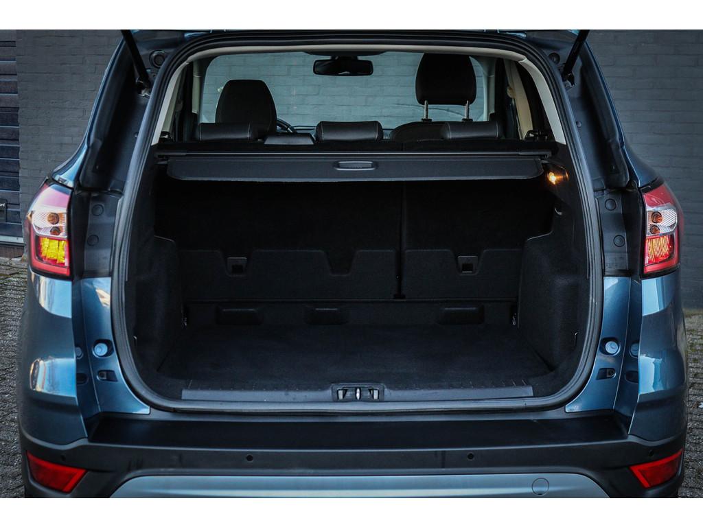 Achterbank in 2 delen (60/40) neerklapbaar en verschuifbaar in lengte richting (BWGAD), Achterbank in delen neerklapbaar, Airbag(s) hoofd achter, Airbag(s) hoofd voor, Airbag(s) knie, Airbag(s) side voor, Airbag bestuurder, Airbag passagier, Airbags: Voor bestuurder en voorste passagier, zijairbags voorstoelen (CPMAB), Alarm klasse 1(startblokkering), Anti Blokkeer Systeem, Apple Carplay/Android Auto, Armsteun achter, Automatisch dimmende binnenspiegel (BSBAF), Automatisch inschakelende dimlichten (JEDAC), Bagagedek, Bandenspanningscontrolesysteem, Bandenspanningscontrole systeem (D19AG), Bestuurdersstoel in hoogte verstelbaar, Binnenspiegel automatisch dimmend, Bluetooth, Boordcomputer, Brake Assist System, Buitenspiegels elektrisch inklapbaar, Buitenspiegels elektrisch verstel- en verwarmbaar, Cruise Control incl. Adjustable Speed Limiting Device (ASLD) (GTDAJ), Cruise control, Dimlichten automatisch, Elektrische parkeerrem en Hill Start Assist (FAJAC), Elektrische ramen voor en achter, Elektrisch verstelbare, verwarmbare en inklapbare buitenspiegels met instapverlichting (BSHCZ), Elektronisch Stabiliteits Programma, Elektronische remkrachtverdeling, FordKeyless Entry op de voorportieren (incl. motion sensor in de sleutel) (CBGAL), Hill hold functie, In hoogte verstelbare bestuurdersstoel inclusief lendensteunverstelling (BYPAL), In hoogte verstelbare passagiersstoel (BYQAL), Keyless entry, Knie-airbag voor bestuurder (CP8AB), LED dagrijverlichting, LED dagrijverlichting (JBCAB), Lederen/stof bekleding, Lederen versnellingspook, Lichtmetalen velgen 17", Metaalkleur, Middenarmsteun achter met bekerhouders (BWFAE), Mistlampen voor (JBKAB), Multimedia-voorbereiding, Navigatiesysteem full map, Navigatiesysteem met 8inch touchscreen, SYNC 3 Bluetooth®/Voice Control, DAB+ (ICFAH), Parkeersensor achter, Passagiersstoel in hoogte verstelbaar, Radio-cd/mp3 speler, Regensensor, Regensensor (CFFAN), Sportstoelen, Sportstoelen voor (11UZH), Spraakbediening, Start/stop systeem, Stuurbekrachtiging snelheidsafhankelijk, Stuur verstelbaar, Trekhaak, Uitschakelbare passagiersairbag t.b.v. kinderzitje (CPQAB), electronic climate control, lendesteun(en) verstelbaar, mistlampen voor, stuur leder