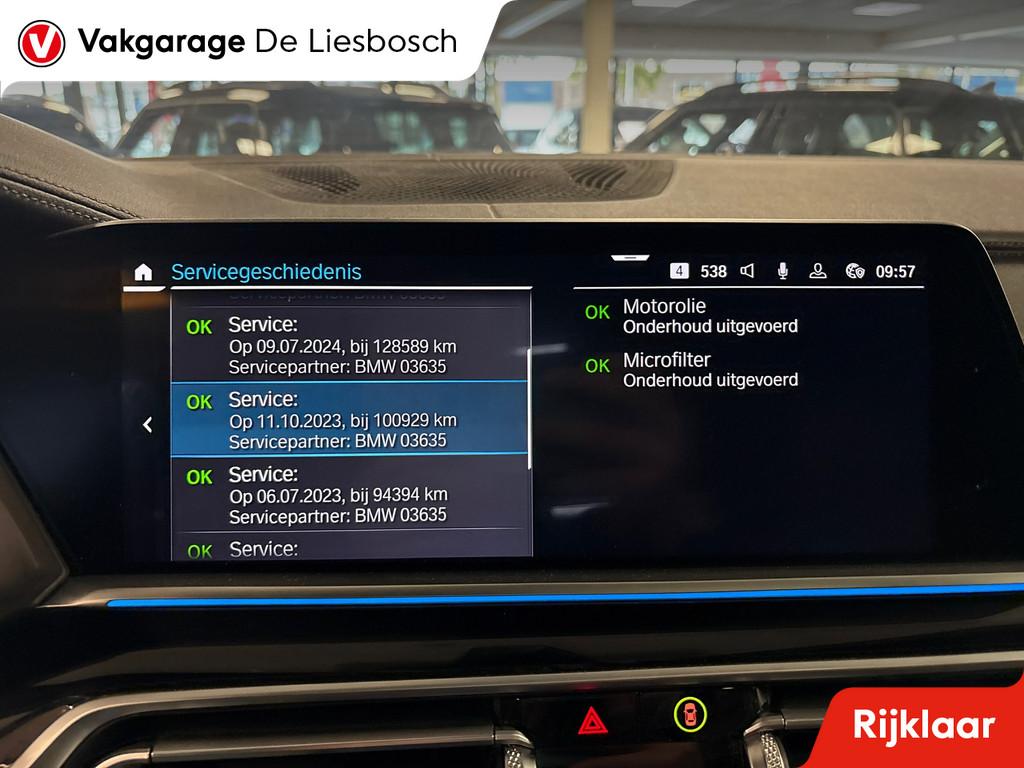 "Lichtmetalen velgen 19""", "Lichtmetalen velgen 20""", Accident Avoidance System, Achterbank in delen neerklapbaar, Achteropkomend verkeer waarschuwing, Achterruit apart te openen, Achteruitrij assistent, Achteruitrijcamera, Adaptief Demping Systeem (ADS), Afdaal assistent, Airbag(s) hoofd achter, Airbag(s) hoofd voor, Airbag(s) knie, Airbag(s) side voor, Airbag bestuurder, Airbag passagier, Airco automatisch, Alarm klasse 3, Aluminium delen exterieur, Aluminium interieur afwerking, Anti Blokkeer Systeem (ABS), Armsteun achter, Armsteun voor, Audio Media Pack, Audio installatie, Autotelefoonvoorbereiding met Bluetooth, Bandenspanningscontrolesysteem, Binnenspiegel automatisch dimmend, Boordcomputer, Bots herkenning en activatie, Bots waarschuwing systeem, Buitenspiegel(s) automatisch dimmend, Buitenspiegels elektrisch inklapbaar, Buitenspiegels elektrisch verstelbaar, Buitenspiegels verwarmbaar, Centrale deurvergrendeling met afstandsbediening, CoPilot Pack, Comfort Access pakket, Comfortstoel(en), Connected services, Cruise control, Cruise control adaptief met Stop&Go, DAB-ontvanger, Dakrails, Dimlichten automatisch, Dodehoek detector, Draadloze telefoonlader, Driving Assistant, Electronic Stability Program (ESP), Elektrisch bedienbare achterklep, Elektrisch bedienbare achterklep met sensorsturing, Elektrisch glazen panorama-dak, Elektrisch verstelbare bestuurdersstoel met geheugen, Elektrisch verstelbare stoel(en) met geheugen, Elektrisch verstelbare stuurkolom, Extra getint glas, Grootlicht-assistent, Harman / Kardon, Head-up display, Hill hold-functie, Keyless entry, Keyless start, Koplampen adaptief, Kruisend verkeer detectie, LED achterlichten, LED koplampen, LED mistlampen, Lederen bekleding, Lederen stuurwiel, Lendesteunen (verstelbaar), Luchtvering, M Aerodynamica, M Sportpakket, Multimedia-voorbereiding, Navigatie-systeem full map + hard disk, Oplaadmogelijkheid, Panorama dak, Parkeer-assistent, Parkeersensor achter, Parkeersensor voor, Radio, Regensensor, Rijstrooksensor, Rijstrooksensor met correctie, Rondomzicht camera, Ruitensproeiers verwarmbaar, Safety-pack, Schakelmogelijkheid aan stuurwiel, Sportstoelen, Sportstuur, Spraakbediening, Start/stop systeem, Stuurbekrachtiging snelheidsafhankelijk, Stuurhulp, Stuur verstelbaar, Stuurwiel multifunctioneel, Telefoonintegratie premium, Tractie Controle Systeem (TCS), Uitwijk assistent, Verkeersbord detectie, Vermoeidheids herkenning, Verwarmde voorstoelen, Volledig digitaal instrumentenpaneel, WiFi voorbereiding, apple CarPlay, panoramadak, zwarte hemel