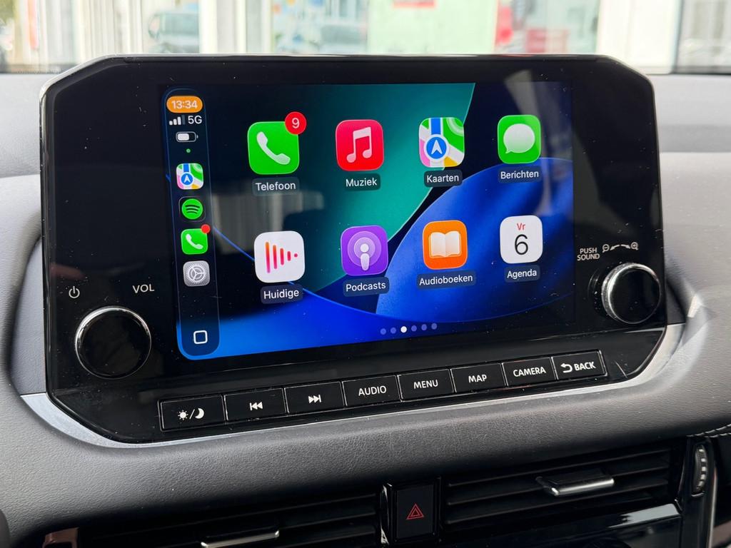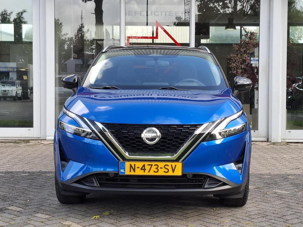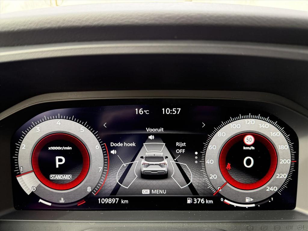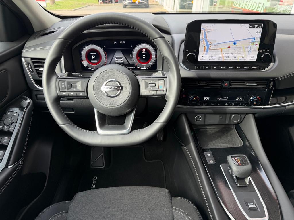 2x USB laadpoorten achter (1x type A, 1x type C), 2x USB laadpoorten voor, 3-punts veiligheidsgordels voor en achter, 12,3'' TFT digitaal instrumentenpaneel, 12V aansluitingen voor en in de bagageruimte, 18'' lichtmetalen velgen, A-IVC CRM toepassingen, over-the-air (OTA) updates, A-IVC Navigatie services, A-IVC Remote Control diensten en meldingen (3 jaar gratis), A-IVI NissanConnect Navigatiesysteem (9'' TFT touchscreen), ABS (Anti-blokkeersysteem), Achterbankleuning in delen neerklapbaar (60/40), Achteruitrijcamera met dynamische afstandsmarkering, Adaptive Front Lighting System (AFS), All season banden, Android Auto, Apple Car Play, Apple Carplay® & Android Auto® met kabel, Around View Monitor (AVM), Audiosysteem met Apple Carplay® & Android Auto®, USB-aansluiting, stuurwielbediening, 6 luidsprekers, Auto Speed Control Device (ASCD), Auto Speed Limit (ASL), Automatisch dimmende binnenspiegel, Automatisch in- / uitschakelende koplampen, Back-up Collission intervention (BCI), Bandenreparatieset, Bandenspanningscontrolesysteem (TPMS), Bekerhouder achter (2x), Bekerhouder voor (2x), Blind Junction View (BJV), Blind Spot Warning & Intervention (BSW + BSI), Bluetooth® (telefoon en audio), Buitenspiegelbehuizing en deurgrepen in carrosseriekleur, Buitenspiegels elektrisch inklapbaar, Buitenspiegels elektrisch verstelbaar en verwarmbaar, Centrale deurvergrendeling met afstandsbediening, Chromen raamomlijsting, Chromen sierstrip achterbumper, Chromen strip achterklep, Cross Traffic Alert (CTA), Dak in contrastkleur (2 Tone), Dakrails, Digitale radio-ontvangst (DAB+), Draadloos Apple Carplay®, Draadloze smartphone oplader (15w), Drive modus functie (3 modi), Driver Attention Alert (DAA), EBD (Elektronische Remkrachtverdeler), ESP (Electronic Stability Program), Elektrische lendensteunverstelling bestuurdersstoel (2-way), Elektronische handrem, Elektronische stuurbekrachtiging, Emergency Stop Signal (Autohazard), Extra getint glas (achterste zijruiten en achterruit), Flexibele bagageruimte indeling (2 scheidingsplanken), Frontal Collision Warning (FCW), Gescheiden automatische airconditioning (2 zones), Gordelspanners en melding voor veiligheidsgordels, Haaienvin-antenne, Haken in de bagageruimte (4 op de bodem, 2 aan de zijkanten), Head-up display (10.8'' projectie), High Beam Assist (HBA), Hill Start Assist (HSA), Hill Start Assist + AutoHold functie, Hoedenplank, I-Key (starten met startknop en easy access), ISOFIX-bevestigingspunten achter (2x), In hoogte en diepte verstelbaar stuurwiel, In hoogte verstelbare bestuurdersstoel (manueel), In hoogte verstelbare passagiersstoel, Intelligent Cruise Control (ICC), Interieur ambianceverlichting (middenconsole), Interieurlijsten type A, LED achterlichten, LED achteruitrijlicht en knipperlicht achter, LED matrix koplampen met LED dagrijverlichting en geintegreerd knipperlicht, Lane Departure Warning & Prevention (LDW + LDP), Lane Side Support (LSS), Lichtsensor, Limited Slip Differential (LSD), Metallic lak, Middenarmsteun achter, Middenarmsteun vóór met opbergvak, Middenconsole en armsteunen in PVC, Moving Object Detection (MOD), NBAS (Nissan Brake Assist System), Panoramisch glazen dak met elektrisch bedienbare zonwering, Parkeersensoren voor- en achterzijde, Portiergrepen met ontgrendelknop (Easy Access), Predictive Forward Collision Warning (PFCW), Predictive Front Emergency Braking met voetgangers- en fietsersherkenning (P-FEB), ProPILOT, Regensensor, START/STOP-systeem, Schakelflippers achter stuurwiel, Stoffen stoelbekleding (zwart/grijs), Stuurwielbediening, Stuurwiel en versnellingspookknop met leder bekleed, Tankdeksel zonder dop, Traffic Sign Recognition (TSR), Vehicle Dynamic Control (VDC), Verlichting aan beide kanten in de bagageruimte, Volledig automatische ruiten voor en achter met i-Key link, Voor-, zij- en gordijnairbags (uitschakelbare passagiersairbag), Wi-Fi hotspot (betaalde dienst), Zachte kniesteun (PVC), Zonnebrillenhouder in hemelbekleding, Zonnekleppen met make-up spiegel, verlicht, eCall