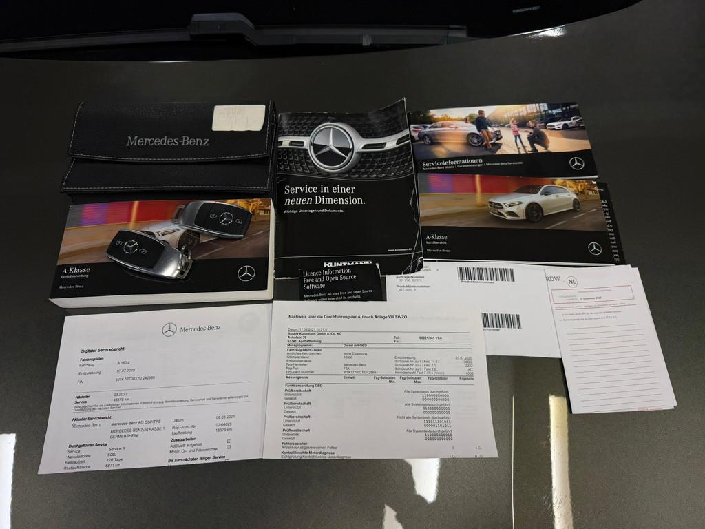 "Lichtmetalen velgen 17""", AMG-styling, Accident Avoidance System, Achterbank in delen neerklapbaar, Achteruitrij assistent, Achteruitrijcamera, Airbag(s) hoofd achter, Airbag(s) hoofd voor, Airbag(s) knie, Airbag(s) side voor, Airbag bestuurder, Airbag passagier, Aluminium interieur afwerking, Anti Blokkeer Systeem (ABS), Armsteun achter, Armsteun voor, Audio installatie, Bandenspanningscontrolesysteem, Binnenspiegel automatisch dimmend, Bots herkenning en activatie, Bots waarschuwing systeem, Brake Assist System, Buitenspiegel(s) automatisch dimmend, Buitenspiegels elektrisch inklapbaar, Business Plus-pakket, Centrale deurvergrendeling met afstandsbediening, Connected services, Cruise control, DAB-ontvanger, Dimlichten automatisch, Dodehoekdetectie met correctie, Electronic Stability Program (ESP), Electronic climate controle, Elektrisch glazen panorama-dak, Elektrisch verstelb. passagiersstoel met geheugen, Elektrisch verstelbare bestuurdersstoel met geheugen, Extra getint glas, Grootlicht-assistent, Keyless entry, Keyless start, Koplampen adaptief, Kruisend verkeer detectie, LED dagrijverlichting, LED koplampen, Lederen stuurwiel, Lendesteunen (verstelbaar), Matrix LED koplampen, Multimedia-voorbereiding, Navigatie-systeem full map + hard disk, Parkeer-assistent, Parkeersensor achter, Parkeersensor voor, Radio, Regensensor, Rijassistentiepakket, Rijstrooksensor met correctie, Sportstoelen, Sportstuur, Spraakbediening, Start/stop systeem, Startblokkering, Stof/kunstlederen bekleding, Stuurwiel multifunctioneel, Uitwijk assistent, Verkeersbord detectie, Verlaagde carrosserie, Vermoeidheids herkenning, Verwarmde voorstoelen, Volledig digitaal instrumentenpaneel, WiFi voorbereiding