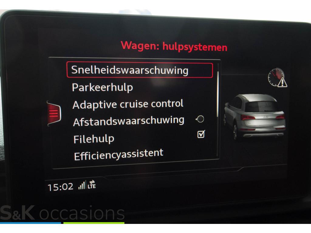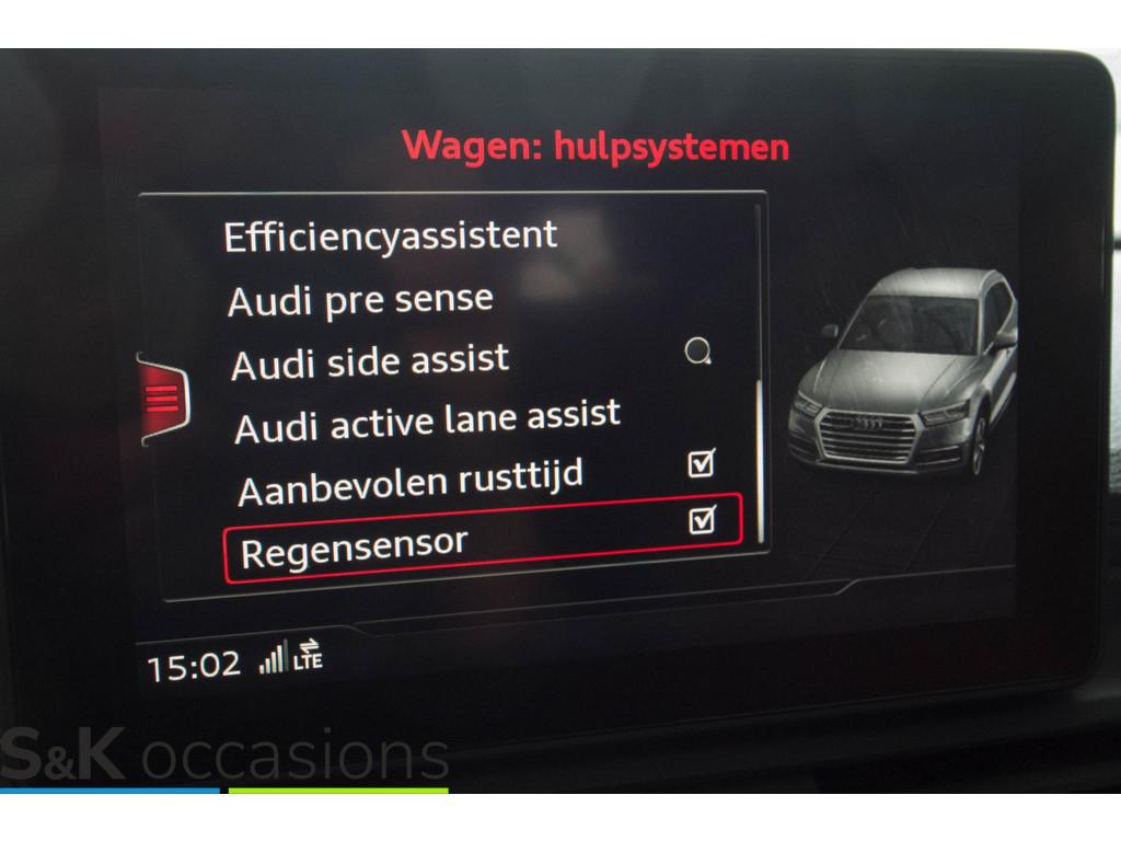 Achterbank plus (3NS), Achteruitrijcamera (KA2), Airconditioning, volautomatisch comfort 3-zone (9AQ), Anti Blokkeer Systeem, Assistentiepakket City (PCM), Assistentiepakket Tour (PCN), Audi Connect diensten (IT3), Audi phone box (9ZE), Audi side assist inclusief Audi pre sense rear (PCH), Autonomous Emergency Braking, Bluetooth telefoonvoorbereiding, Brake Assist System, Buitenspiegels, elektrisch inklapbaar en automatisch dimmend met geheugenfunctie (6XL), Comfort-sportstoelen vóór met klimaatregeling (PS8), Digitale radio ontvangst (QV3), Elektronisch Sper Differentieel, Elektronisch Stabiliteits Programma, Instructieboekjes aanwezig, LED achterlichten, LED dagrijverlichting, Leder "Milano" voor SQ5 (N5W), Lendesteunen vóór, elektrisch verstelbaar (7P1), MMI navigatie plus (PNQ), Mythos zwart metallic (0E0E), Onderhoudsboekje (digitaal), Parkeerhulp plus (7X2), Pre sense basic (7W1), Raamlijsten, aluminium (4ZB), Rookvrij, Scheidingsnet (3CX), Spiegelkappen in carroseriekleur (6FA), Sportstoelen voor (Q1D), Stoelen, vóór verwarmbaar (4A3), Stoelen vóór, elektrisch verstelbaar (3L5), Uitgebreide interieurvoorverwarming en -ventilatie (GA2), Verkeerstekenherkenning d.m.v. camera (QR9), Verwarmbare voorruit (4GR), Volledige dealeronderhoudshistorie beschikbaar, achterbank in delen neerklapbaar, achteropkomend verkeer waarschuwing, achteruitrij assistent, alarm klasse 1(startblokkering), armsteun achter, armsteun voor, bandenspanningscontrolesysteem, bestuurdersairbag, binnenspiegel automatisch dimmend, boordcomputer, bots waarschuwing systeem, buitensp.elektr.inklap en aut. dimmend, buitenspiegels elektr. met geheugen, centrale deurvergrendeling met afstandsbediening, cruise control adaptief met Stop&Go, dakrails, dimlichten automatisch, elektrisch bedienbare achterklep, elektrisch bedienbare achterklep met sensorsturing, elektrische ramen voor en achter, elektronische remkrachtverdeling, file assistent, grootlichtassistent (8G1), hoofd airbag(s) achter, hoofd airbag(s) voor, keyless entry, keyless start, lederen stuurwiel, lichtmetalen velgen 18", multimedia-voorbereiding, oplaadmogelijkheid, parkeersensor achter, parkeersensor voor, passagiersairbag, radio, regensensor, rijstrooksensor met correctie, ruitensproeiers verwarmbaar, schakelmogelijkheid aan stuurwiel, spraakbediening, start/stop systeem, stoel ventilatie voor, stuur verstelbaar, stuurwiel multifunctioneel, uitwijk assistent, vervolgbotsing preventie, warmtewerend glas, xenon koplampen, zij airbag(s) voor