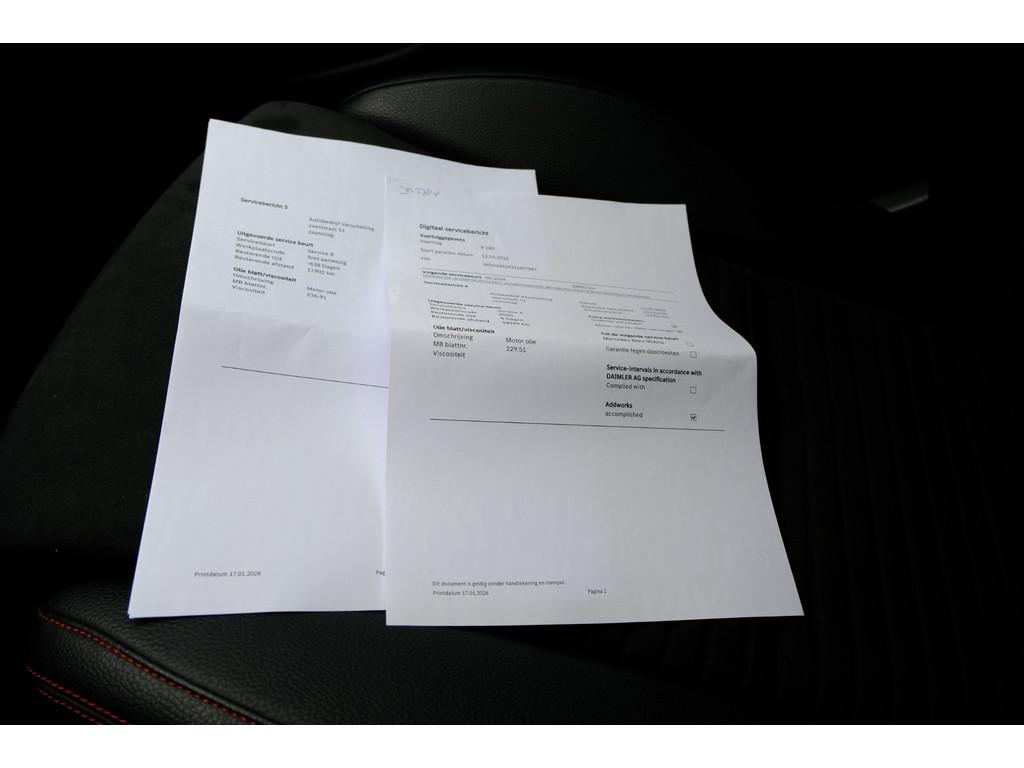 "Lichtmetalen velgen 18""", 1e eigenaar, AMG-styling, Accident Avoidance System, Achterbank in delen neerklapbaar, Achteropkomend verkeer waarschuwing, Airbag(s) hoofd achter, Airbag(s) hoofd voor, Airbag(s) knie, Airbag(s) side voor, Airbag bestuurder, Airbag passagier, Airco, Anti Blokkeer Systeem (ABS), Armsteun voor, Audio installatie, Autotelefoonvoorbereiding met Bluetooth, Bandenspanningscontrolesysteem, Bestuurdersstoel in hoogte verstelbaar, Boordcomputer, Brake Assist System, Buitenspiegels elektrisch verstelbaar, Buitenspiegels verwarmbaar, Buitentemperatuurmeter, Centrale deurvergrendeling met afstandsbediening, Connected services, Cruise control, Dimlichten automatisch, Dodehoek detectie (Blis), Electronic Stability Program (ESP), Elektrische ramen achter, Elektrische ramen voor, Extra getint glas, Hill hold-functie, LED achterlichten, LED dagrijverlichting, LED koplampen, Leder/alcantara bekl., Lederen stuurwiel, Multimedia-voorbereiding, Nationale Auto Pas (NAP), Navigatie full map, Onderhoudsboekje aanwezig, Panoramadak, Parkeer-assistent, Parkeersensor achter, Parkeersensor voor, Passagiersstoel in hoogte verstelbaar, Regensensor, Sportstoelen, Sportstuur, Start/stop systeem, Startblokkering, Stuurbekrachtiging snelheidsafhankelijk, Stuur verstelbaar, Stuurwiel multifunctioneel, Tractie Controle Systeem (TCS), Vermoeidheids herkenning, Warmtewerend glas, achteruitrijcamera, electronic climate controle, elektrisch glazen schuif-/kanteldak, schakelmogelijkheid aan stuurwiel