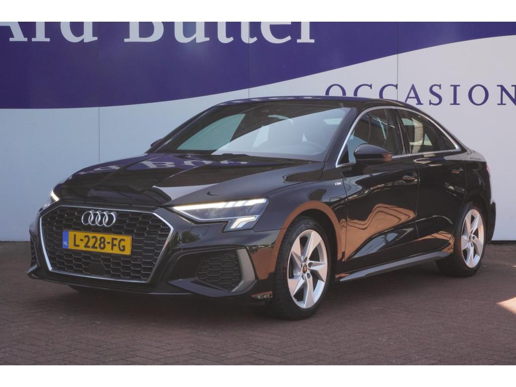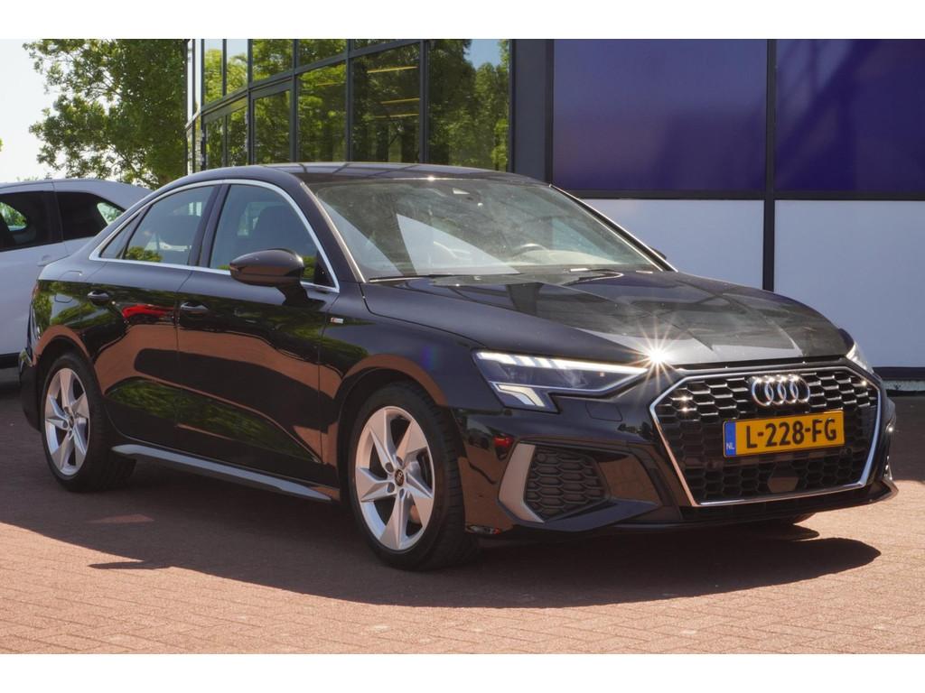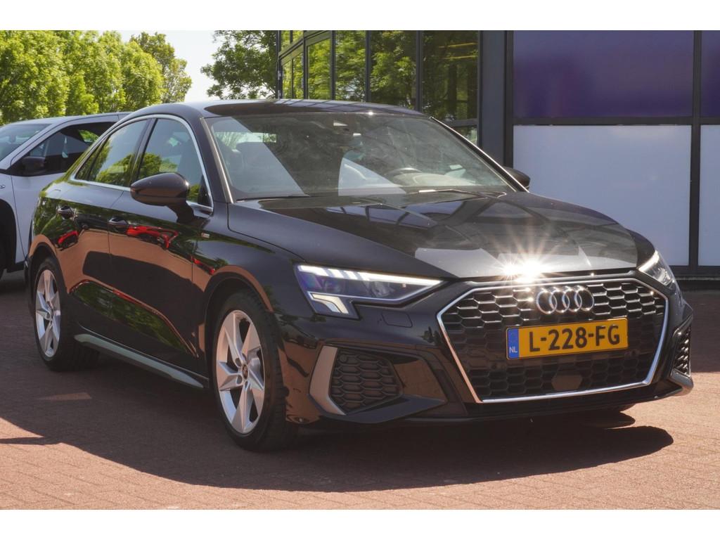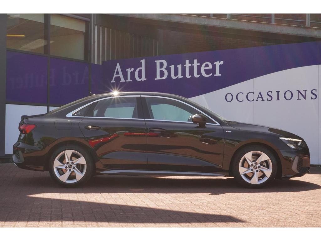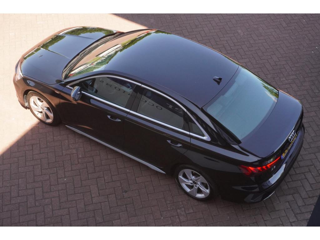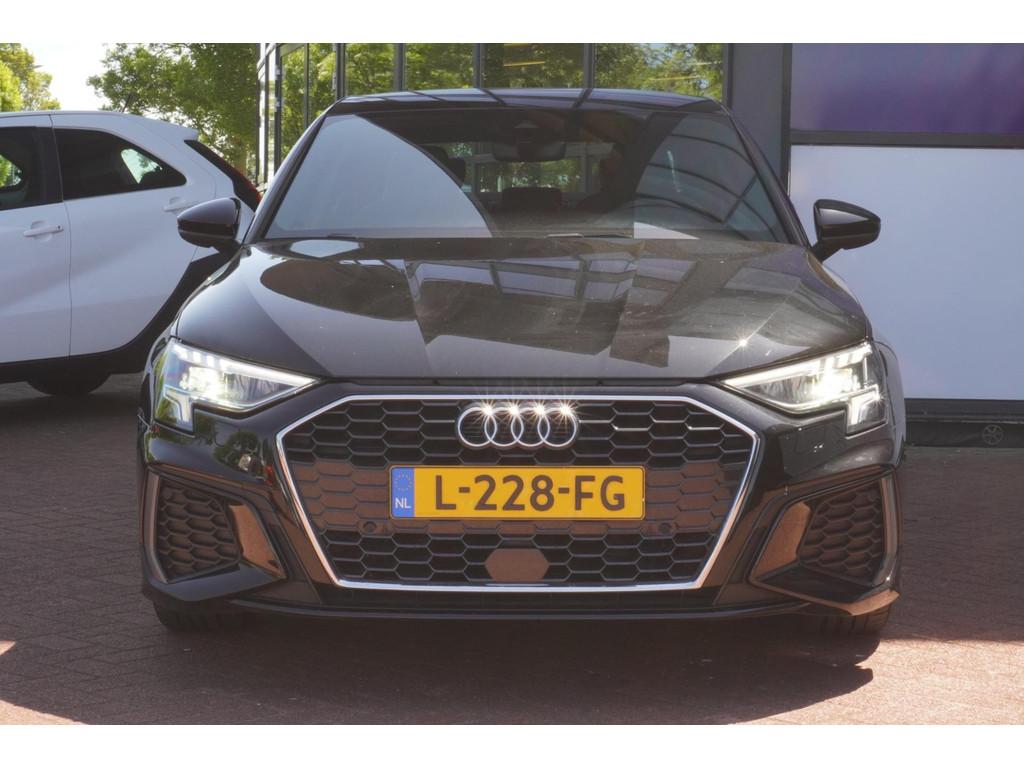 "Lichtmetalen velgen 5-spaaks 17""", Accident Avoidance System, Achterbank in delen neerklapbaar, Airbag(s) hoofd achter, Airbag(s) hoofd voor, Airbag(s) side voor, Airbag bestuurder, Airbag passagier, Aluminium delen exterieur, Aluminium interieur afwerking, Anti Blokkeer Systeem (ABS), Armsteun voor, Bandenspanningscontrolesysteem, Bestuurdersstoel in hoogte verstelbaar, Brake Assist System, Buitenspiegels elektrisch verstelbaar, Buitenspiegels in carrosseriekleur, Buitenspiegels verwarmbaar, Centrale deurvergrendeling met afstandsbediening, Connected services, Cruise control, Cruise control adaptief met Stop&Go, DAB-ontvanger, Dimlichten automatisch, Draadloze telefoonlader, Electronic Brake Distribution (EBD), Electronic Stability Program (ESP), Electronic climate controle, Kleur parelmoer, Koplampen adaptief, LED achterlichten, LED dagrijverlichting, Lederen stuurwiel, Multimedia-voorbereiding, Navigatie full map, Parkeersensor achter, Passagiersstoel in hoogte verstelbaar, Radio, Regensensor, Rijstrooksensor, Ruitensproeiers verwarmbaar, S Line exterieur, Schakelmogelijkheid aan stuurwiel, Sportonderstel, Sportstoelen, Sportstuur, Start/stop systeem, Startblokkering, Stof/kunstlederen bekleding, Stuurbekrachtiging, Stuurhulp, Stuurwiel multifunctioneel, Telefoonintegratie premium, Tractie Controle Systeem (TCS), Uitwijk assistent, Verkeersbord detectie, Volledig digitaal instrumentenpaneel, Warmtewerende voorruit, WiFi voorbereiding