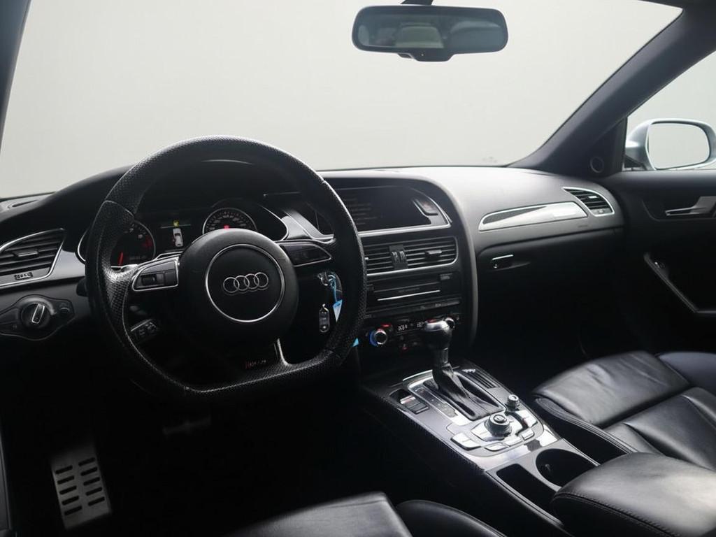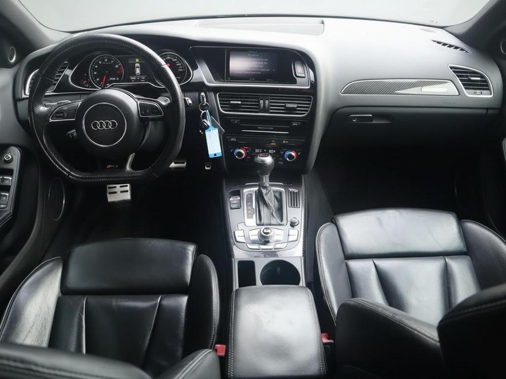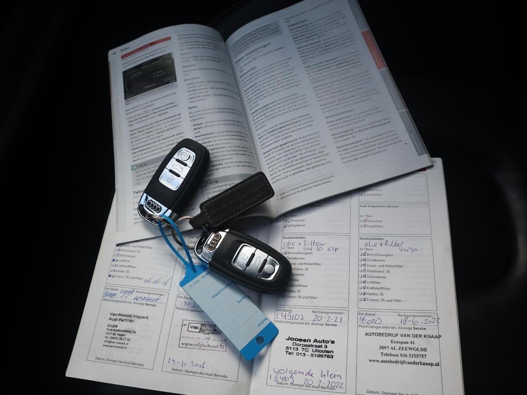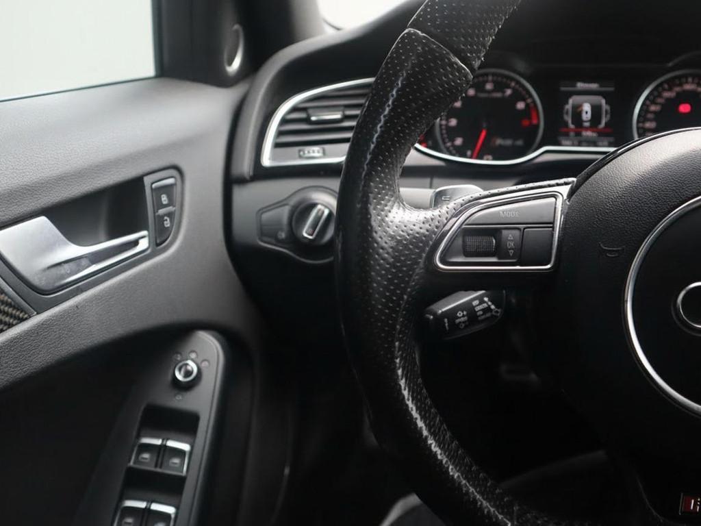Adaptive light (8Q5), Airconditioning, volautomatisch comfort 3-zone (9AQ), Anti Blokkeer Systeem, Anti doorSlip Regeling, Audi dynamic steering (1N8), Audi music interface (UF7), Bandenspanningcontrolesysteem (7K6), Bang & Olufsen soundsystem (9VK), Bekleding, leder "Fijnnappa" met bies in rotsgrijs (N5V), Binnenspiegel, automatisch dimmend (4L6), Buitenspiegels, elektrisch inklapbaar en automatisch dimmend (6XK), Dakreling, zwart (3S2), Elektronisch Stabiliteits Programma, Inleg, carbon Atlas (5MK), Lendensteunen vóór, elektrisch verstelbaar (7P1), MMI navigatie plus (PNQ), Middenarmsteun voor A4 (6E3), Parkeerhulp achter (7X1), Parkeerhulp plus (7X4), RDW-leges, S Line exterieur, Sportdifferentieel (GH2), Sportonderstel (1BE), Sportstoelen voor A4 (PS1), Stoelen vóór, elektrisch verstelbaar (PV1), Telefoonvoorbereiding basis (9ZX), Wegrijassistent (UH2), Xenon plus verlichting (PX1), Zij-airbags achter (4X4), achterbank neerklapbaar, airco (automatisch), alarm klasse 1(startblokkering), aluminium interieur afwerking, armsteun achter, bagage-scheidingsnet, bestuurdersairbag, boordcomputer, centrale deurvergrendeling met afstandsbediening, cruise control, dakspoiler, dimlichten automatisch, elektrische ramen voor en achter, elektronische remkrachtverdeling, koplampreiniging, lederen stuurwiel, lichtmetalen velgen 19", metaalkleur, mistlampen voor, passagiersairbag, radio CD speler, regensensor, ruitensproeiers verwarmbaar, start/stop systeem, stuurwiel multifunctioneel, vermoeidheids herkenning, zij airbag(s) voor