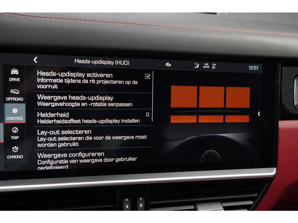 4-zone automatische airconditioning (9AE), 22 inch Sport Classic wiel diepzwart metallic gespoten (49B), Adaptieve cruise control inclusief noodgevalassistent (PW5), Adaptieve luchtvering met niveauregeling en hoogteverstelling inclusief Porsche Active Suspension Management (PASM) (1BK), Adaptieve sportstoelen (18-voudig elektrisch verstelbaar) met geïntegreerde hoofdsteunen en Memory Pakket (Q1J), Anti Blokkeer Systeem, Anti doorSlip Regeling, Apple Carplay/Android Auto, Autonomous Emergency Braking, BOSE Surround-Sound-System (9VL), Brake Assist System, Comfortstoelen vóór (14-voudig elektrisch verstelbaar) met Memory Pakket (Q2J), Comforttoegang (4F2), Elektronisch Stabiliteits Programma, Head-Up Display (KS1), Interieurpakket carbon (5MH), LED dagrijverlichting, Led-matrix-koplampen inclusief Porsche Dynamic Light System Plus (PDLS Plus) (8IU), Leder bi-color zwart-bordeauxrood (CB), ParkAssistent inclusief Surround View (KA6), ParkAssistent voor en achter inclusief achteruitrijcamera (KA2), Porsche Entry & Drive (4F2), Privacybeglazing (VW1), Rijstrookwisselhulp (7Y1), Soft-Close portieren (GZ2), Sportstoelen, elektrisch verstelbaar (Q2J), Stoelverwarming voorin (4A3), Stuurbekrachtiging Plus (QZ7), WiFi voorbereiding, Zelfdimmende binnen- en buitenspiegels (4L6), Zelfdimmende binnen- en buitenspiegels met geintegreerde regensensor (4L6), aanhanger assistent, achterbank in delen neerklapbaar, afdaal assistent, alarm klasse 1(startblokkering), aluminium delen exterieur, armsteun achter, bandenspanningscontrolesysteem, bestuurdersairbag, bots waarschuwing systeem, buitenspiegels elektrisch inklapbaar, buitenspiegels elektrisch verstel- en verwarmbaar, centrale deurvergrendeling met afstandsbediening, comfortstoel(en), connected services, dakspoiler, electronic climate controle, elektrisch bedienbare achterklep, elektrisch verstelbare voorstoel(en), hill hold functie, hoofd airbag(s) achter, hoofd airbag(s) voor, knie airbag(s), multimedia-voorbereiding, navigatiesysteem full map + hard disk, parkeersensor voor en achter, passagiersairbag, regensensor, rondomzicht camera, schakelmogelijkheid aan stuurwiel, sportstuur, spraakbediening, start/stop systeem, stuurbekrachtiging, stuurwiel multifunctioneel, vervolgbotsing preventie, voorstoelen in hoogte verstelbaar, warmtewerend glas, zij airbag(s) voor