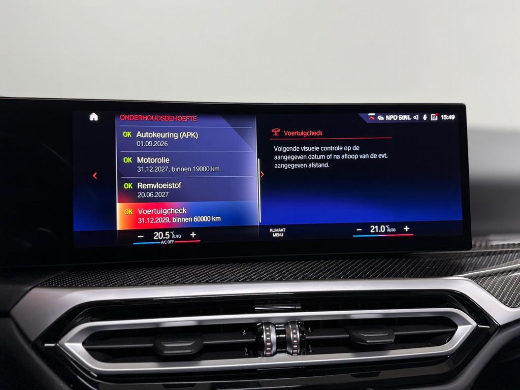Accident Avoidance System, Achterbank in delen neerklapbaar, Achteropkomend verkeer waarschuwing, Achterspoiler, Achteruitrij assistent, Achteruitrijcamera, Achteruitrijcamera met 360° Surround View, Aerodynamica-pakket M-Technic, Afdekhoes, Airbag(s) hoofd achter, Airbag(s) hoofd voor, Airbag(s) side voor, Airbag bestuurder, Airbag passagier, Airco separaat achter, Android Auto, Anti Blokkeer Systeem (ABS), Apple CarPlay, Armsteun achter, Armsteun voor, Audio installatie, Audio installatie premium, Audiosysteem Premium Sound by Harman- Kardon K504 • Subwoofer, Automatische snelheidsbegrenzing, Autonome parkeerfunctie, Autotelefoonvoorbereiding met Bluetooth, BMW Curved Display, BMW Individueel-lak Tansaniet-Blauw, Bagage-scheidingsnet, Bandenspanningscontrolesysteem, Beglazing achter verduisterd, Binnen/buitenspiegel automatisch dimmend, Boordcomputer, Bots herkenning en activatie, Bots waarschuwing systeem, Brake Assist System, Buitenspiegels elektrisch inklapbaar, Buitenspiegels elektrisch verstelbaar, Buitenspiegels verwarmbaar, Centrale deurvergrendeling met afstandsbediening, Comfort-pakket Stoelverwarming voor Stoelen voor electr. verstelbaar (met Memory) Lendensteun Stoel voor links en rechts, electr. verstelbaar Comfort-toegang (Open- en sluitsysteem), Comfort Pack, Connected services, Cruise control, Cruise control adaptief met Stop&Go, DAB+, DAB-ontvanger, Dashboard leerovertrek, Dimlichten automatisch, Dodehoek detector, Draadloze telefoonlader, Driving Assistant, Electronic Stability Program (ESP), Electronic climate controle, Elektrisch bedienbare achterklep, Elektrische ramen achter, Elektrische ramen voor, Elektrisch glazen panorama-dak, Elektrisch verstelbare voorstoel(en), Entertainment Pack, Extra getint glas, Full option, Geluidsisolerend glas, Geluidwerend glas, Grootlicht-assistent, H&R Sportonderstel / verlaagd, Head-up display, Hill hold-functie, Innovation Pack, Interieurlijsten Carbon, Keyless entry, Keyless start, Koplampen adaptief, LED achterlichten, LED koplampen, Lederen/alcantara bekleding, Lederen interieurdelen, Lederen stuurwiel, Lendesteunen (verstelbaar), Lichtmetalen velgen 20", Luxe lederen bekleding, M-Technic Adaptive ophanging, M-Technic Sportstoelen Leer Vernasca met Contraststiksels, M-Technic remmen, M Aerodynamica, M High Gloss Shadow line, M Sport Pro Pakket, Metallic lak, Multimedia-voorbereiding, Navigatiesysteem, Panoramadak, Parkeer-assistent, Parkeerassistent-pakket Plus, Parkeersensor achter, Parkeersensor voor, Premium kleur, Regensensor, Rijstrooksensor, Rondomzicht camera, Ruitensproeiers verwarmbaar, Schakelmogelijkheid aan stuurwiel, Schuif/open dak, Shadow Line, Sperdifferentieel, Sport-uitlaatsysteem, Eindpijpen zwart, Sportonderstel, Sportonderstel Eibach, Sportpakket M-Technic, Sportstoelen, Sportstuur, Spraakbediening, Start/stop systeem, Startblokkering, Stuurbekrachtiging snelheidsafhankelijk, Stuurhulp, Stuur verstelbaar, Stuurwiel multifunctioneel, Stuurwiel verwarmd, Telefoonintegratie premium, Tractie Controle Systeem (TCS), Travel Pack, Variabele stuuroverbrenging, Verkeersbord detectie, Vermoeidheids herkenning, Volledig digitaal instrumentenpaneel, Voorstoelen verwarmd, Winterpakket incl stuur verwarming, Zonnescherm zijruiten
