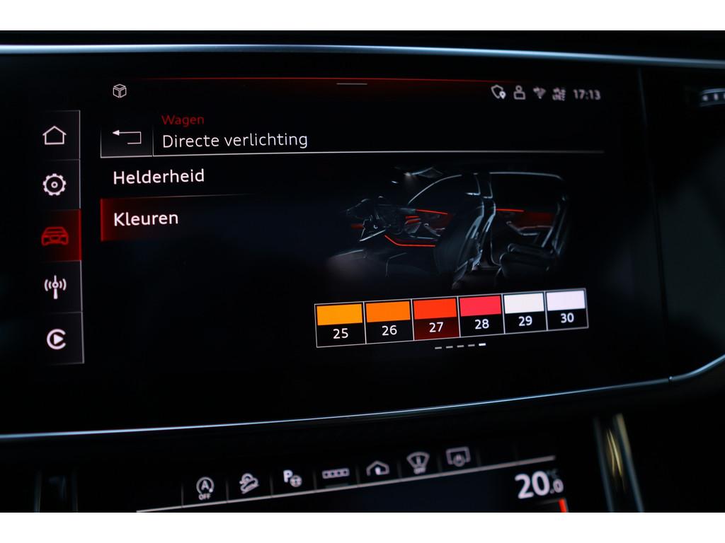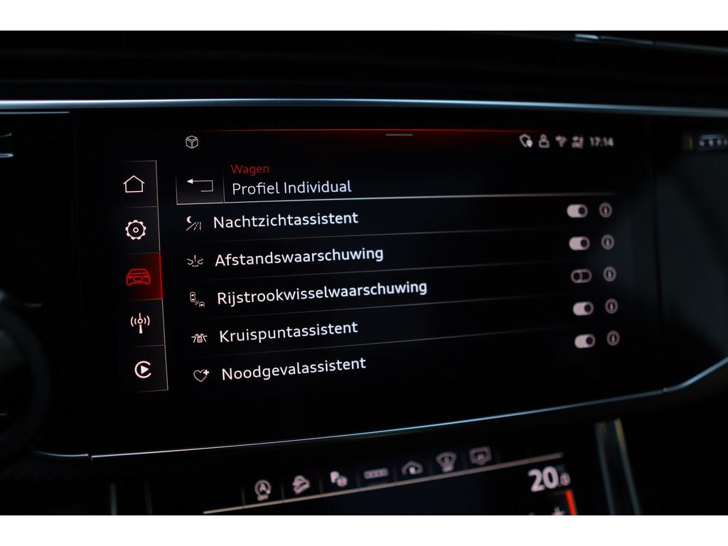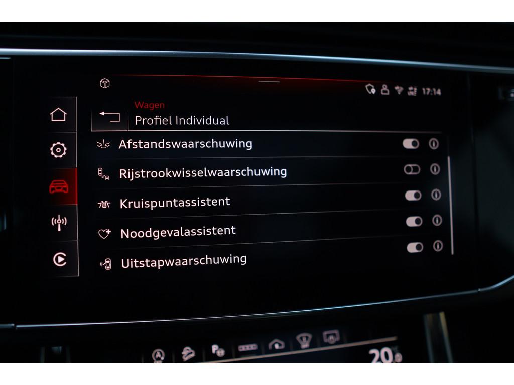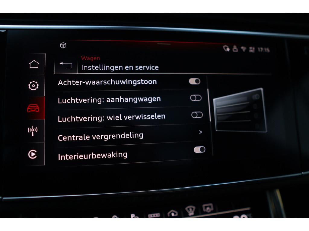 4-wiel besturing, 360 graden camera, Aanhanger-assistent, Accident Avoidance System, Achterbank verstelbaar, Achterbank verwarmd, Achterspoiler, Achteruitrijcamera, Active Cornering Enhancement (ACE), Adaptief Demping Systeem (ADS), Airbag(s) hoofd achter, Airbag(s) hoofd voor, Airbag(s) side voor, Airbag bestuurder, Airbag passagier, Airco separaat achter, Alarm klasse 3, Alarm klasse 5, Alcantara interieurdelen, Aluminium interieur afwerking, Android/Apple Carplay, Anti Blokkeer Systeem (ABS), Armsteun achter, Armsteun voor, Audio installatie high-end, Audio installatie premium, Automatische niveauregeling, Automatische snelheidsbegrenzing, Autotelefoonvoorbereiding met Bluetooth, Bagage-scheidingsnet, Bagagedek, Bandenspanningscontrolesysteem, Binnenspiegel automatisch dimmend, Bots herkenning en activatie, Bots waarschuwing systeem, Buitenspiegel(s) automatisch dimmend, Buitenspiegels elektrisch inklapbaar, Buitenspiegels elektrisch met geheugen, Buitenspiegels elektrisch verstelbaar, Buitenspiegels verwarmbaar, Carbonafwerking interieur, Connected services, Cruise control, Cruise control adaptief met Stop&Go, DAB-ontvanger, Dakrails, Dimlichten automatisch, Dodehoek detector, Draadloze telefoonlader, Electronic Stability Program (ESP), Electronic climate controle, Elektrisch bedienbare achterklep met sensorsturing, Elektrische ramen voor, Elektrisch glazen panorama-dak, Elektrisch verstelbare stoel(en) met geheugen, Elektrisch verstelbare stuurkolom, Extra getint glas, Gelimiteerd slipdifferentieel, Geluidwerend glas, Grootlicht-assistent, Head-up Display, Head-up display, Hill hold-functie, Hoofdsteunen actief, Interieur voorverwarmingsinstallatie, Keramische remschijven, Keyless entry, Keyless go, Keyless start, Koplampen adaptief, Koplampreiniging, LED achterlichten, LED dagrijverlichting, LED koplampen met laser, Lederen interieurdelen, Lederen stuurwiel, Luchtvering, Luxe lederen bekleding, Luxe lederen interieur, Metallic lak, Multimedia-voorbereiding, Nachtzicht-assistent, Navigatie full map, Onderstelpakket Advanced, Parkeersensor achter, Parkeersensor voor, RS-designpakket, Regensensor, Rijstrooksensor, S Line exterieur, Schakelmogelijkheid aan stuurwiel, Sluitbekrachtiging, Speciale kleur, Sportonderstel, Sportstuur, Start/stop systeem, Stoel ventilatie voor, Stoelverwarming, Stuurbekrachtiging, Stuurhulp, Stuur verstelbaar, Stuurwiel multifunctioneel, Stuurwiel verwarmd, Telefoonintegratie, Trekhaak-pakket, Trekhaak elektrisch uitklapbaar, Verkeersbord detectie, Verwarmde voorruit, Verwarmde voorstoelen, Volledig digitaal instrumentenpaneel, Voorspoiler, Voorstoel(en) met massagefunctie, Warmtewerend glas, WiFi voorbereiding