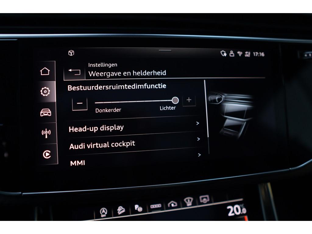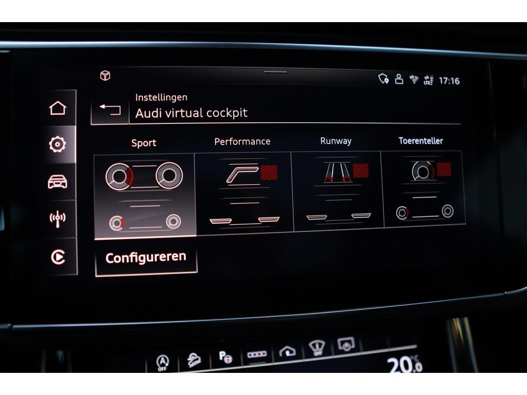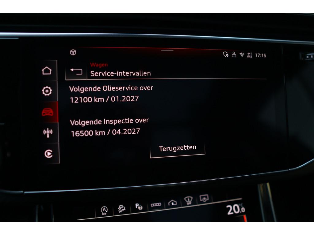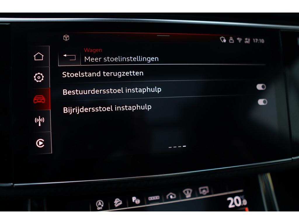 4-wiel besturing, 360 graden camera, Aanhanger-assistent, Accident Avoidance System, Achterbank verstelbaar, Achterbank verwarmd, Achterspoiler, Achteruitrijcamera, Active Cornering Enhancement (ACE), Adaptief Demping Systeem (ADS), Airbag(s) hoofd achter, Airbag(s) hoofd voor, Airbag(s) side voor, Airbag bestuurder, Airbag passagier, Airco separaat achter, Alarm klasse 3, Alarm klasse 5, Alcantara interieurdelen, Aluminium interieur afwerking, Android/Apple Carplay, Anti Blokkeer Systeem (ABS), Armsteun achter, Armsteun voor, Audio installatie high-end, Audio installatie premium, Automatische niveauregeling, Automatische snelheidsbegrenzing, Autotelefoonvoorbereiding met Bluetooth, Bagage-scheidingsnet, Bagagedek, Bandenspanningscontrolesysteem, Binnenspiegel automatisch dimmend, Bots herkenning en activatie, Bots waarschuwing systeem, Buitenspiegel(s) automatisch dimmend, Buitenspiegels elektrisch inklapbaar, Buitenspiegels elektrisch met geheugen, Buitenspiegels elektrisch verstelbaar, Buitenspiegels verwarmbaar, Carbonafwerking interieur, Connected services, Cruise control, Cruise control adaptief met Stop&Go, DAB-ontvanger, Dakrails, Dimlichten automatisch, Dodehoek detector, Draadloze telefoonlader, Electronic Stability Program (ESP), Electronic climate controle, Elektrisch bedienbare achterklep met sensorsturing, Elektrische ramen voor, Elektrisch glazen panorama-dak, Elektrisch verstelbare stoel(en) met geheugen, Elektrisch verstelbare stuurkolom, Extra getint glas, Gelimiteerd slipdifferentieel, Geluidwerend glas, Grootlicht-assistent, Head-up Display, Head-up display, Hill hold-functie, Hoofdsteunen actief, Interieur voorverwarmingsinstallatie, Keramische remschijven, Keyless entry, Keyless go, Keyless start, Koplampen adaptief, Koplampreiniging, LED achterlichten, LED dagrijverlichting, LED koplampen met laser, Lederen interieurdelen, Lederen stuurwiel, Luchtvering, Luxe lederen bekleding, Luxe lederen interieur, Metallic lak, Multimedia-voorbereiding, Nachtzicht-assistent, Navigatie full map, Onderstelpakket Advanced, Parkeersensor achter, Parkeersensor voor, RS-designpakket, Regensensor, Rijstrooksensor, S Line exterieur, Schakelmogelijkheid aan stuurwiel, Sluitbekrachtiging, Speciale kleur, Sportonderstel, Sportstuur, Start/stop systeem, Stoel ventilatie voor, Stoelverwarming, Stuurbekrachtiging, Stuurhulp, Stuur verstelbaar, Stuurwiel multifunctioneel, Stuurwiel verwarmd, Telefoonintegratie, Trekhaak-pakket, Trekhaak elektrisch uitklapbaar, Verkeersbord detectie, Verwarmde voorruit, Verwarmde voorstoelen, Volledig digitaal instrumentenpaneel, Voorspoiler, Voorstoel(en) met massagefunctie, Warmtewerend glas, WiFi voorbereiding