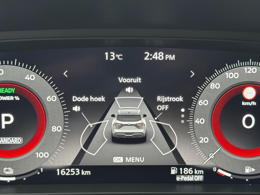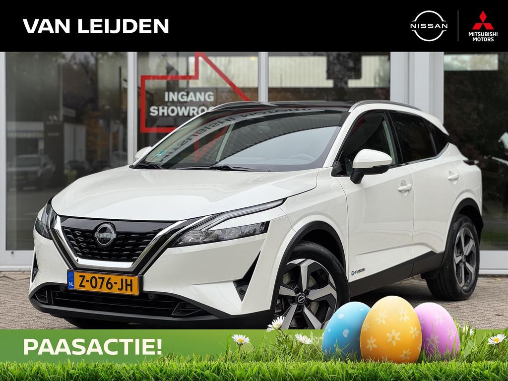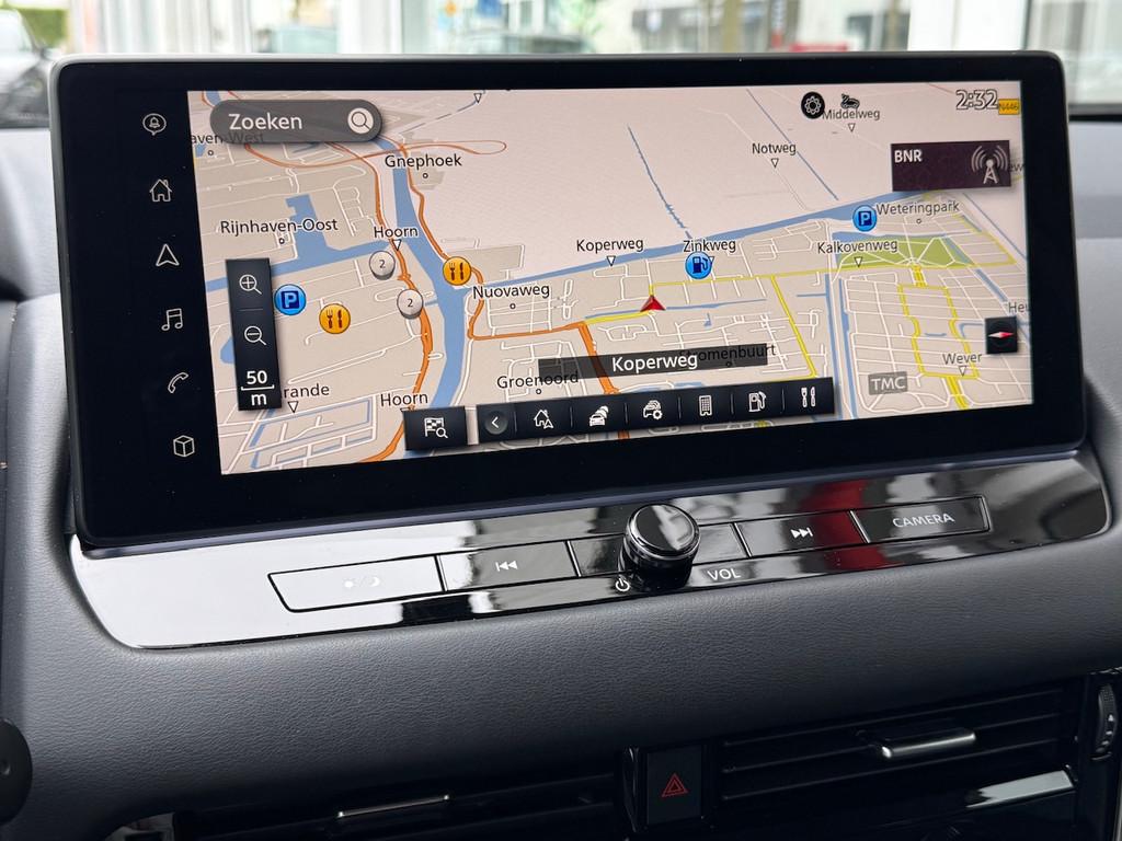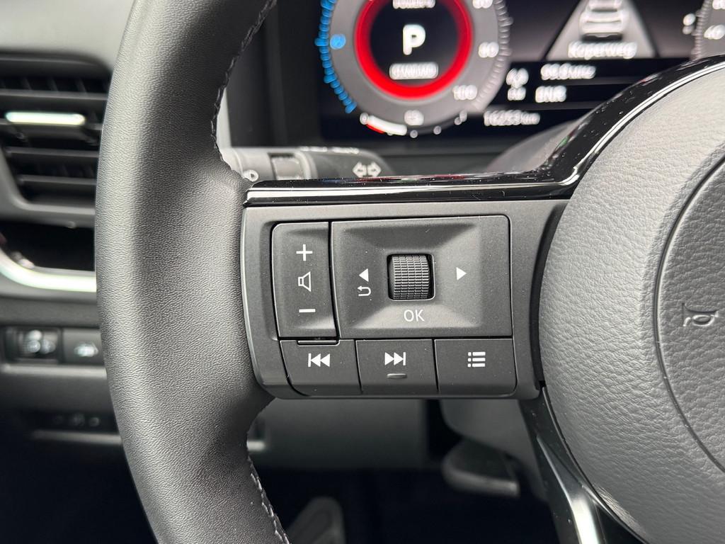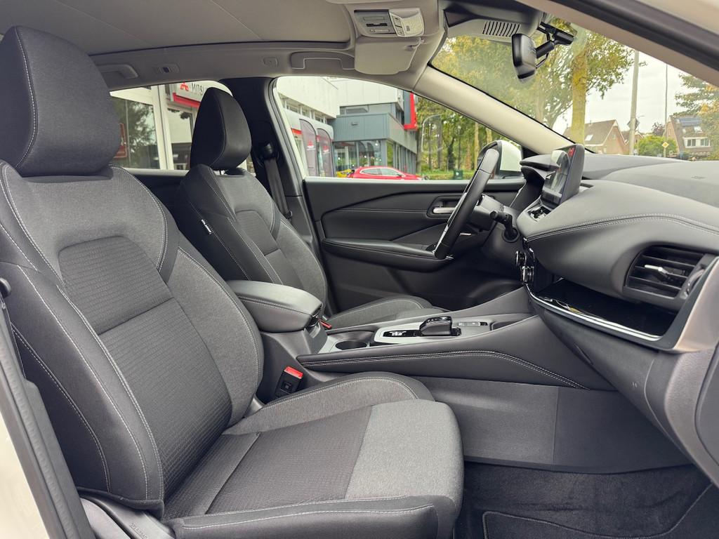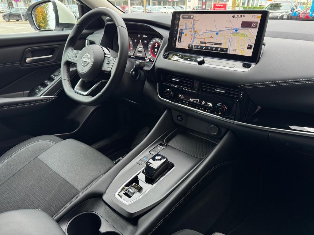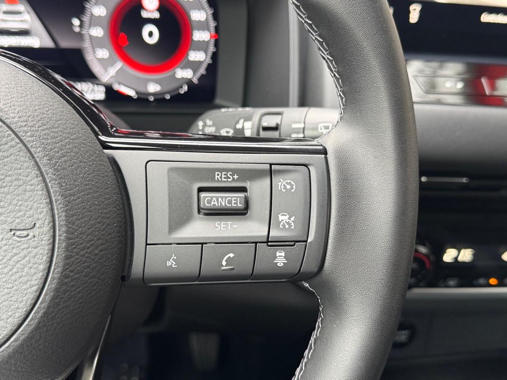 2x USB laadpoorten achter (1x type A, 1x type C), 2x USB laadpoorten voor, 3-punts veiligheidsgordels voor en achter, 9" NissanConnect Navigatie- en infotainmentsysteem, 12,3'' TFT digitaal instrumentenpaneel, 12V aansluitingen voor en in de bagageruimte, 18" Diamant-Cut lichtmetalen velgen, A-IVC Navigatie services, A-IVC Remote Control diensten en meldingen (3 jaar gratis), A-IVI NissanConnect Navigatiesysteem (9'' TFT touchscreen), ABS (Anti-blokkeersysteem), Achterbankleuning in delen neerklapbaar (60/40), Achteruitrijcamera met dynamische afstandsmarkering, Adaptive Front Lighting System (AFS), Alarmsysteem, Apple Carplay® & Android Auto® met kabel, Around View Monitor (AVM), Audiosysteem met Apple Carplay® & Android Auto®, USB-aansluiting, stuurwielbediening, 6 luidsprekers, Auto Speed Control Device (ASCD), Auto Speed Limit (ASL), Automatisch dimmende binnenspiegel, Automatisch in- / uitschakelende koplampen, Back-up Collission intervention (BCI), Bandenreparatieset, Bandenspanningscontrolesysteem (TPMS), Bekerhouder achter (2x), Bekerhouder voor (2x), Blind Junction View (BJV), Blind Spot Warning & Intervention (BSW + BSI), Bluetooth® (telefoon en audio), Breakdown call, Buitenspiegelbehuizing en deurgrepen in carrosseriekleur, Buitenspiegels elektrisch inklapbaar, Buitenspiegels elektrisch verstelbaar en verwarmbaar, Centrale deurvergrendeling met afstandsbediening, Chromen raamomlijsting, Chromen sierstrip achterbumper, Chromen strip achterklep, Cross Traffic Alert (CTA), Dakrailing, zilverkleurig, Dakspoiler achter, Dashboard en deurpanelen leder (zwart), Digitale radio-ontvangst (DAB+), Draadloos Apple Carplay®, Drive modus functie (3 modi), Driver Attention Alert (DAA), EBD (Elektronische Remkrachtverdeler), ESP (Electronic Stability Program), Elektrische lendensteunverstelling bestuurdersstoel (2-way), Elektronische handrem, Elektronische stuurbekrachtiging, Emergency Stop Signal (Autohazard), Extra getint glas (achterste zijruiten en achterruit), Flexibele bagageruimte indeling (2 scheidingsplanken), Frontal Collision Warning (FCW), Full LED koplampen met LED dagrijverlichting en halogeen knipperlicht, Gescheiden automatische airconditioning (2 zones), Gordelspanners en melding voor veiligheidsgordels, Haaienvin-antenne, Haken in de bagageruimte (4 op de bodem, 2 aan de zijkanten), High Beam Assist (HBA), Hill Start Assist (HSA), Hill Start Assist + AutoHold functie, Hoedenplank, ISOFIX-bevestigingspunten achter (2x), In hoogte en diepte verstelbaar stuurwiel, In hoogte verstelbare bestuurdersstoel (manueel), In hoogte verstelbare passagiersstoel, Intelligent Cruise Control (ICC), Interieur ambianceverlichting (middenconsole), Interieurlijsten metaallook, LED achterlichten, Lane Departure Warning & Prevention (LDW + LDP), Lane Side Support (LSS), Lichtsensor, Limited Slip Differential (LSD), Matzilver decoratiepaneel achterbumper, Metallic lak, Middenarmsteun achter met 2 bekerhouders, Middenarmsteun vóór met opbergvak, Middenconsole en armsteunen in PVC, Moving Object Detection (MOD), NBAS (Nissan Brake Assist System), Navigatie, Panoramadak, Parkeersensoren voor- en achterzijde, Portiergrepen met ontgrendelknop (Easy Access), Predictive Forward Collision Warning (PFCW), Predictive Front Emergency Braking met voetgangers- en fietsersherkenning (P-FEB), ProPILOT, Regensensor, START/STOP-systeem, Stoffen stoelbekleding (zwart/grijs), Stuurwielbediening, Stuurwiel en versnellingspookknop met leder bekleed, Tankdeksel zonder dop, Traffic Sign Recognition (TSR), Vehicle Dynamic Control (VDC), Verlichting aan beide kanten in de bagageruimte, Voor-, zij- en gordijnairbags (uitschakelbare passagiersairbag), Wi-Fi hotspot (betaalde dienst), Zachte kniesteun (PVC), Zonnebrillenhouder in hemelbekleding, Zonnekleppen met make-up spiegel, Zonnekleppen met make-up spiegel, verlicht, eCall, i-Key (openen en sluiten zonder sleutel)