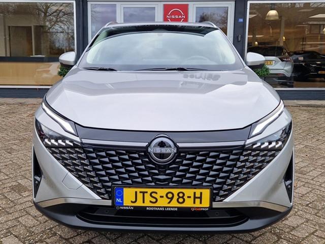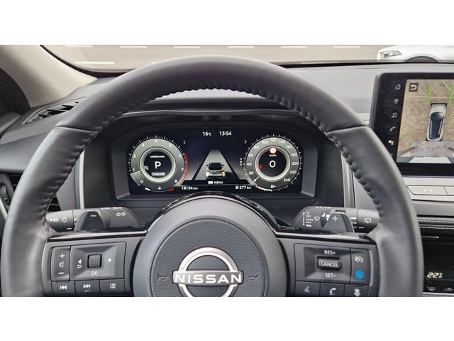 2x USB laadpoorten achter (1x type A, 1x type C), 2x USB laadpoorten voor, 3-punts veiligheidsgordels voor en achter, 9" NissanConnect Navigatie- en infotainmentsysteem, 12,3'' TFT digitaal instrumentenpaneel, 12V aansluitingen voor en in de bagageruimte, 18" Diamant-Cut lichtmetalen velgen, A-IVC Navigatie services, A-IVI NissanConnect Navigatiesysteem (9'' TFT touchscreen), ABS (Anti-blokkeersysteem), Achterbankleuning in delen neerklapbaar (60/40), Achteruitrijcamera met dynamische afstandsmarkering, Adaptive Front Lighting System (AFS), Alarmsysteem, Around View Monitor (AVM), Audiosysteem met Apple Carplay® & Android Auto®, USB-aansluiting, stuurwielbediening, 6 luidsprekers, Auto Speed Control Device (ASCD), Auto Speed Limit (ASL), Automatisch dimmende binnenspiegel, Automatisch in- / uitschakelende koplampen, Back-up Collission intervention (BCI), Bandenreparatieset, Bandenspanningscontrolesysteem (TPMS), Bekerhouder achter (2x), Bekerhouder voor (2x), Blind Junction View (BJV), Blind Spot Warning & Intervention (BSW + BSI), Bluetooth® (telefoon en audio), Breakdown call, Buitenspiegelbehuizing en deurgrepen in carrosseriekleur, Buitenspiegels elektrisch inklapbaar, Buitenspiegels elektrisch verstelbaar en verwarmbaar, Centrale deurvergrendeling met afstandsbediening, Chromen raamomlijsting, Cold Pack (Stoel-Stuur-Voorruit Verw), Cross Traffic Alert (CTA), Dakspoiler achter, Dashboard en deurpanelen leder (zwart), Digitale radio-ontvangst (DAB+), Draadloos Apple Carplay®, Drive modus functie (3 modi), Driver Attention Alert (DAA), EBD (Elektronische Remkrachtverdeler), ESP (Electronic Stability Program), Elektrische lendensteunverstelling bestuurdersstoel (2-way), Elektronische handrem, Elektronische stuurbekrachtiging, Emergency Stop Signal (Autohazard), Extra getint glas (achterste zijruiten en achterruit), Flexibele bagageruimte indeling (2 scheidingsplanken), Frontal Collision Warning (FCW), Full LED koplampen met LED dagrijverlichting en halogeen knipperlicht, Gescheiden automatische airconditioning (2 zones), Gordelspanners en melding voor veiligheidsgordels, Haaienvin-antenne, Haken in de bagageruimte (4 op de bodem, 2 aan de zijkanten), High Beam Assist (HBA), Hill Start Assist (HSA), Hill Start Assist + AutoHold functie, Hoedenplank, ISOFIX-bevestigingspunten achter (2x), In hoogte en diepte verstelbaar stuurwiel, In hoogte verstelbare bestuurdersstoel (manueel), In hoogte verstelbare passagiersstoel, Intelligent Cruise Control (ICC), Interieur ambianceverlichting (middenconsole), Interieurlijsten metaallook, LED achterlichten, Lane Departure Warning & Prevention (LDW + LDP), Lane Side Support (LSS), Lichtsensor, Limited Slip Differential (LSD), Matzilver decoratiepaneel achterbumper, Metallic lak, Middenarmsteun achter met 2 bekerhouders, Middenarmsteun vóór met opbergvak, Middenconsole en armsteunen in PVC, Moving Object Detection (MOD), NBAS (Nissan Brake Assist System), Parkeersensoren voor- en achterzijde, Portiergrepen met ontgrendelknop (Easy Access), Predictive Forward Collision Warning (PFCW), Predictive Front Emergency Braking met voetgangers- en fietsersherkenning (P-FEB), ProPILOT, Regensensor, START/STOP-systeem, Schakelflippers achter stuurwiel, Stoffen stoelbekleding (zwart/grijs), Stuurwielbediening, Stuurwiel en versnellingspookknop met leder bekleed, Tankdeksel zonder dop, Traffic Sign Recognition (TSR), Vehicle Dynamic Control (VDC), Verlichting aan beide kanten in de bagageruimte, Voor-, zij- en gordijnairbags (uitschakelbare passagiersairbag), Zachte kniesteun (PVC), Zonnebrillenhouder in hemelbekleding, Zonnekleppen met make-up spiegel, Zonnekleppen met make-up spiegel, verlicht, eCall, i-Key (openen en sluiten zonder sleutel)