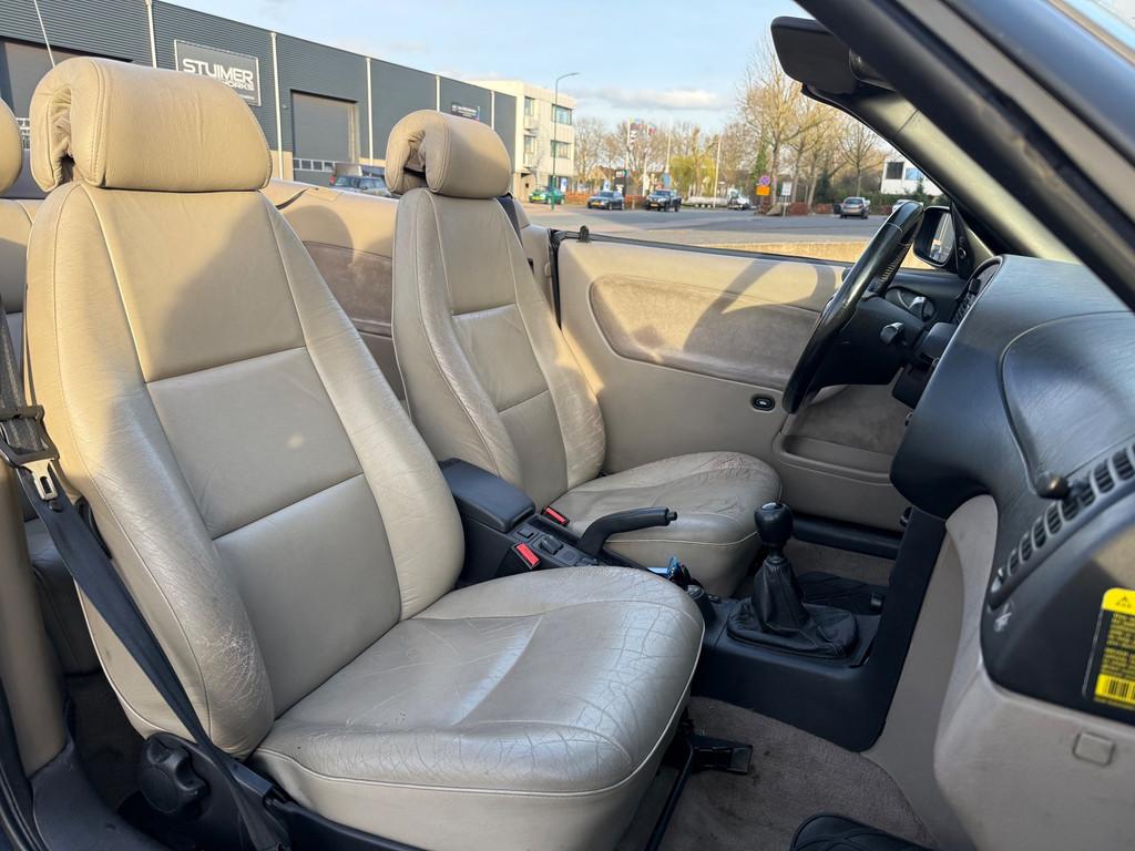 Airbag bestuurder, Anti Blokkeer Systeem (ABS), Centrale deurvergrendeling, Elektrisch bedienbare kap, Elektrische ramen voor, Getint glas, Lederen bekleding, Lichtmetalen velgen, Metallic lak, Stuurbekrachtiging, Toerenteller, voorstoelen verwarmd