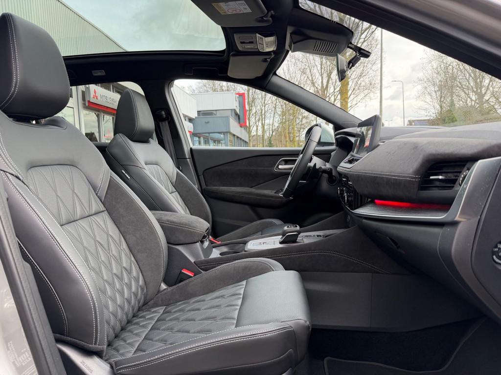 2x USB laadpoorten achter (1x type A, 1x type C), 2x USB laadpoorten voor, 3-punts veiligheidsgordels voor en achter, 9" NissanConnect Navigatie- en infotainmentsysteem, 12,3'' TFT digitaal instrumentenpaneel, 12V aansluitingen voor en in de bagageruimte, 20" diamant-geslepen lichtmetalen velgen met multi-Link ophanging, A-IVC Navigatie services, A-IVC Remote Control diensten en meldingen (3 jaar gratis), A-IVI NissanConnect Navigatiesysteem (9'' TFT touchscreen), ABS (Anti-blokkeersysteem), Achterbankleuning in delen neerklapbaar (60/40), Achteruitrijcamera met dynamische afstandsmarkering, Adaptive Front Lighting System (AFS), Alarmsysteem, Apple Carplay® & Android Auto® met kabel, Around View Monitor (AVM), Auto Speed Control Device (ASCD), Auto Speed Limit (ASL), Automatisch dimmende binnenspiegel, Automatische achterklep met voetsensor, Automatisch in- / uitschakelende koplampen, Back-up Collission intervention (BCI), Bandenreparatieset, Bandenspanningscontrolesysteem (TPMS), Bekerhouder achter (2x), Bekerhouder voor (2x), Blind Junction View (BJV), Blind Spot Warning & Intervention (BSW + BSI), Bluetooth® (telefoon en audio), Breakdown call, Buitenspiegelbehuizing en deurgrepen in carrosseriekleur, Buitenspiegels elektrisch inklapbaar, Buitenspiegels elektrisch verstelbaar en verwarmbaar, Centrale deurvergrendeling met afstandsbediening, Chromen raamomlijsting, Chromen sierstrip achterbumper, Chromen strip achterklep, Cross Traffic Alert (CTA), DRIVE ASSIST, Dakrails, Dakspoiler achter, Dashboard en deurpanelen leder (blauw), Digitale radio-ontvangst (DAB+), Draadloos Apple Carplay®, Draadloze smartphone oplader (15w), Drive modus functie (3 modi), Driver Attention Alert (DAA), EBD (Elektronische Remkrachtverdeler), ESP (Electronic Stability Program), Elektrische lendensteunverstelling voorstoelen (4-way), Elektrisch verstelbare bestuurdersstoel, Elektrisch verstelbare passagierstoel, Elektronische handrem, Elektronische stuurbekrachtiging, Emergency Stop Signal (Autohazard), Extra getint glas (achterste zijruiten en achterruit), Flexibele bagageruimte indeling (2 scheidingsplanken), Frontal Collision Warning (FCW), Gescheiden automatische airconditioning (2 zones), Gordelspanners en melding voor veiligheidsgordels, Haaienvin-antenne, Haken in de bagageruimte (4 op de bodem, 2 aan de zijkanten), Head-up display (10.8'' projectie), High Beam Assist (HBA), Hill Start Assist (HSA), Hill Start Assist + AutoHold functie, Hoedenplank, ISOFIX-bevestigingspunten achter (2x), In hoogte en diepte verstelbaar stuurwiel, Intelligent Cruise Control (ICC), Interieur ambianceverlichting uitgebreid (middenconsole en deuren), Interieurlijsten metaallook, LED achterlichten, LED achteruitrijlicht en knipperlicht achter, LED matrix koplampen met LED dagrijverlichting en geintegreerd knipperlicht, LED mistlampen voor, Lane Departure Warning & Prevention (LDW + LDP), Lane Side Support (LSS), Lichtsensor, Limited Slip Differential (LSD), Matzilver decoratiepaneel achterbumper, Metallic lak, Middenarmsteun achter met 2 bekerhouders, Middenarmsteun vóór met opbergvak, Middenconsole en armsteunen in PVC, Moving Object Detection (MOD), NBAS (Nissan Brake Assist System), Nappa volleder, gewatteerde stoelbekleding (zwart), Panoramisch glazen dak met elektrisch bedienbare zonwering, Parkeersensoren voor- en achterzijde, Portiergrepen met ontgrendelknop (Easy Access), Predictive Forward Collision Warning (PFCW), Predictive Front Emergency Braking met voetgangers- en fietsersherkenning (P-FEB), Premium BOSE® audiosysteem met 10 luidsprekers, Acoustimass® subwoofer en Apple Carplay® & Android, ProPILOT, Regensensor, START/STOP-systeem, Schakelflippers achter stuurwiel, Stuurwielbediening, Stuurwiel en versnellingspookknop met leder bekleed, Tankdeksel zonder dop, Traffic Sign Recognition (TSR), Vehicle Dynamic Control (VDC), Verlichting aan beide kanten in de bagageruimte, Verwarmbaar stuurwiel, Verwarmbare voorruit, Verwarmbare voorstoelen, Volledig automatische ruiten voor en achter met i-Key link, Voor-, zij- en gordijnairbags (uitschakelbare passagiersairbag), Voorstoelen met geheugenfunctie, Voorstoelen met massagefunctie, Wi-Fi hotspot (betaalde dienst), Zachte kniesteun (PVC), Zonnebrillenhouder in hemelbekleding, Zonnekleppen met make-up spiegel, Zonnekleppen met make-up spiegel, verlicht, Zwarte Hemelbekleding, eCall, i-Key (openen en sluiten zonder sleutel)