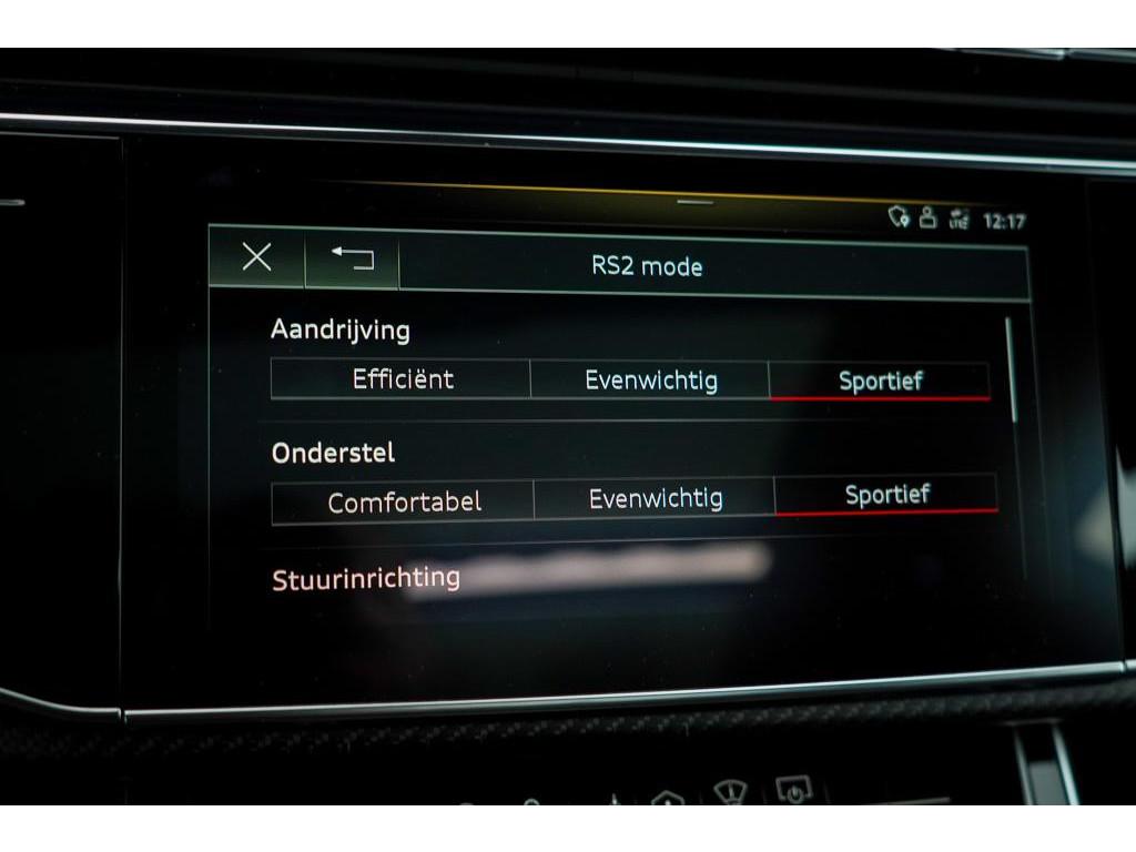 Achterbank plus (3NS), Akoestisch glas in de voor- en achterportieren (VW0), Anti Blokkeer Systeem, Assistentiepakket City (PCM), Assistentiepakket Tour (PCC), Audi Phone Box (9ZE), Audi active lane assist incl file assistent (6I6), Audi side assist inclusief Audi pre sense rear (PCH), Audi smartphone interface (IU1), Autonomous Emergency Braking, Bang & Olufsen Premium soundsystem met 3D sound vóór (9VS), Bluetooth telefoonvoorbereiding, Buitenspiegels, elektrisch inklapbaar en automatisch dimmend (6XK), DVD-Player (7D5), Decorinleg, aluminium spectrum (7TF), Decorinleg, carbon mat, keper geweven (5MH), Digitale radio ontvangst (QV3), Dynamic pakket plus (PA3), Elektronisch Stabiliteits Programma, HD Matrix LED-koplampen (PXC), Head-Up display (KS1), Keramische remschijven (PC5), Koplampreinigingsinstallatie (8X1), LED achterlichten, LED dagrijverlichting, Lane departure warning (6I3), Panoramadak (3FU), Privacy glas (QL5), RS-bumpers in carrosseriekleur (VJ3), RS-sportstoelen vóór in leder Valcona gepeforeerd met honingraat stiksel en stoelventilatie (PEH), S Line exterieur, Scheidingsnet (3CX), Servosluiting portieren (GZ2), Snelheidslimietherkenning (QR9), Sportdifferentieel met actieve rolstabilisator (PHZ), S sportstoelen vóór (Q4Q), Stoelen, vóór en achter verwarmbaar (4A4), Stoelen vóór, elektrisch verstelbaar met geheugen voor bestuurder- en bijrijdersstoel (PV6), Stoelventilatie voor (4D3), Stuurwiel, elektrisch in hoogte- en lengte verstelbaar (2C7), Top View 360° camera's incl. parkeerhulp vóór en achter (PCD), Trekhaak, elektrisch uitklapbaar (1D3), Velgen 10-spaak-ster (C3H), Vierwielbesturing (0N5), Voorruit, akoestisch glas en draadloos verwarmbaar (4GR), WiFi voorbereiding, Zonwering, mechanisch voor de achterruit en elektrisch voor de achterzijruiten (3Y6), achteruitrij assistent, adaptief demping systeem, airco separaat achter, alarm klasse 3, aluminium delen exterieur, armsteun achter, armsteun voor, bandenspanningscontrolesysteem, bestuurdersairbag, binnenspiegel automatisch dimmend, bots herkenning en activatie, bots waarschuwing systeem, buitenspiegels elektr. met geheugen, buitenspiegels elektrisch inklapbaar, buitenspiegels elektrisch verstel- en verwarmbaar, centrale deurvergrendeling met afstandsbediening, connected services, cruise control adaptief met Stop&Go, dimlichten automatisch, electronic climate controle, elektrisch bedienbare achterklep, elektrische ramen voor en achter, elektrisch verstelbare bestuurdersstoel, elektrisch verstelbare passagiersstoel, grootlichtassistent, hill hold functie, hoofd airbag(s) achter, hoofd airbag(s) voor, hoofdsteunen actief, koplampen adaptief, kruisend verkeer detectie, lederen interieurdelen, lederen stuurwiel, lendesteunen (verstelbaar), luchtvering en automatische niveauregeling, multimedia-voorbereiding, navigatiesysteem full map, parkeersensor achter, parkeersensor voor, passagiersairbag, regensensor, ruitensproeiers verwarmbaar, schakelmogelijkheid aan stuurwiel, sportstuur, start/stop systeem, stuurbekrachtiging, stuur verstelbaar, stuurwiel multifunctioneel, uitwijk assistent, volledig digitaal instrumentenpaneel, voorstoelen verwarmd, warmtewerend glas, zij airbag(s) voor, zonnescherm achterruit, zonnescherm zijruiten