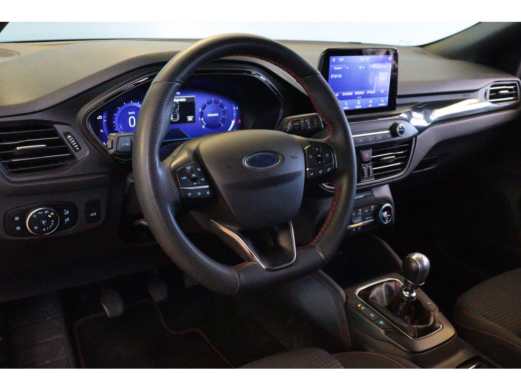 10-weg handmatig verstelbare bestuurdersstoel (AGR gecertificeerd) (BYPAE), 17 inch lichtmetalen velgen 5x2-spaaks in Rock Metallic (D2YL6), ABS, ESP, Traction Control, Emergency Brake Assist en Hill Start Assist (FEAAP), Achterbank in delen neerklapbaar, Achteropkomend verkeer waarschuwing, Achterspoiler, Achterspoiler (BPFAJ), Achteruitrijcamera, Achteruitrijcamera - projectie van de omgeving achter de auto in het navigatiesysteem (J3KAR), Active Braking/Pre-Collision Assist (voor auto's, voetgangers en fietsers) (FBFAB), Airbag(s) hoofd achter, Airbag(s) hoofd voor, Airbag(s) side voor, Airbag bestuurder, Airbag passagier, Airbags: Voor bestuurder en voorste passagier (CPGAB), Airbags: Zijairbags voor (CPMAB), Airco, Airconditioning incl. instellingen voor maximaal koelen of ontdooien (AC--S), Alarm klasse 1(startblokkering), Anti Blokkeer Systeem, Anti doorSlip Regeling, Apple Carplay/Android Auto, Armsteun voor, Automatisch dimmende binnenspiegel (BSBAF), Automatisch inschakelende dimlichten (JEDAC), Autonomous Emergency Braking, Bagagedek, Bandenspanningscontrolesysteem, Bestuurdersstoel in hoogte verstelbaar, Binnenspiegel automatisch dimmend, Bluetooth, Boordcomputer, Bots herkenning systeem, Brake Assist System, Buitenspiegels elektrisch inklapbaar, Buitenspiegels elektrisch verstel- en verwarmbaar, Connected services, Cruise Control inclusief Adjustable Speed Limiting Device (ASLD) (GTDAJ), Cruise control, Dab, Dakrails, Dakspoiler, Dimlichten automatisch, EasyFold 60:40 achterbankleuning (BWCAK), Elektrisch bedienbare achterklep met sensorsturing, Elektrisch bedienbare portierramen rondom (B2CAF), Elektrische ramen achter, Elektrische ramen voor, Elektrisch inklapbare buitenspiegels incl. omgevingsverlichting (BSHCF), Elektrisch verstel- en verwarmbare buitenspiegels (BSHDJ), Elektronisch Stabiliteits Programma, Elektronische remkrachtverdeling, Ford Keyless Entry & Start (CBGAL), FordKeyless Entry incl. FordPower startbutton (CBGAL), FordPass Connect - Embedded Modem (HKSAD), FordPower startbutton (CBGAJ), Hill hold functie, In hoogte verstelbare passagiersstoel met lendensteunverstelling (BYQAD), Intelligent Speed Assist (GTCAV), Keyless entry, Keyless start, LED dagrijverlichting, LED dagrijverlichting (JBCAF), LED koplampen, LED koplampen (dimlicht) (JBBBS), LED mistlampen, Lane Departure Warning/Lane Keeping Aid en Road Edge Detection (HLNAB), Lederen stuurwiel in ST design met City Silver stiksel en afgeplatte onderkant (GTAAN), Lederen versnellingspook, Lendensteunverstelling op de bestuurdersstoel (BWRAB), Lichtmetalen velgen 17", Middenconsole met armsteun (B5WAP), Mistlampen voor met bochtverlichting (JBKAL), Multimedia-voorbereiding, Navigatiesysteem full map, Parkeersensor achter, Parkeersensor voor, Passagiersstoel in hoogte verstelbaar, Privacy glass - zijruiten achter en achterruit extra getint (B2GAE), Radio, Regensensor, Regensensor (CFFAE), Rijstrooksensor met correctie, Side-skirts, Sportieve wielophanging: 10mm verlaagd (DWAAC), Sportonderstel, Sportstoelen, Sportstoelen voor (FS--H), Sportstuur, Spraakbediening, Start/stop systeem, Stuurbekrachtiging snelheidsafhankelijk, Stuur verstelbaar, Tyre Pressure Monitoring System (bandenspanningscontrole systeem) (HJCAC), WiFi, automatische snelheidsbegrenzing ISA, bots waarschuwing systeem, centrale vergrendeling met afstandsbediening, extra getint glas achter, lendesteun(en) verstelbaar, mistlampen voor adaptief, stuur leder, stuur multifunctioneel