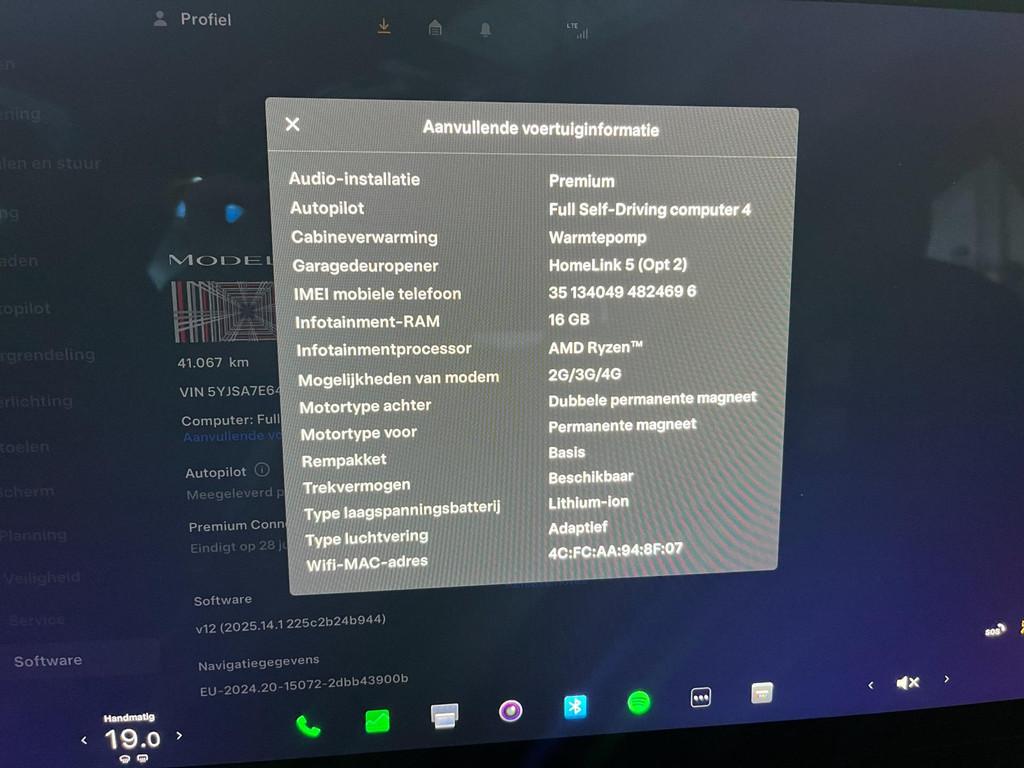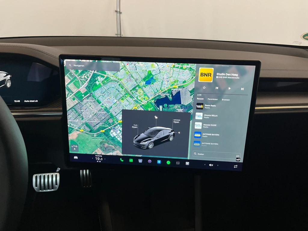 "Lichtmetalen velgen 19""", 360 Camera, Accident Avoidance System, Achterbank in delen neerklapbaar, Achterbank verwarmd, Achterklep elektrisch, Achterspoiler, Achterstoelen verwarmd, Achteruitrijcamera, Adaptieve cruise control, Airbag(s) hoofd achter, Airbag(s) hoofd voor, Airbag(s) knie, Airbag(s) side voor, Airbag bestuurder, Airbag passagier, Airco separaat achter, Alarmsysteem, Anti Blokkeer Systeem (ABS), Armsteun achter, Armsteun voor, Audio installatie premium, Auto-Pilot, Autonome parkeerfunctie, Autopilot, Autotelefoonvoorbereiding met Bluetooth, Bandenspanningscontrolesysteem, Binnenspiegel automatisch dimmend, Boordcomputer, Bots waarschuwing systeem, Buitenspiegel(s) automatisch dimmend, Buitenspiegels elektrisch inklapbaar, Buitenspiegels elektrisch met geheugen, Buitenspiegels elektrisch verstelbaar, Buitenspiegels verwarmbaar, CCS-Update, Carbonafwerking interieur, Connected services, Cruise control, Cruise control adaptief met Stop&Go, Dimlichten automatisch, Dodehoek detector, Dodehoek sensor, Draadloze telefoonlader, Electronic Stability Program (ESP), Electronic climate controle, Elektrisch bedienbare achterklep, Elektrische ramen voor, Elektrisch verstelbare stoel(en) met geheugen, Elektrisch verstelbare stuurkolom met geheugen, Full Self-Driving Capability, Full Self Driving (FSD), Geventileerde stoelen voor, Intelligente Luchtvering, Keyless entry, Keyless start, Kleur zwart, Koplampen adaptief, LED achterlichten, LED dagrijverlichting, LED koplampen, Lane-Assist, Lederen stuurwiel, Luchtvering, Luxe lederen bekleding, Metallic lak, Multimedia-voorbereiding, Navigatie, Navigatie full map, Oplaadmogelijkheid, Panoramadak, Parkeersensor achter, Parkeersensoren, Parkeersensor voor, Premium Sound, Regensensor, Rijstrooksensor, Rondomzicht camera, Ruitensproeiers verwarmbaar, Sfeerverlichting, Spraakbediening, Startblokkering, Stoel ventilatie voor, Stoelverwarming voor, Stuurbekrachtiging, Stuurbekrachtiging snelheidsafhankelijk, Stuurhulp, Stuurwiel multifunctioneel, Stuurwielverwarmd, Tractie Controle Systeem (TCS), Ultra High Fidelity-Geluidspakket, VR-Cockpit, Verkeersbord detectie, Verwarmde voorstoelen, Volledig digitaal instrumentenpaneel, WiFi voorbereiding, XENON, Zelfstandige rijstrookwissel