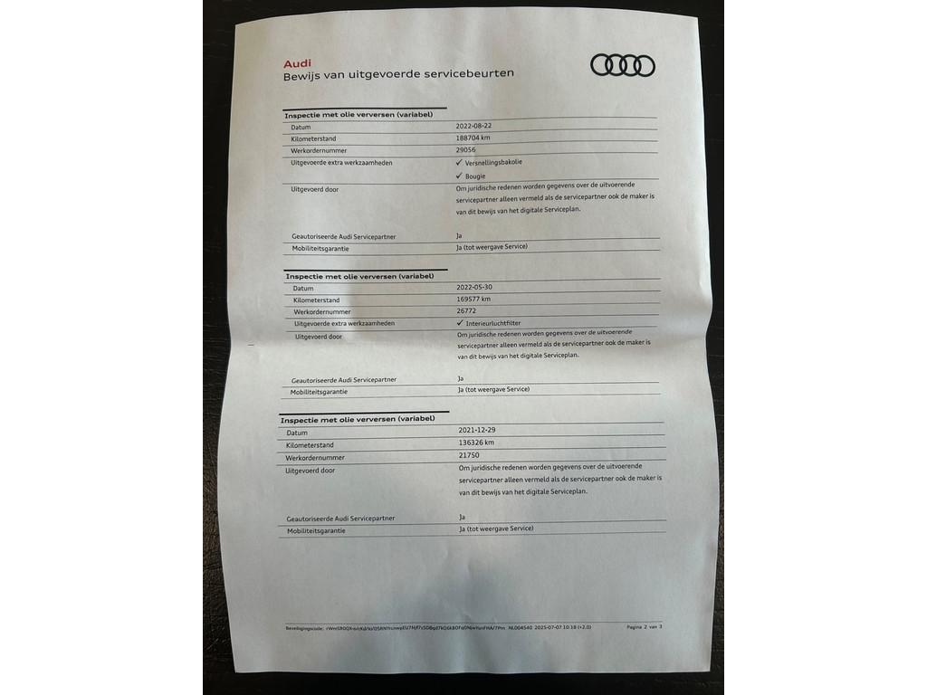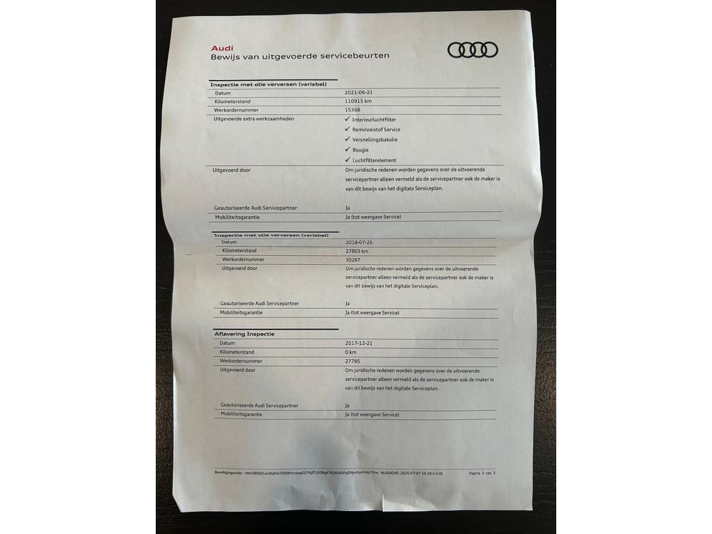 "Lichtmetalen velgen 7-spaaks 18""", "Lichtmetalen velgen 18""", Achterbank in delen neerklapbaar, Achteropkomend verkeer waarschuwing, Airbag(s) hoofd achter, Airbag(s) hoofd voor, Airbag(s) side voor, Airbag bestuurder, Airbag passagier, Airconditioning, Airco separaat achter, Alarm klasse 3, Aluminium delen exterieur, Aluminium interieur afwerking, Anti Blokkeer Systeem (ABS), Armsteun achter, Armsteun voor, Audio installatie, Autotelefoonvoorbereiding met Bluetooth, Bandenspanningscontrolesysteem, Binnenspiegel automatisch dimmend, Boordcomputer, Bots herkenning en activatie, Buitenspiegels elektrisch verstelbaar, Buitenspiegels verwarmbaar, CD WISSELAAR, Centrale deurvergrendeling met afstandsbediening, Cruise control, Dimlichten automatisch, Electronic Stability Program (ESP), Electronic climate controle, Elektrisch bedienbare achterklep, Elektrische ramen voor, Elektronisch sperdifferentieel (EDS), Hill hold-functie, Keyless-Go pakket, Keyless entry, LED koplampen, Lederen/stoffen bekleding, Lederen interieurdelen, Lederen sportstuur, Lederen stuurwiel, Lederen versnellingspook, Lendesteunen (verstelbaar), Luxe lederen bekleding, Metallic lak, Mistlampen, Multimedia-voorbereiding, Navigatie-systeem full map + hard disk, Parkeersensor achter, Parkeersensor voor, Regensensor, S Line exterieur, Sportonderstel, Sportstoelen, Sportstuur, Start/stop systeem, Startstop systeem, Stuurbekrachtiging snelheidsafhankelijk, Stuur verstelbaar, Stuurwiel multifunctioneel, Telefoonintegratie, Telefoonvoorbereiding, Tractie Controle Systeem (TCS), Vervolgbotsing preventie, Verwarmde voorstoelen, Voorstoelen, Voorstoelen in hoogte verstelbaar, Warmtewerend glas, WiFi voorbereiding, Zwart dakhemel, aux, centrale deurvergrendeling, isofix, koplamp sproeiers, multifunctioneel stuurwiel, usb