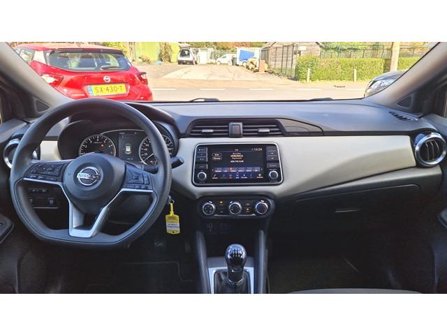 2 hoofdsteunen achter, 3-punts veiligheidsgordels achter (automatische oprolfunctie) (x3), 5'' Kleuren TFT instrumentenpaneel, 12V aansluiting, 16'' Stalen wielen met siervelgen, 60/40 neerklapbare achterbank, ABS (antiblokkeerremsysteem), Achterspoiler, Android Auto & Apple CarPlay, Armsteun voorportieren met grijze inzetstukken, Automatische inschakeling van de ruitenwisser achteraan bij het inschakelen van de achteruitversnelling, Automatisch in-/uitschakelende koplampen, Bandenreparatieset, Bekerhouders (2 voor en 1 achter), Bekleding stof 'modern' zwart met grijze inzetstukken en stiksels, Binnendeurengrepen in chroom, Bovenste deel van het dashboard in soft-touch materialen, Buitenspiegels in carrosseriekleur, Centrale deurvergrendeling met afstandsbediening, Chassis Control Systeem (Active Trace Control, Active Ride Control), Cruise Control en snelheidsbegrenzer, Deurgrepen achteraan geïntegreerd in de achterstijl, Deurgrepen vooraan carrosseriekleur, EBD (elektronische remkrachtverdeler), ESP (Electronic Stability Program), Elektrische ruiten voor en handbediende achter, Elektrisch verstelbare buitenspiegels, manueel inklapbaar, Frontale airbags (uitschakelbare passagiersairbag), Gordelwaarschuwing, Gordijn airbags, Halogeen koplampen met lichtsignatuur, Handgreep passagierszijde (x1), Hill start assist, ISOFIX kinderstoel bevestigingspunten passagierszijde en achter, In hoogte en diepte verstelbaar stuurwiel, In hoogte verstelbare bestuurdersstoel, Intelligente noodremhulp (AEB), Kindersloten op de achterportieren, LED dagrijverlichting, Manuele airconditioning, Metaalkleur, NBAS (Nissan Brake Assist), Nissan Connect, Opbergbakken in de binnenportieren voor en achter met flessenhouders, Schakelindicator, Snelheidsafhankelijke stuurbekrachtiging, Start & Stop systeem, Startonderbreking, Stuurwielbedieningen: boordcomputer, audio, telefoon, snelheidsbegrenzer / cruise control, TPMS (bandenspanning controlesysteem), Traction Control System (TCS), Trekhaak, Uitneembare bagage-afdekking, Veiligheidsgordels voor en achter met gordelspanners en spankrachtbegrenzers, Versnellingspookknop met satijnzilveren afwerking, Verstelbare hoofdsteunen voor, Zachte kniesteunen met stiksels, Zijdelingse airbags vooraan, kofferbakverlichting