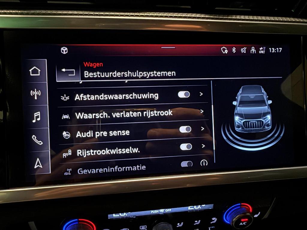 "Lichtmetalen velgen 5-spaaks 20""", 1e eigenaar, Accident Avoidance System, Achterbank in delen neerklapbaar, Achterbank verstelbaar, Achteruitrijcamera, Airbag(s) hoofd achter, Airbag(s) hoofd voor, Airbag(s) side voor, Airbag bestuurder, Airbag passagier, Alarmsysteem, Aluminium interieur afwerking, Anti Blokkeer Systeem (ABS), Apple CarPlay, Armsteun voor, Assistentie Pakket, Audio installatie premium, Autotelefoonvoorbereiding met Bluetooth, Bandenspanningscontrolesysteem, Binnenspiegel automatisch dimmend, Bots waarschuwing systeem, Buitenspiegels elektrisch verstelbaar, Buitenspiegels in carrosseriekleur, Buitenspiegels verwarmbaar, Centrale deurvergrendeling met afstandsbediening, Connected services, Cruise control, Cruise control adaptief, DAB-ontvanger, Dakrails, Dimlichten automatisch, Dodehoek detector, Electronic Stability Program (ESP), Electronic climate controle, Elektrisch bedienbare achterklep, Elektrische ramen achter, Elektrische ramen voor, Extra getint glas, Hill hold-functie, Keyless entry, Keyless start, Koplampen adaptief, LED-lichtpakket, LED achterlichten, LED dagrijverlichting, LED koplampen, Lederen/stoffen bekleding, Lederen sportstuur, Matrix LED koplampen, Metaalkleur parelmoer, Metallic lak, Multimedia-voorbereiding, Navigatie-systeem full map + hard disk, Parkeersensor achter, Parkeersensor voor, Parkeersensor voor en achter, RADIO MP3, Regensensor, Rijstrooksensor, S Line exterieur, Sportstoelen, Startblokkering, Stuur verstelbaar, Stuurwiel multifunctioneel, Telefoonintegratie premium, Verkeersbord detectie, Verwarmde voorstoelen, Volledig digitaal instrumentenpaneel, Voorstoelen in hoogte verstelbaar, Warmtewerend glas, WiFi voorbereiding, achterklep electrisch, afleverkosten 350euro, ambient lighting, android auto, armsteun achter, audi-connect, audi drive select, audi pre-sense, audi smartfone interface, automaat, black-optiek, bumpers en spiegels in car.kleur, dak hemel zwart, dealer onderhouden, digitale cockpit, dimlichten automatisch, draadloze ihone oplader, isofix, limit controlle, multimedia-input, nationale autopas, navigatie groot scherm, onderhoud digitaal, ruitenwisser achter, s-line interieur, s-line pakket, sfeer verlichting, tft scherm, toerenteller, touchscreen, usb
