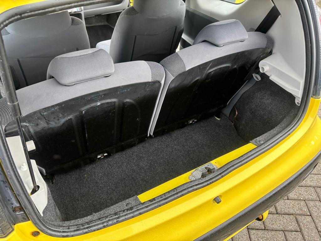 3-deurs, 5-bak, Achterbank in delen neerklapbaar, Achterruitverwarming, Achterruitwisser, Airbag(s), Airbag(s) side, Airco, Anti Blokkeer Systeem (ABS), Bagagedek, Buitenspiegels van binnenuit verstelbaar, Bumpers in carrosseriekleur, Centrale deurvergrendeling met afstandsbediening, Electronic Brake Distribution (EBD), Elektrische ramen voor, Isofix bevestiging voor kinderzitjes, Luxe interieur afwerking, Reservewiel, Speciale kleur, Stoffen bekleding, Stuurbekrachtiging, Toerenteller, Verstelbare stuurkolom, Waarschuwingssysteem, Zijbeschermingslijsten