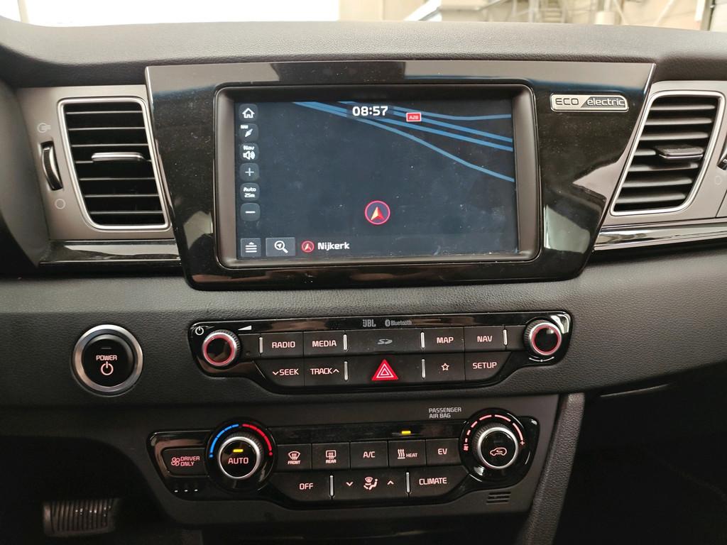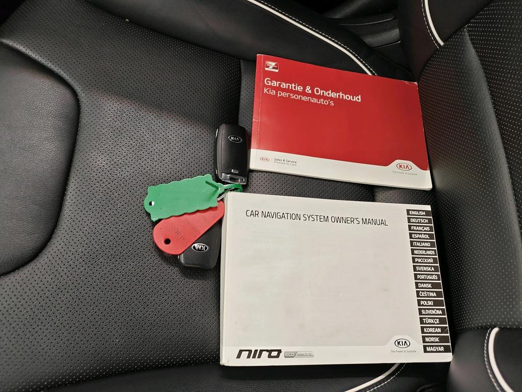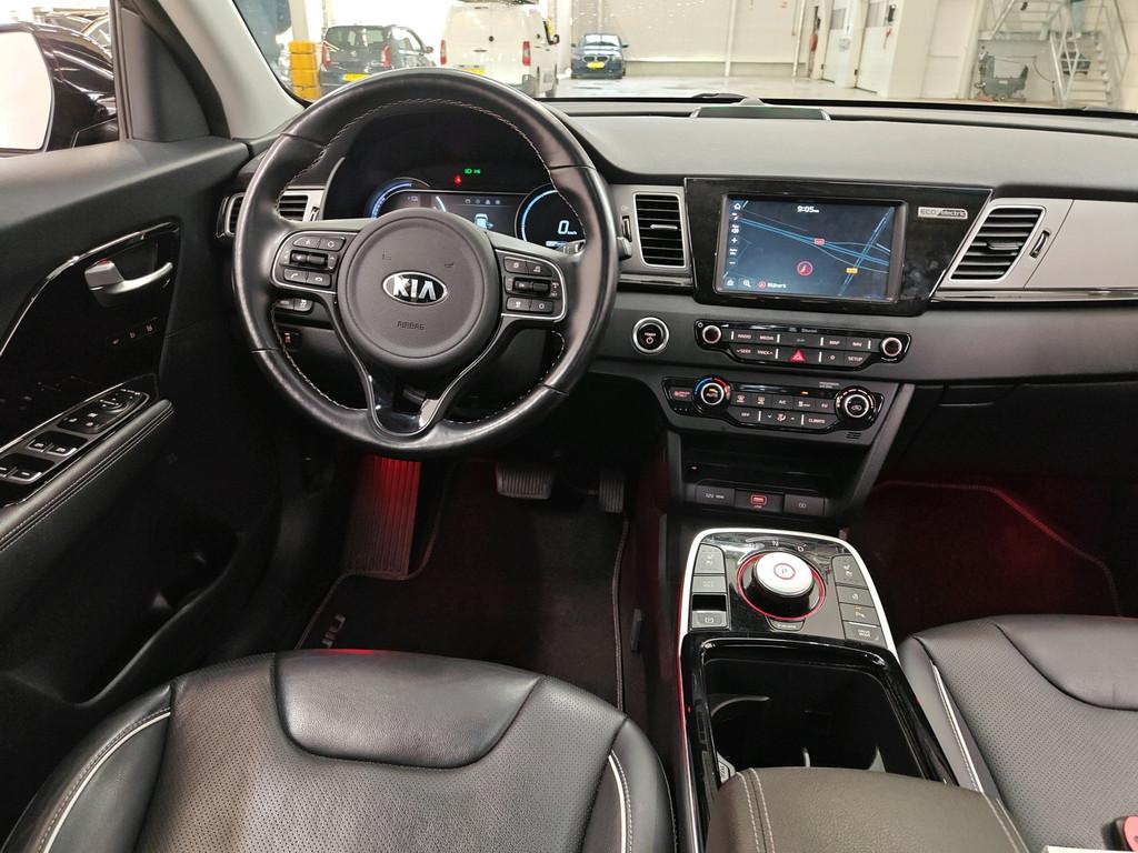 "Lichtmetalen velgen 17""", Accident Avoidance System, Achterbank verwarmd, Achteruitrij assistent, Achteruitrijcamera, Airbag(s) hoofd achter, Airbag(s) hoofd voor, Airbag(s) knie, Airbag(s) side voor, Airbag bestuurder, Airbag passagier, Android Auto, Anti Blokkeer Systeem (ABS), Apple Carplay, Audio installatie premium, Autotelefoonvoorbereiding met Bluetooth, Bandenspanningscontrolesysteem, Bestuurdersstoel in hoogte verstelbaar, Binnenspiegel automatisch dimmend, Bots waarschuwing systeem, Buitenspiegels elektrisch inklapbaar, Buitenspiegels elektrisch verstelbaar, Buitenspiegels verwarmbaar, Chroom delen exterieur, Cruise control adaptief met Stop&Go, DAB-ontvanger, Dakrails, Dimlichten automatisch, Dodehoek detector, Draadloze telefoonlader, Electronic Stability Program (ESP), Electronic climate controle, Elektrische ramen achter, Elektrische ramen voor, Elektrisch verstelbare bestuurdersstoel met geheugen, Extra getint glas, Fabrieksgarantie Kia op EV-Accu 7 jaar of 150.000km, Grootlicht-assistent, Hill hold-functie, ISO-fix, Keyless entry, Keyless start, LED achterlichten, LED dagrijverlichting, LED koplampen, Lederen bekleding, Lederen stuurwiel, Lendesteunen (verstelbaar), Metallic lak, Mistlampen voor, Multimedia-voorbereiding, Navigatie full map, Oplaadmogelijkheid, Parkeersensor achter, Parkeersensor voor, Passagiersstoel in hoogte verstelbaar, Regensensor, Rijstrooksensor met correctie, Schakelmogelijkheid aan stuurwiel, Startblokkering, Stoel ventilatie voor, Stuurhulp, Stuur verstelbaar, Stuurwiel multifunctioneel, Stuurwiel verwarmd, Telefoonintegratie premium, Vermoeidheids herkenning, Verwarmde voorstoelen
