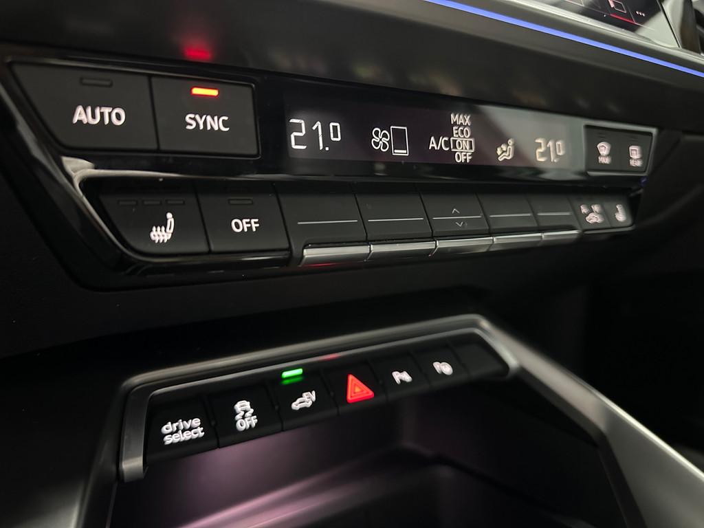 "Lichtmetalen velgen 18""", Accident Avoidance System, Achterbank in delen neerklapbaar, Achteruitrijcamera, Airbag(s) hoofd achter, Airbag(s) hoofd voor, Airbag(s) side achter, Airbag(s) side voor, Airbag bestuurder, Airbag passagier, Alarmsysteem, Aluminium delen exterieur, Aluminium interieur afwerking, Anti Blokkeer Systeem (ABS), Armsteun achter, Armsteun voor, Audio installatie premium, Bandenspanningscontrolesysteem, Bestuurdersstoel in hoogte verstelbaar, Binnenspiegel automatisch dimmend, Bots herkenning en activatie, Brake Assist System, Buitenspiegel(s) automatisch dimmend, Buitenspiegels elektrisch inklapbaar, Buitenspiegels elektrisch verstelbaar, Buitenspiegels verwarmbaar, Centrale deurvergrendeling met afstandsbediening, Connected services, Cruise control, Cruise control adaptief met Stop&Go, DAB-ontvanger, Dakspoiler, Dimlichten automatisch, Draadloze telefoonlader, Electronic Brake Distribution (EBD), Electronic Stability Program (ESP), Electronic climate controle, Elektrisch bedienbare achterklep met sensorsturing, Elektrisch glazen panorama-dak, Extra getint glas, Grootlicht-assistent, Hill hold-functie, Keyless entry, Keyless start, Koplampen adaptief, Koplampreiniging, LED-lichtpakket, LED achterlichten, LED dagrijverlichting, Lederen bekleding, Lederen stuurwiel, Matrix LED koplampen, Metallic lak, Multimedia-voorbereiding, Navigatie full map, Oplaadmogelijkheid, Parkeer-assistent, Parkeer pakket, Parkeersensor achter, Parkeersensor voor, Passagiersstoel in hoogte verstelbaar, Radio, Regensensor, Rijstrooksensor, Ruitensproeiers verwarmbaar, S Line exterieur, Sportstoelen, Sportstuur, Start/stop systeem, Startblokkering, Stof/kunstlederen bekleding, Stuurbekrachtiging, Stuurhulp, Stuurwiel multifunctioneel, Telefoonintegratie premium, Tractie Controle Systeem (TCS), Uitwijk assistent, Verkeersbord detectie, Verwarmde voorstoelen, Volledig digitaal instrumentenpaneel, Voorstoel(en) met massagefunctie, Warmtewerende voorruit, WiFi voorbereiding