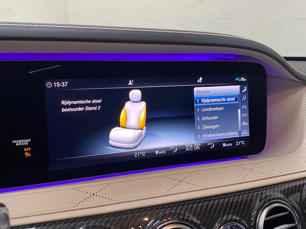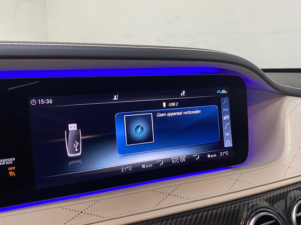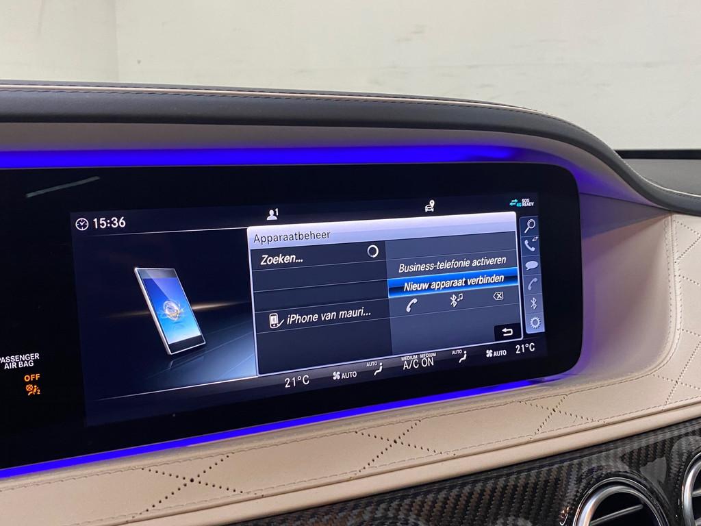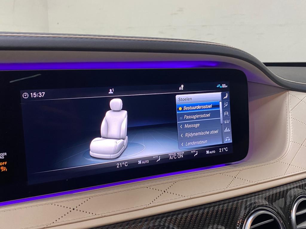 "Lichtmetalen velgen 20""", AMG-styling, AMG Line, AMG Line Plus, Achteropkomend verkeer waarschuwing, Achterstoelen verwarmd, Achteruitrijcamera, Actieve multicontourstoelenpakket, Airbag(s) hoofd achter, Airbag(s) hoofd voor, Airbag(s) side voor, Airbag bestuurder, Airbag passagier, Airco separaat achter, Airmatic luchtvering, Alcantara dakhemel, Ambiance verlichting, Anti Blokkeer Systeem, Anti Blokkeer Systeem (ABS), Apple Carplay/Android Auto, Audio installatie premium, Autotelefoonvoorbereiding met Bluetooth, Buitenspiegels elektrisch inklapbaar, Buitenspiegels elektrisch met geheugen, Cruise control adaptief met Stop&Go, DAB-ontvanger, Dashboard nappaleder, Diefstalbeveiligingspakket, Distronic, Dodehoek detector, Draadloze telefoonlader, Electronic climate controle, Elektrisch verstelbare stoel(en) met geheugen, Elektrisch verstelbare stuurkolom met geheugen, Elektrisch zonnescherm achterruit, Entertainment system, Exclusief interieur plus, Extra getint glas, Garagedeuropener, Geluidsisolerend glas, Head-up display, Houtafwerking interieur, Intelligente/klapbare comforthoofdsteun voor, Interieur voorverwarmingsinstallatie, Keyless entry, Kruisend verkeer detectie, LED koplampen, Leder Exclusief - beige, Lederen stuurwiel, Live Traffic Information, Luchtvering, Luxe lederen bekleding, Metallic lak, Multicontourstoel achter, Navigatie-systeem full map + hard disk, Panoramadak, Parkeer-assistent, Parkeersensor voor en achter, Regensensor, Remote Parking-pakket, Rijassistentiepakket, Rijstrooksensor met correctie, Rondomzicht camera, Softclose, Sportstoelen, Sportstuur, Startblokkering, Stoelventilatie/-verwarming achter, Stoel ventilatie voor, Stuurhulp, Stuurwiel verwarming, TV-ontvanger, Telefoonintegratie premium, Verwarmde voorruit, Voorstoel(en) met massagefunctie, Voorstoelen verwarmd, Warmtewerend glas, Zonnescherm elektrisch bediend in achterportier links en rechts, Zonweringspakket, zijwind assistent