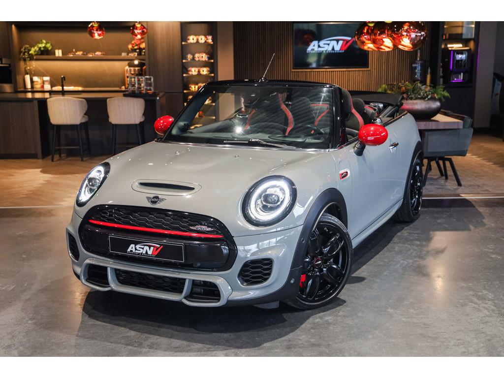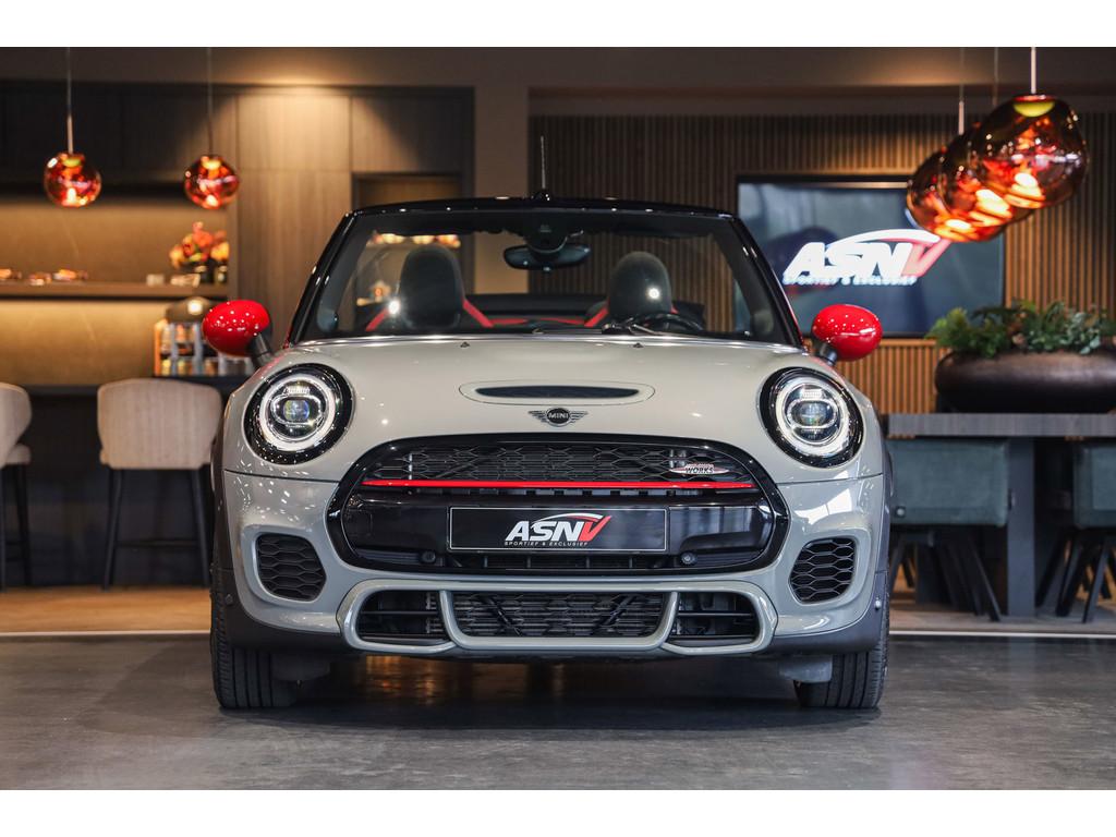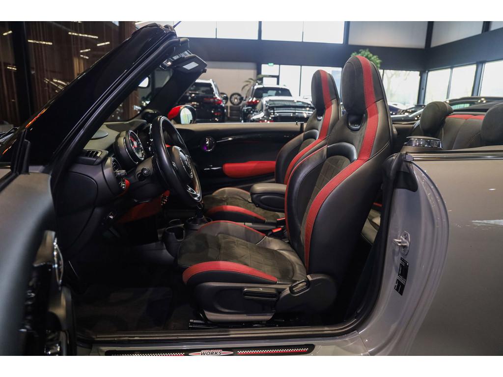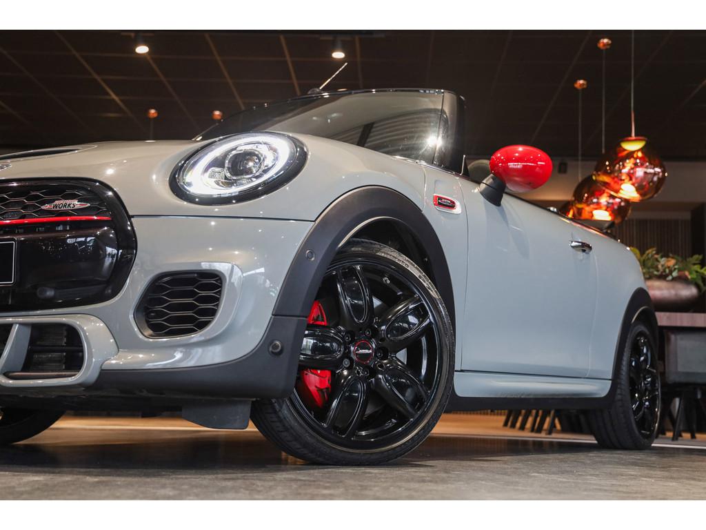 "Lichtmetalen velgen 18""", 18'' MINI LM-velg JCW Cup Spoke in hoogglans Zwart, Accident Avoidance System, Achterbank in delen neerklapbaar, Achteropkomend verkeer waarschuwing, Achteruitrijcamera, Active voetgangersbescherming, Adaptief Demping Systeem (ADS), Adaptive sportonderstel, Airbag(s) hoofd voor, Airbag(s) side voor, Airbag bestuurder, Airbag passagier, Airco automatisch, Alarm klasse 3, Always Open pakket, Anti Blokkeer Systeem (ABS), Audiobediening op het stuurwiel, Audio installatie premium, Autotelefoonvoorbereiding met Bluetooth, BMW Individual interieurlijsten - Piano zwart, BMW Intelligent Emergency SOS Call, Bandenspanningscontrolesysteem, Bestuurdersinformatiesysteem, Binnenspiegel automatisch dimmend, Binnenverlichting-pakket LED, Blow-By heater, Bots waarschuwing systeem, Buitenspiegels elektrisch inklapbaar, Buitenspiegels elektrisch verstelbaar, Buitenspiegels verwarmbaar, Centrale deurvergrendeling met afstandsbediening, Chili ll Pakket, Chrome Line Exterieur, Comfort Access (openen en starten zonder sleutel), Comfort middenarmsteun met opbergmogelijkheid, Configureerbare ambienteverlichting, Connected Drive Services, Cruise control adaptief met Stop&Go, DAB-ontvanger, Dimlichten automatisch, Draadloze telefoon lader, Driespaaks multifunctioneel leder stuurwiel, Driver Assistance Pack, Driving Assistant, Electronic Brake Distribution (EBD), Electronic Stability Program (ESP), Elektrisch bedienbaar zwart gestoffeerde cabrioletkap, Elektrisch bedienbare kap, Elektrische parkeerrem, Elektrische ramen achter, Elektrische ramen voor, Grille, sierlijsten, louvres in hoogglans zwart, Grootlicht-assistent, Harman/Kardon Surround Sound System, Head-up display, Hill hold-functie, ISOFIX-kinderzitjesvoorbereiding, In delen neerklapbare achterbank, Instaplijsten met John Cooper Works opschrift, John Cooper Works Aerodynamics kit, John Cooper Works Front Spoiler, John Cooper Works Sportstoelen (schaalstoelen), John Cooper Works Sportuitlaten, John Cooper Works lederen stuurwiel, Keyless entry, LED koplampen adaptief, LED mistlampen, Lederen bekleding, Lichtpakket, MINI Navigation System, MINI Teleservices, MINI UNION JACK LED ACHTERLICHTEN, Metallic lak, Mini Connected, Mini Driving Modes, Mist achterlicht, Mogelijkheid tot muziek-streaming, Multimedia-voorbereiding, Navigatie-systeem full map + hard disk, Park Assist Pack, Parkeer-assistent, Parkeersensor achter, Parkeersensor voor, Radio Mini Visual Boost, Real Time Traffic Information, Regelbare dashboardverlichting, Regensensor, Remzadels rood gespoten, Ruitensproeiers verwarmbaar, Smartphone integratie (Apple CarPlay + Android Auto),, Spiegelkappen in Rood, Sportautomaat, Sportonderstel, Sportstoelen, Start/stop systeem, Startblokkering, USB aansluitingen, Verkeersbord detectie, Verstelbaar stuurwiel met F1-schakeling, Vloermatten - Velours, Volautomatische comfort airconditioning, Voor-en achterspoiler, Voorstoelen in hoogte verstelbaar, Voorstoelen verwarmd, Windscherm, Witte knipperlichten, Zilveren armaturen verwerkt in het dashboard, Zonnenkleppen met spiegel (verlicht), Zwart stoffen hemelbekleding