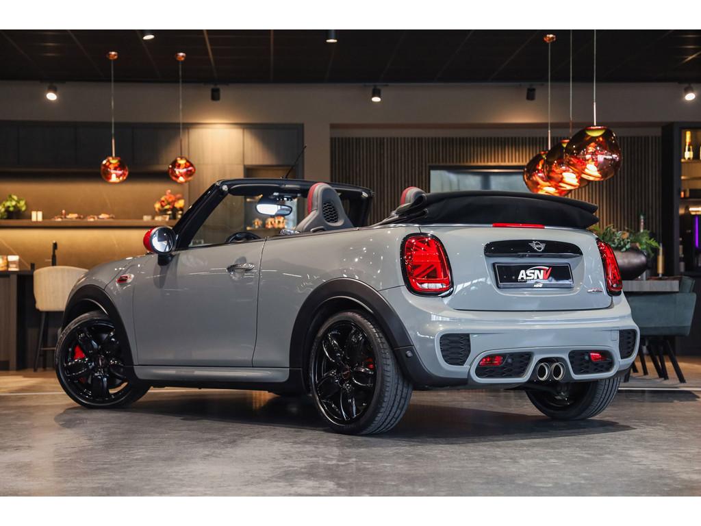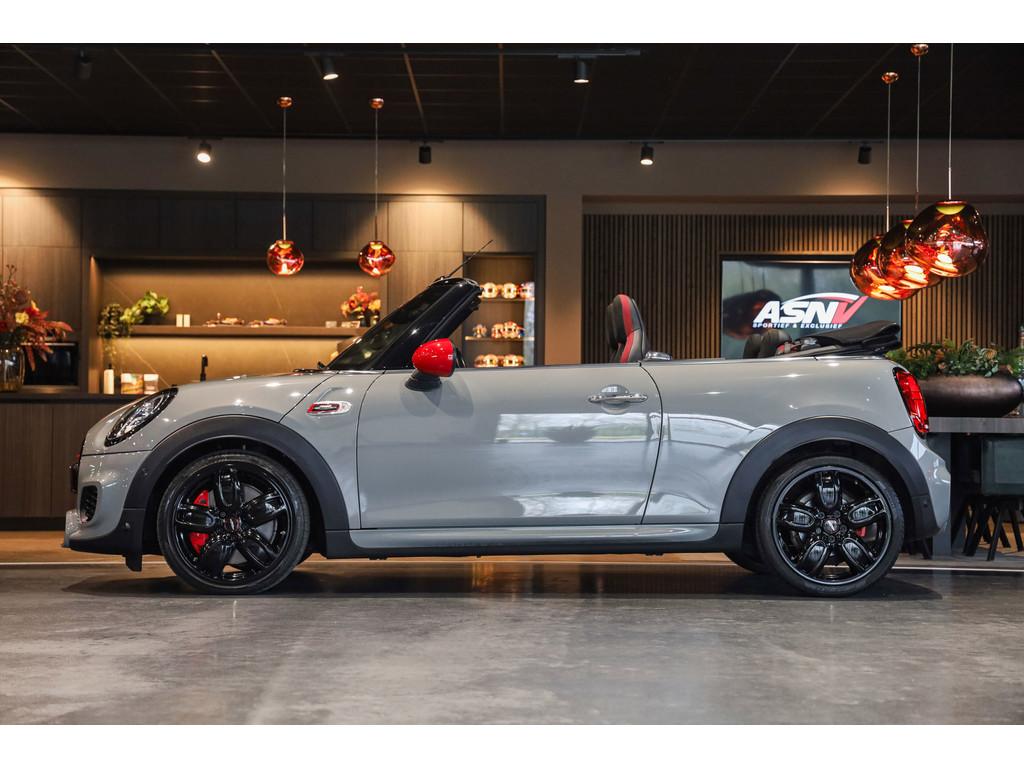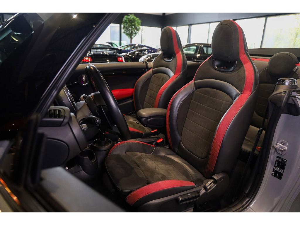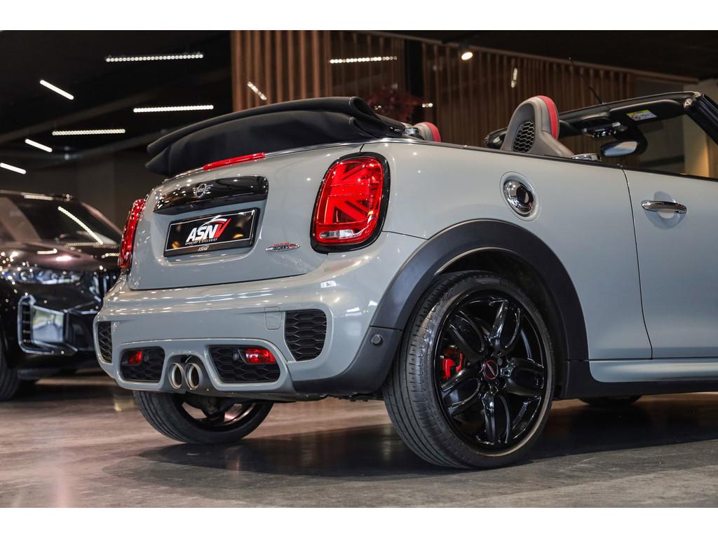 "Lichtmetalen velgen 18""", 18'' MINI LM-velg JCW Cup Spoke in hoogglans Zwart, Accident Avoidance System, Achterbank in delen neerklapbaar, Achteropkomend verkeer waarschuwing, Achteruitrijcamera, Active voetgangersbescherming, Adaptief Demping Systeem (ADS), Adaptive sportonderstel, Airbag(s) hoofd voor, Airbag(s) side voor, Airbag bestuurder, Airbag passagier, Airco automatisch, Alarm klasse 3, Always Open pakket, Anti Blokkeer Systeem (ABS), Audiobediening op het stuurwiel, Audio installatie premium, Autotelefoonvoorbereiding met Bluetooth, BMW Individual interieurlijsten - Piano zwart, BMW Intelligent Emergency SOS Call, Bandenspanningscontrolesysteem, Bestuurdersinformatiesysteem, Binnenspiegel automatisch dimmend, Binnenverlichting-pakket LED, Blow-By heater, Bots waarschuwing systeem, Buitenspiegels elektrisch inklapbaar, Buitenspiegels elektrisch verstelbaar, Buitenspiegels verwarmbaar, Centrale deurvergrendeling met afstandsbediening, Chili ll Pakket, Chrome Line Exterieur, Comfort Access (openen en starten zonder sleutel), Comfort middenarmsteun met opbergmogelijkheid, Configureerbare ambienteverlichting, Connected Drive Services, Cruise control adaptief met Stop&Go, DAB-ontvanger, Dimlichten automatisch, Draadloze telefoon lader, Driespaaks multifunctioneel leder stuurwiel, Driver Assistance Pack, Driving Assistant, Electronic Brake Distribution (EBD), Electronic Stability Program (ESP), Elektrisch bedienbaar zwart gestoffeerde cabrioletkap, Elektrisch bedienbare kap, Elektrische parkeerrem, Elektrische ramen achter, Elektrische ramen voor, Grille, sierlijsten, louvres in hoogglans zwart, Grootlicht-assistent, Harman/Kardon Surround Sound System, Head-up display, Hill hold-functie, ISOFIX-kinderzitjesvoorbereiding, In delen neerklapbare achterbank, Instaplijsten met John Cooper Works opschrift, John Cooper Works Aerodynamics kit, John Cooper Works Front Spoiler, John Cooper Works Sportstoelen (schaalstoelen), John Cooper Works Sportuitlaten, John Cooper Works lederen stuurwiel, Keyless entry, LED koplampen adaptief, LED mistlampen, Lederen bekleding, Lichtpakket, MINI Navigation System, MINI Teleservices, MINI UNION JACK LED ACHTERLICHTEN, Metallic lak, Mini Connected, Mini Driving Modes, Mist achterlicht, Mogelijkheid tot muziek-streaming, Multimedia-voorbereiding, Navigatie-systeem full map + hard disk, Park Assist Pack, Parkeer-assistent, Parkeersensor achter, Parkeersensor voor, Radio Mini Visual Boost, Real Time Traffic Information, Regelbare dashboardverlichting, Regensensor, Remzadels rood gespoten, Ruitensproeiers verwarmbaar, Smartphone integratie (Apple CarPlay + Android Auto),, Spiegelkappen in Rood, Sportautomaat, Sportonderstel, Sportstoelen, Start/stop systeem, Startblokkering, USB aansluitingen, Verkeersbord detectie, Verstelbaar stuurwiel met F1-schakeling, Vloermatten - Velours, Volautomatische comfort airconditioning, Voor-en achterspoiler, Voorstoelen in hoogte verstelbaar, Voorstoelen verwarmd, Windscherm, Witte knipperlichten, Zilveren armaturen verwerkt in het dashboard, Zonnenkleppen met spiegel (verlicht), Zwart stoffen hemelbekleding